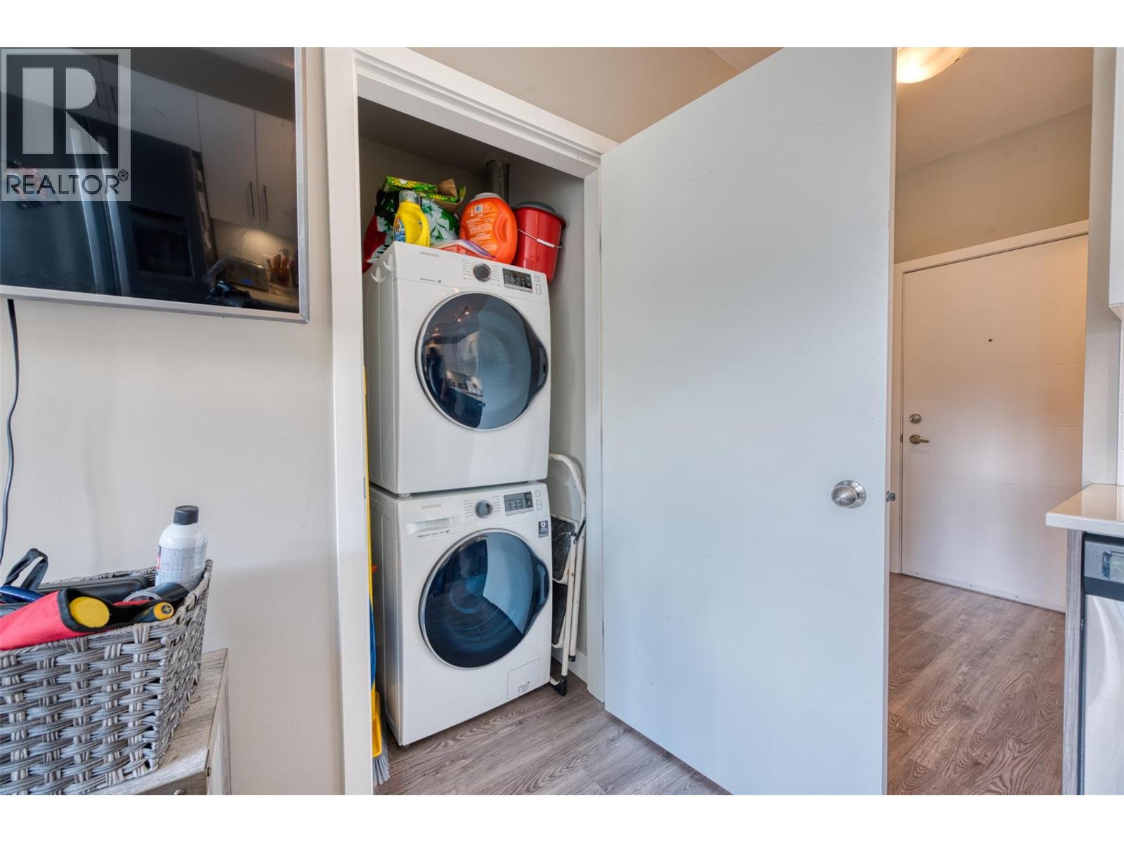 Step into simplicity at The Hub, your urban oasis nestled in the heart of Vernon! This isn't just a condo; it's your gateway to Okanagan lifestyle. Inside this 1 bedroom + versatile den (think guest room or home office!), you'll discover 614 sq ft of thoughtfully designed space. Picture sleek stone countertops meeting modern stainless steel appliances in your efficient kitchen. Forget laundry day hassles with your own in-unit setup. Retreat to your primary bedroom with its private 4-piece ensuite. Guests? They'll appreciate the private 3-piece bathroom with its convenient step-in shower. Built in '19 and bathed in morning light from its east-facing orientation, this well maintained unit feels fresh and inviting. Your private balcony is perfect for summer BBQs and evening relaxation. Stay cool year-round with wall-mounted A/C. Life at The Hub is easy. Secure your vehicle in the underground parking, stow your extras in your dedicated storage locker, and keep your bike safe in the secure storage. Furry friends are welcome too! This pet-friendly building allows up to 2 companions (under 40lbs). With no age restrictions and a budget-friendly $319.79 monthly strata fee, it's accessible to many. Location? Unbeatable. You're literally moments from Vernon's best shopping, diverse restaurants, and quick highway access. First-time buyer eager to dive in? Savvy investor seeking a prime location? Downsizing but not downgrading your lifestyle? The Hub is your answer. (id:21321)