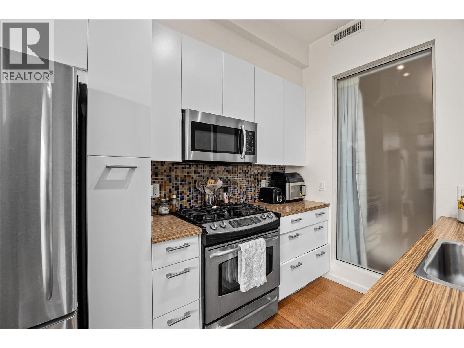 Welcome to The Cannery Lofts, where modern style meets unbeatable downtown living. This 784 sqft, 1 bed/1 bath condo features soaring ceilings, large windows, and a bright, open layout that enhances the sense of space. Located on the third floor, this well-kept home offers a perfect blend of comfort and convenience, complete with a secure parking stall. Steps outside enjoy everything Kelowna has to offer - a stroll to the lake, explore vibrant Bernard Avenue, discover local breweries and restaurants, or catch an event at Prospera Place right across the street. The building’s private rooftop patio provides a relaxing space with city views, perfect for entertaining or unwinding after a day in the city. This is your opportunity to own in one of Kelowna’s most sought-after locations. Schedule your showing today and experience downtown living at its finest! (id:21321)