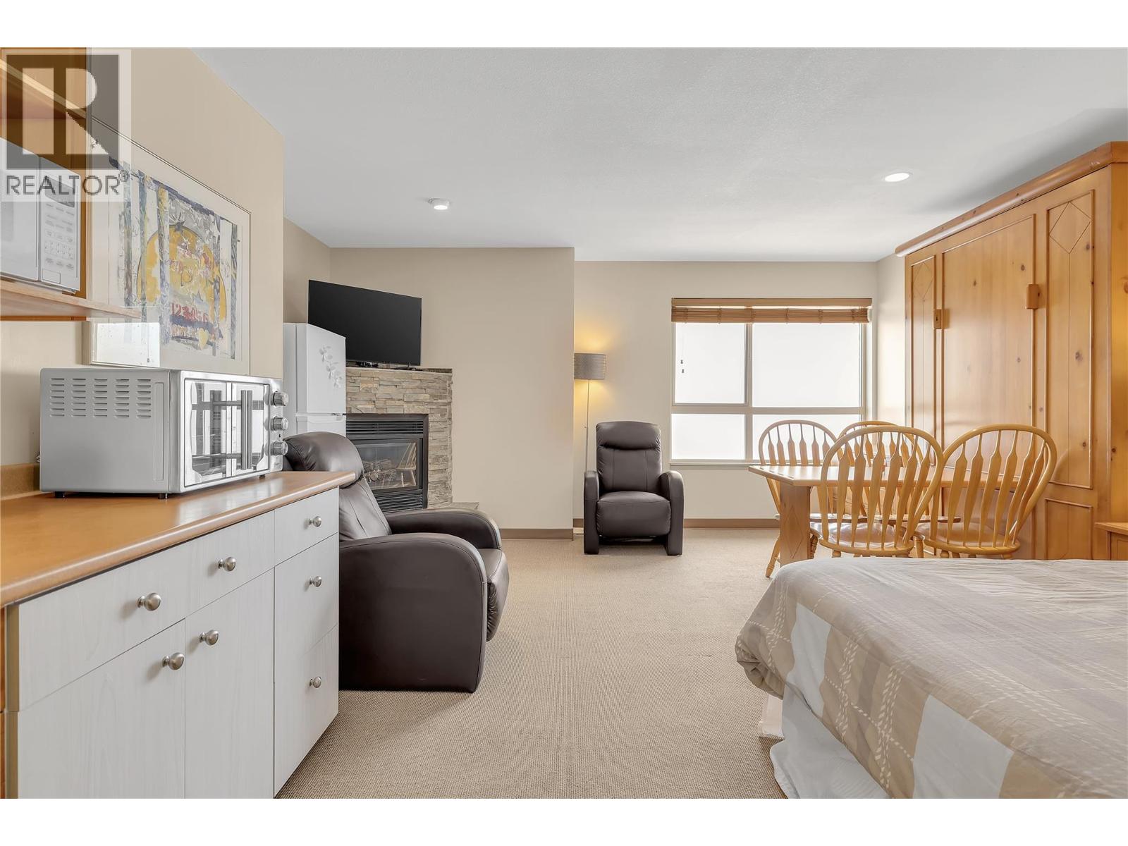 Discover your mountain hideaway at the Inn at Big White! Perched on the top floor and facing south, this oversized studio is one of the largest of its kind in the building. Designed to accommodate up to four guests, it’s an ideal escape for couples, friends, or families who want comfort with all the resort conveniences at their doorstep. The bright, open-plan design blends living, dining, and sleeping areas into one inviting space, making the most of every square foot. After an exhilarating day on the slopes or exploring the village, unwind in the building’s heated pool or soak tired muscles in the hot tub. The underground parkade makes parking effortless, while being just steps to the Village Centre, Gondola, and ski runs means you’ll never miss a moment of the action. Perfect for relaxation, adventure, or both, this suite offers a true Big White lifestyle. Plus, it’s exempt from the Foreign Buyer Ban, Foreign Buyers Tax, Speculation Tax, Empty Homes Tax, and Short-Term Rental Ban—making it an attractive opportunity for both enjoyment and investment. (id:21321)