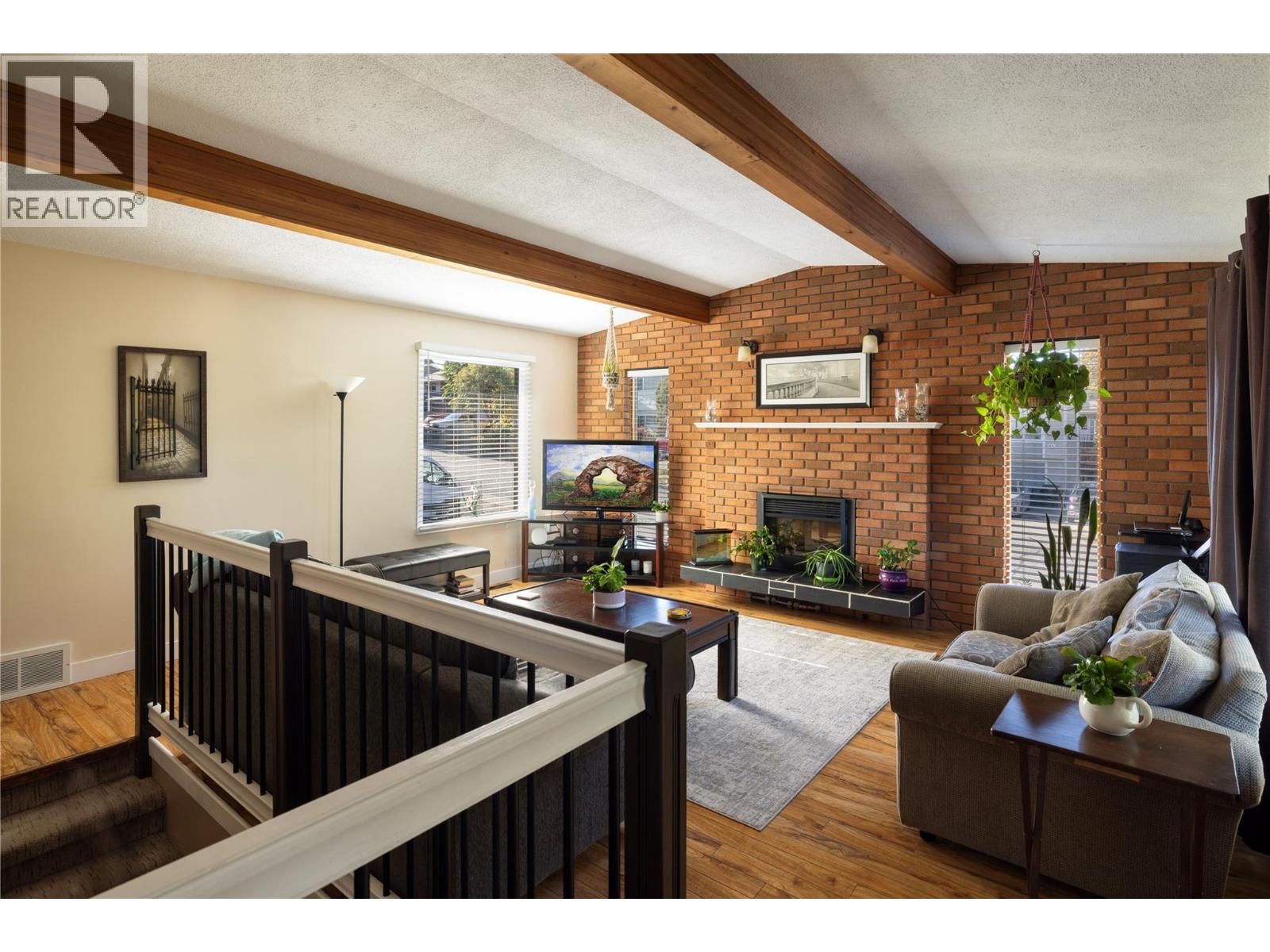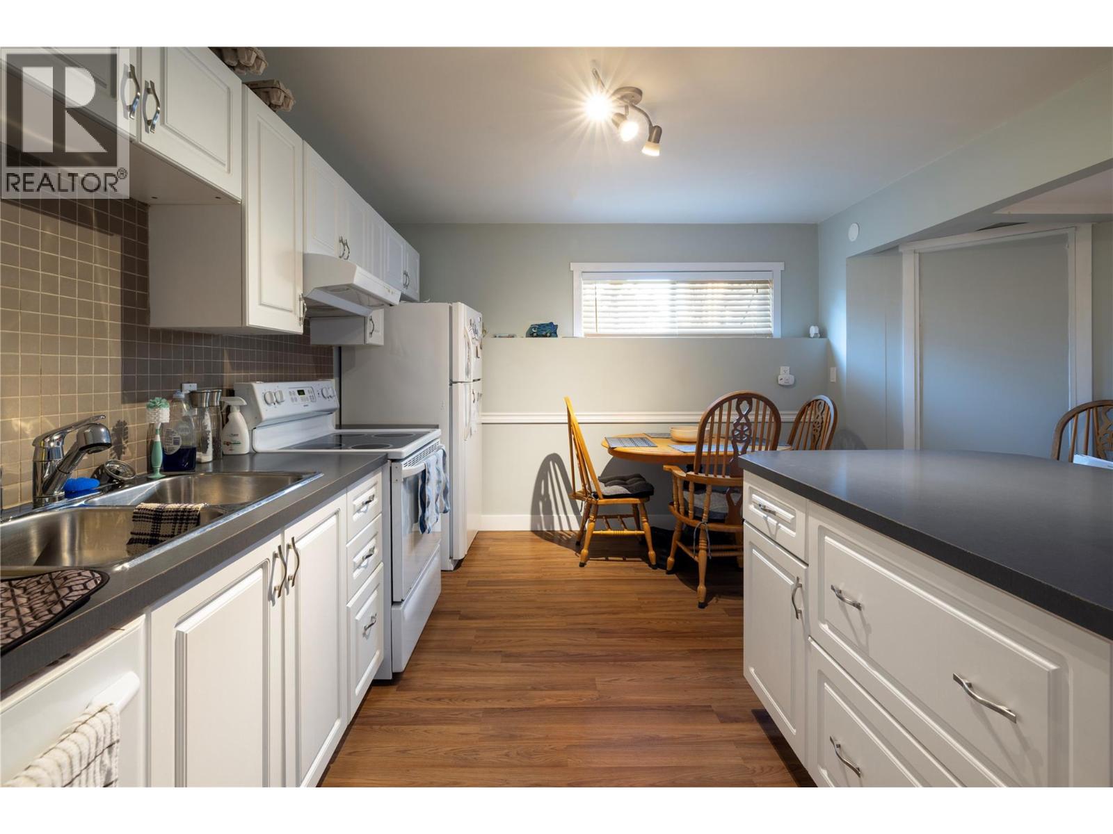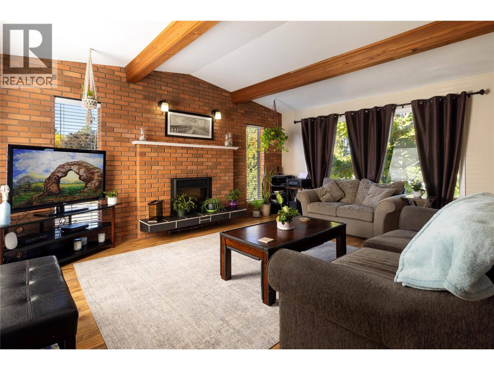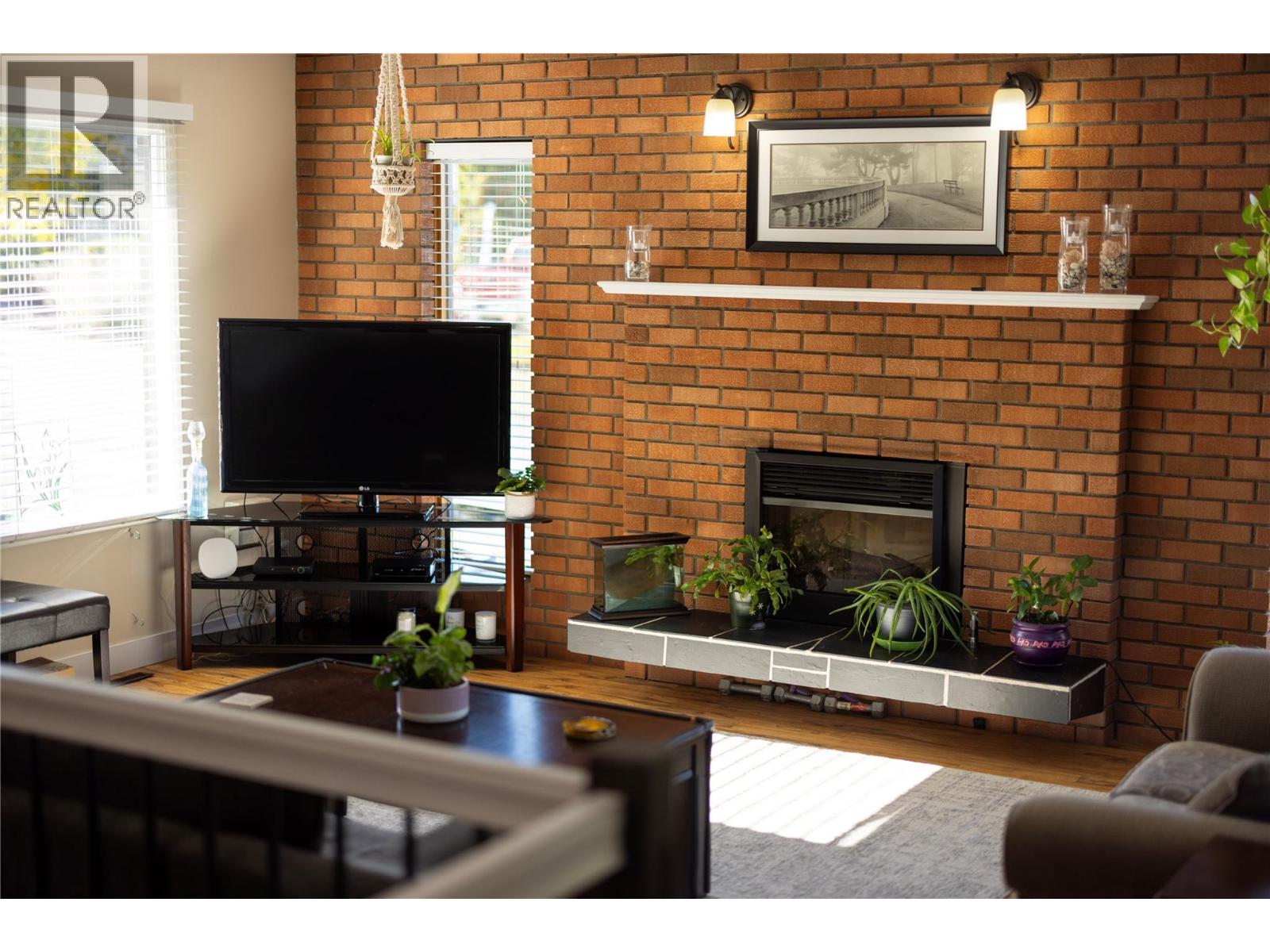 This bright and well-maintained home offers flexibility for families or investors. The upper suite includes three bedrooms on the main floor and a fourth bedroom on the lower level, providing space for guests, teens, or a home office. The living room features a full brick wall with a cozy fireplace that creates a warm and inviting gathering space. The kitchen offers plenty of cabinetry, stainless steel appliances (including a double door fridge), a tile backsplash, and a nearby two-piece powder room for guests. The dining area opens onto the balcony, perfect for outdoor meals or morning coffee with a view. A separate entrance from the kitchen provides direct backyard access for everyday convenience. The lower level features a spacious two-bedroom suite with a generous eat-in kitchen with white appliances including a dishwasher, double sink, and lots of storage. The bedrooms are positioned on opposite sides of the living room for privacy, and the suite includes its own laundry area. The full bathroom offers a tub and shower combination for added comfort. The suite has a private entrance through the mudroom, offering complete separation and independence from the main home. This property provides comfort, income potential, and a layout that adapts easily to family or multi-generational living. Located in a quiet area of Vernon, close to schools and recreation, this is a fantastic opportunity with tons of potential to suit a wide range of families. (id:21321)