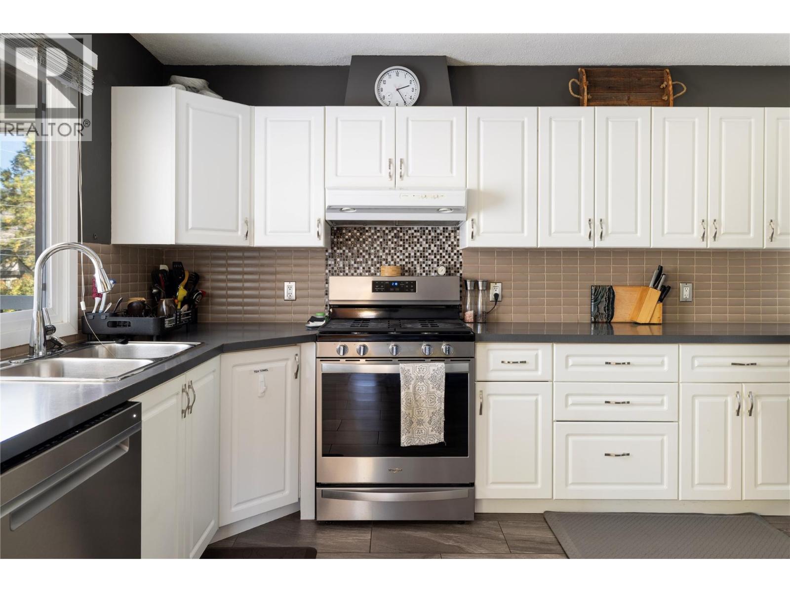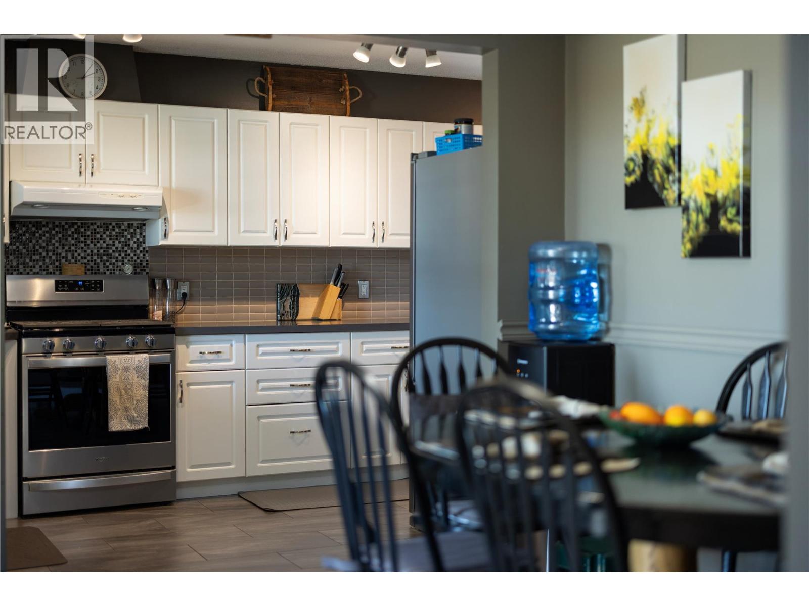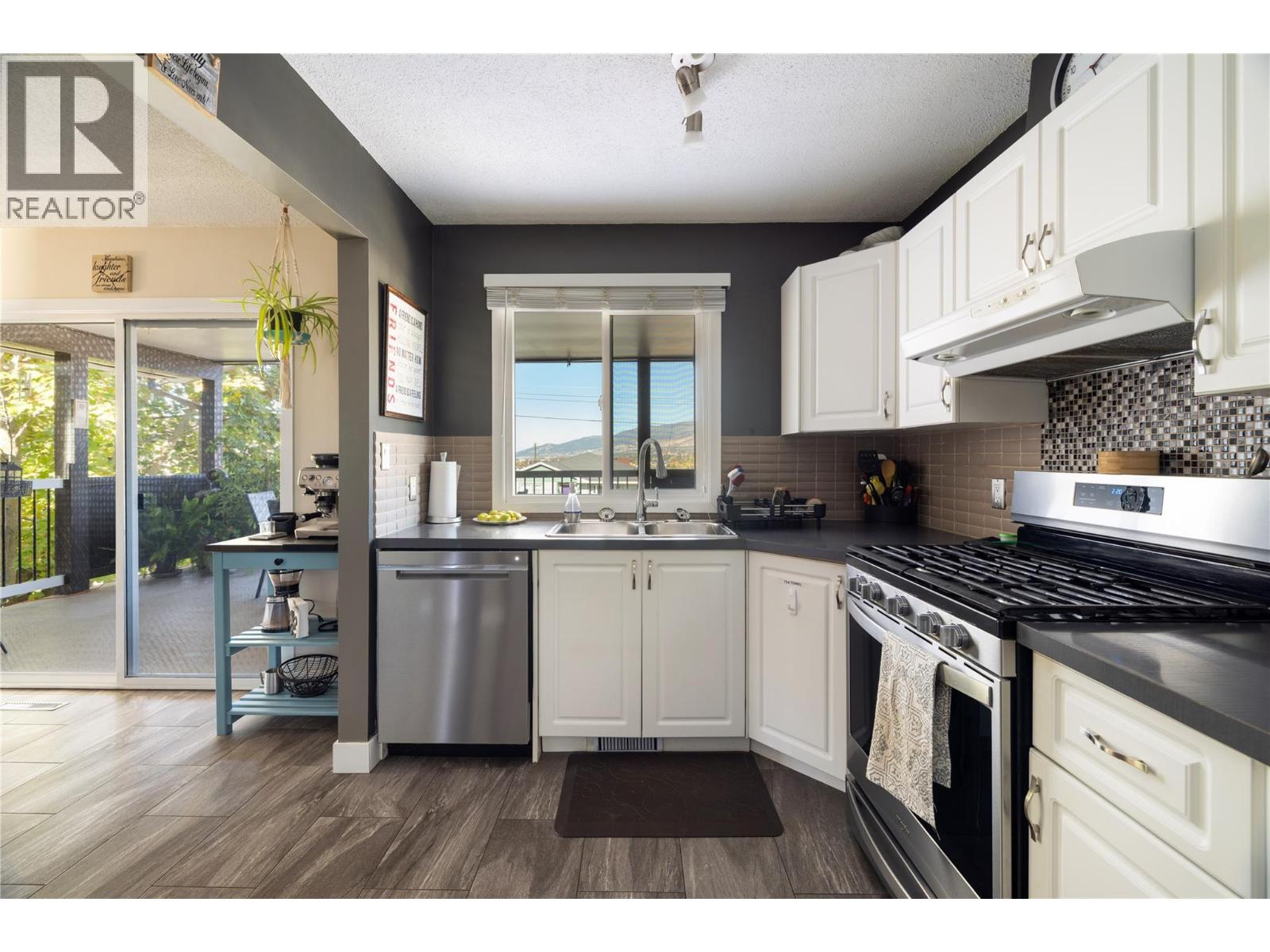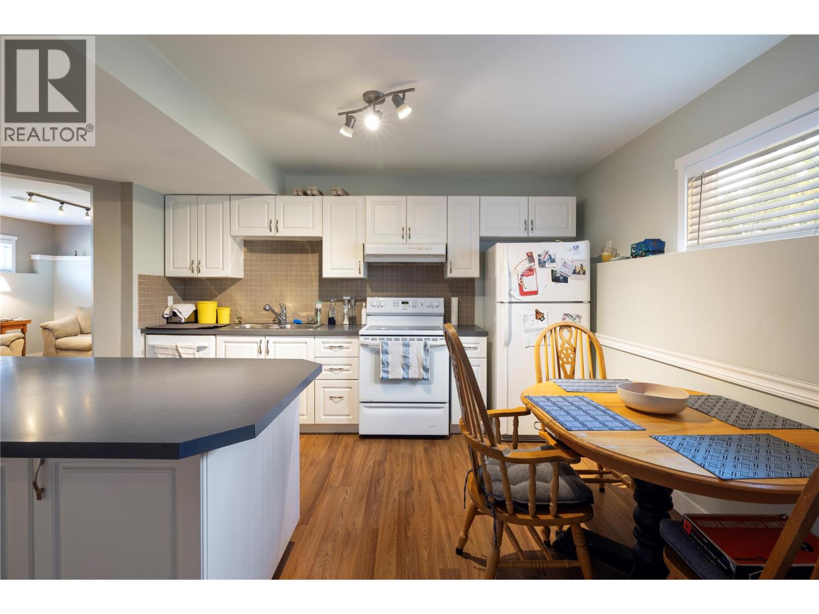 This bright and well-maintained home offers flexibility for families or investors. The upper suite includes three bedrooms on the main floor and a fourth bedroom on the lower level, providing space for guests, teens, or a home office. The living room features a full brick wall with a cozy fireplace that creates a warm and inviting gathering space. The kitchen offers plenty of cabinetry, stainless steel appliances (including a double door fridge), a tile backsplash, and a nearby two-piece powder room for guests. The dining area opens onto the balcony, perfect for outdoor meals or morning coffee with a view. A separate entrance from the kitchen provides direct backyard access for everyday convenience. The lower level features a spacious two-bedroom suite with a generous eat-in kitchen with white appliances including a dishwasher, double sink, and lots of storage. The bedrooms are positioned on opposite sides of the living room for privacy, and the suite includes its own laundry area. The full bathroom offers a tub and shower combination for added comfort. The suite has a private entrance through the mudroom, offering complete separation and independence from the main home. This property provides comfort, income potential, and a layout that adapts easily to family or multi-generational living. Located in a quiet area of Vernon, close to schools and recreation, this is a fantastic opportunity with tons of potential to suit a wide range of families. (id:21321)