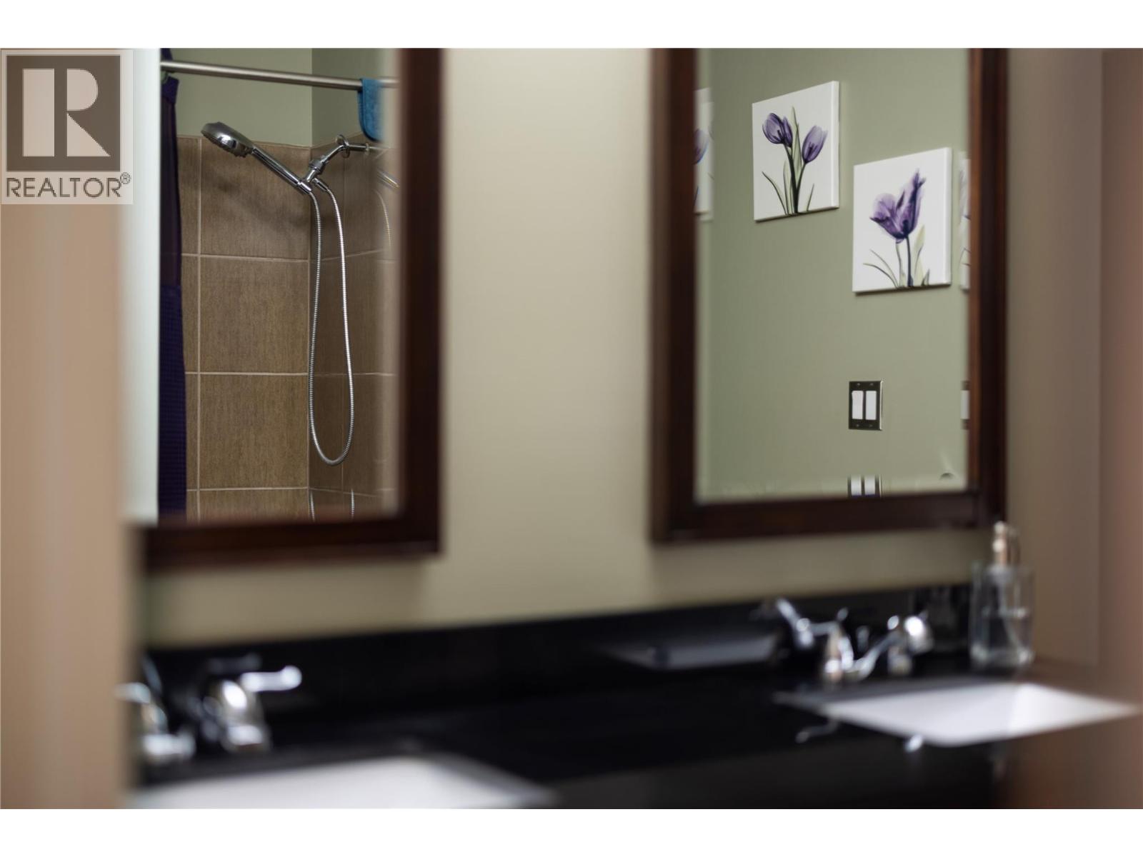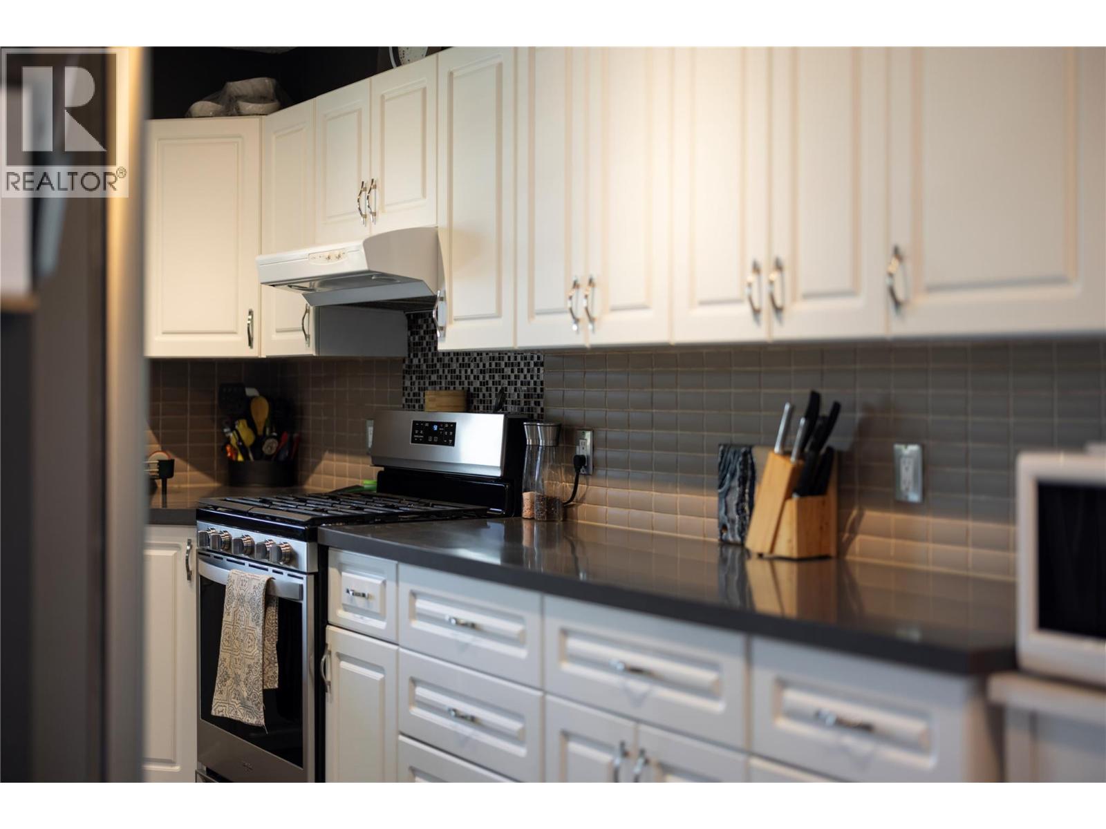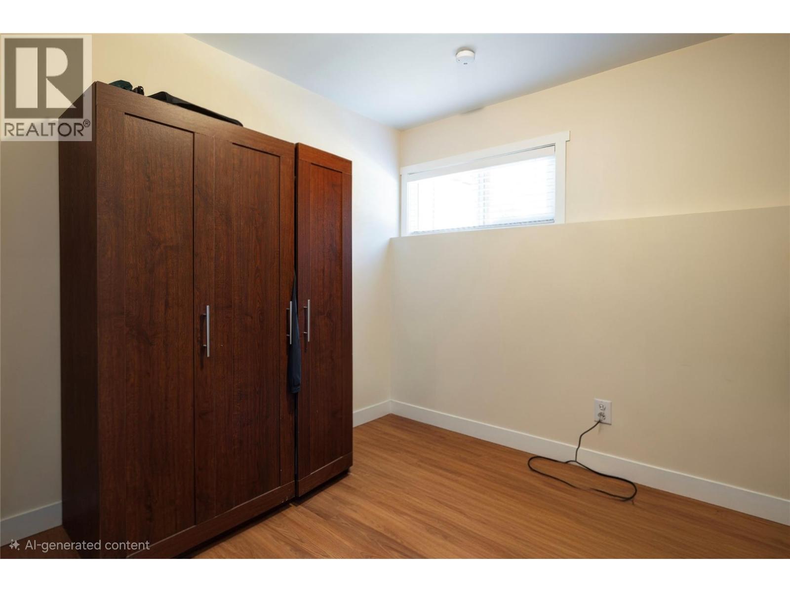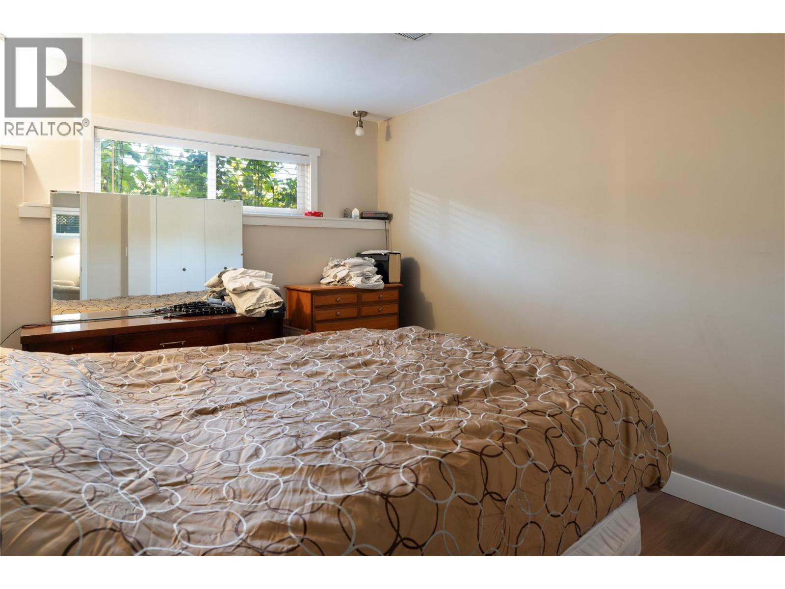 This bright and well-maintained home offers flexibility for families or investors. The upper suite includes three bedrooms on the main floor and a fourth bedroom on the lower level, providing space for guests, teens, or a home office. The living room features a full brick wall with a cozy fireplace that creates a warm and inviting gathering space. The kitchen offers plenty of cabinetry, stainless steel appliances (including a double door fridge), a tile backsplash, and a nearby two-piece powder room for guests. The dining area opens onto the balcony, perfect for outdoor meals or morning coffee with a view. A separate entrance from the kitchen provides direct backyard access for everyday convenience. The lower level features a spacious two-bedroom suite with a generous eat-in kitchen with white appliances including a dishwasher, double sink, and lots of storage. The bedrooms are positioned on opposite sides of the living room for privacy, and the suite includes its own laundry area. The full bathroom offers a tub and shower combination for added comfort. The suite has a private entrance through the mudroom, offering complete separation and independence from the main home. This property provides comfort, income potential, and a layout that adapts easily to family or multi-generational living. Located in a quiet area of Vernon, close to schools and recreation, this is a fantastic opportunity with tons of potential to suit a wide range of families. (id:21321)