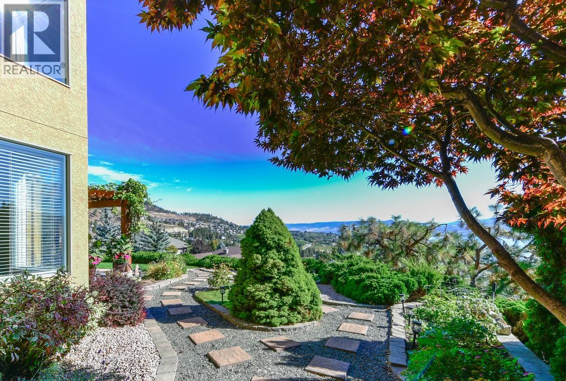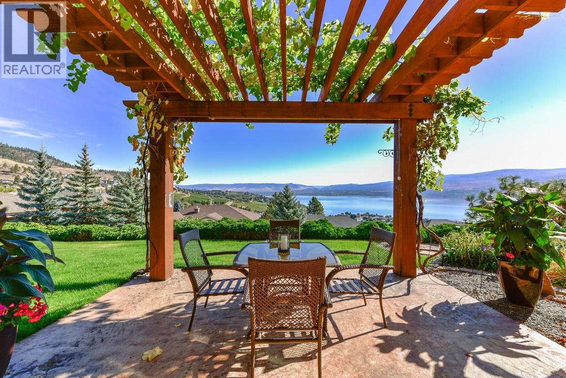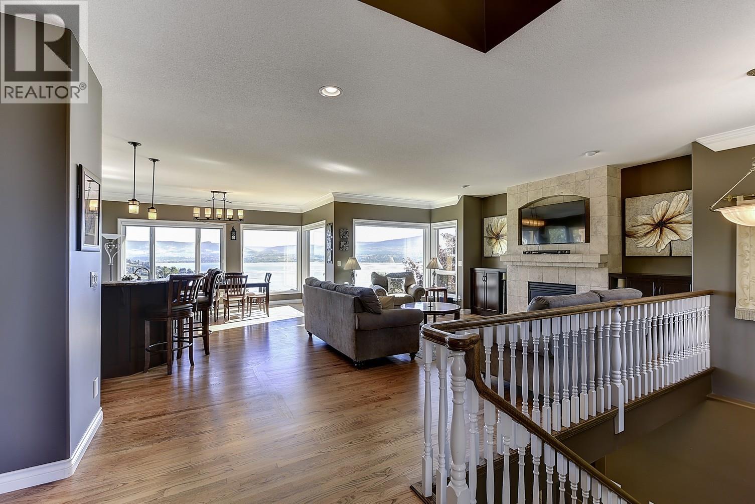 Nestled on a quiet cul-de-sac in the highly sought-after community of Lakeview Heights, this home offers stunning, unobstructed views of Okanagan Lake, rolling vineyards, and the valley beyond. Designed for family living and entertaining, it blends comfort, space, and everyday luxury with front-row access to Okanagan sunsets. The main level features warm hardwood floors and expansive windows that showcase the scenery from nearly every angle. The well-appointed kitchen boasts leathered granite countertops, maple cabinetry, and a generous L-shaped island with seating for six, flowing seamlessly into the breakfast nook and living area. A cozy tile-surround gas fireplace anchors the space, while sliding doors open to a partially covered deck with glass railings, perfect for morning coffee or evening sunsets. The main-floor primary suite is a serene retreat with deck access, a walk-in closet, and a five-piece ensuite. A jetted soaker tub sits in a bay window overlooking the lake, complemented by dual vanities and a tiled walk-in shower. A second bedroom and full bath complete this level. Downstairs, two spacious bedrooms, a three-piece bath, and a large recreation room with a fireplace open to a covered patio and landscaped backyard featuring a pergola-covered hot tub, exposed aggregate patio, and room for a future pool. With a double garage, extra parking, and easy access to wineries, golf, beaches, hiking, and shopping, this home offers relaxed, inviting Okanagan living. (id:21321)