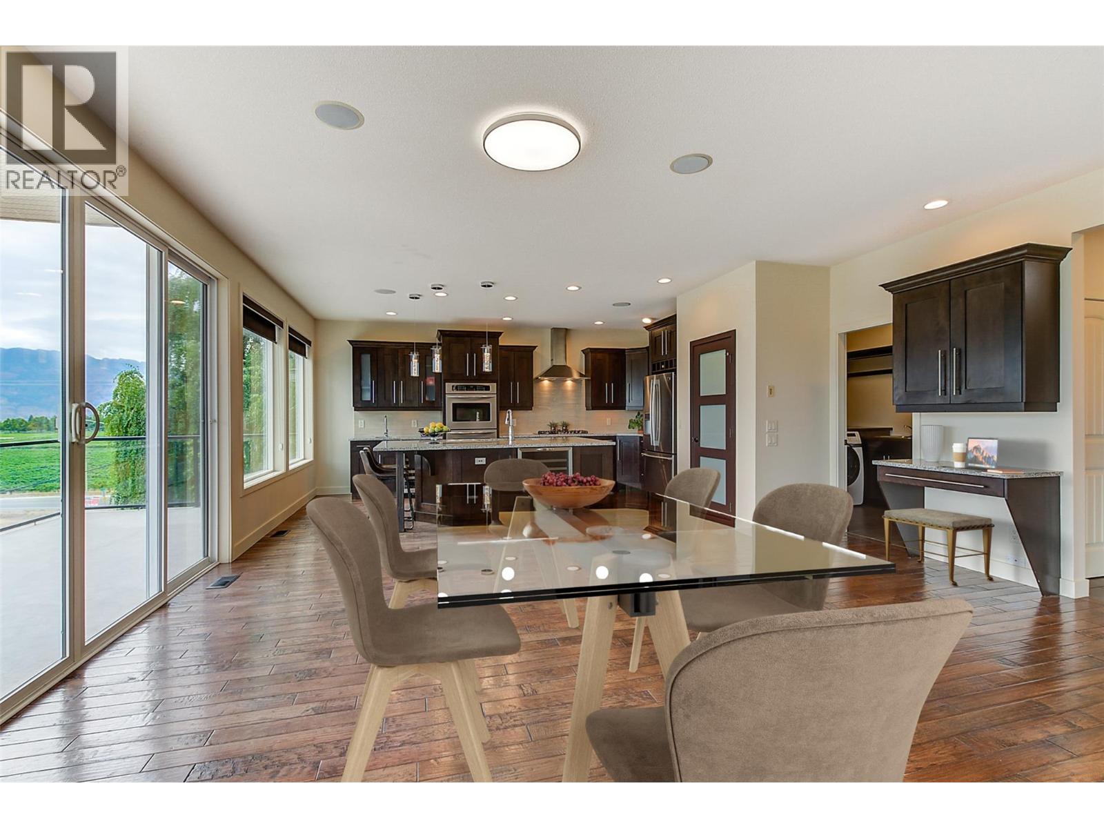 If you’re searching for the Okanagan lifestyle, this home is your dream destination! Positioned just steps from the scenic Wine Trail and a short walk or bike ride to the beach, this home has a great location! This beautiful 4200+ square foot large family home boasts breathtaking vineyard and lake views, allowing you to relax and immerse yourself in the natural splendor of the area. This three level, four bedroom, three and a half bathroom home offers an open-concept layout with expansive spaces and stunning views from nearly every room. The main floor seamlessly connects the kitchen, dining area, and living room, making it ideal for gatherings of any size. With hardwood floors, modern finishes, and carefully selected fixtures, every detail in this home has been crafted to enhance its elegance and charm. The chef’s kitchen is a standout feature, equipped with built-in ovens, a gas cooktop, a brand-new refrigerator, a Miele dishwasher, a bar fridge, and a Viking wine fridge, providing ample counter space and an island for effortless meal prep. Upstairs, you’ll find an inviting sanctuary, with three spacious bedrooms offering comfort and privacy. The primary suite features panoramic vineyard and lake views, an ensuite bathroom, and a walk-in closet. Two additional bedrooms and a four piece bathroom complete this serene upper floor. On the lower level, your guests will be welcomed by a sprawling entertainment area, complete with a bar, media space, pool table, guest bedroom, bathroom, and abundant storage. (id:21321)