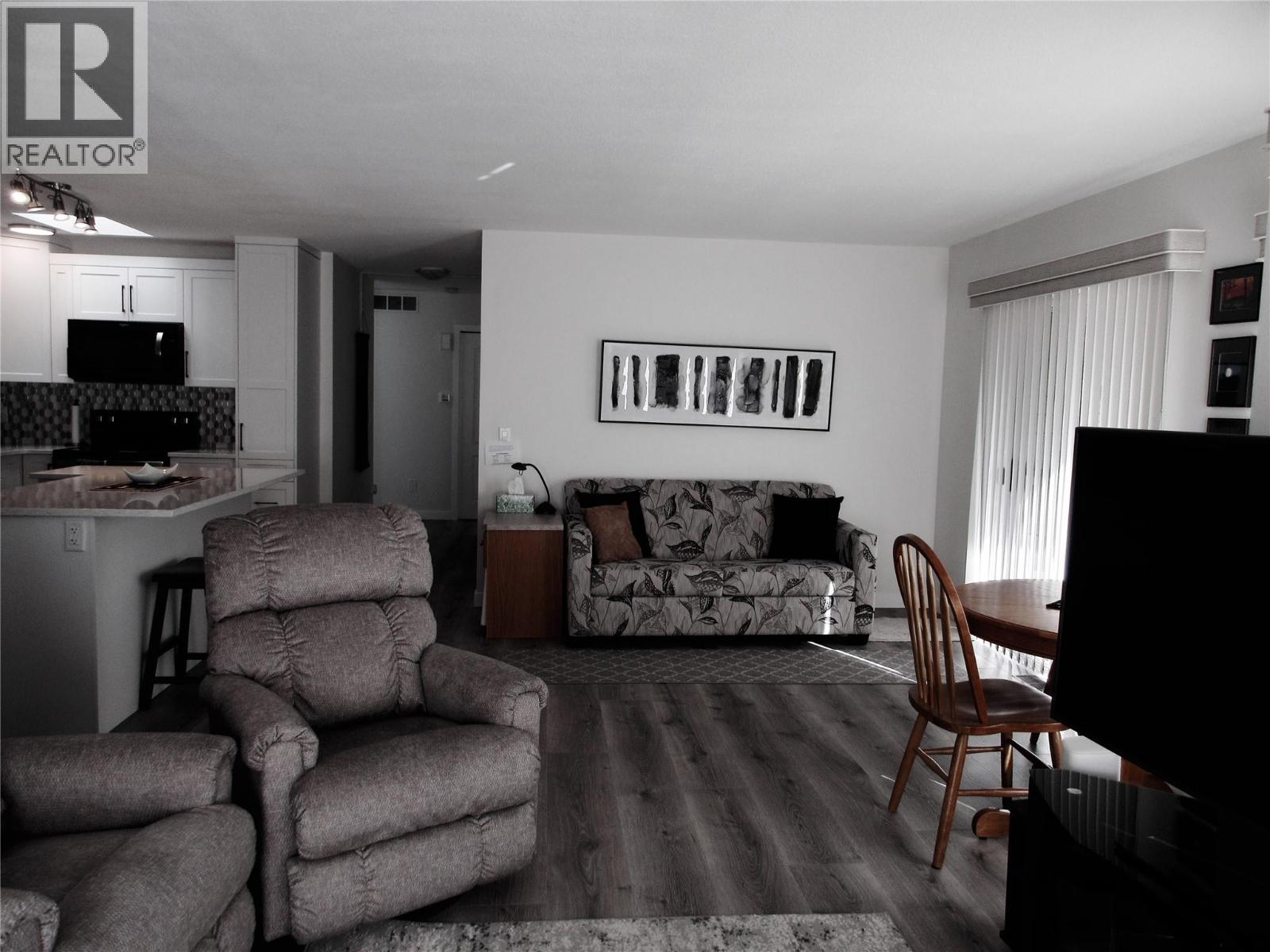 Recently renovated 2 bedroom, 2 bathroom condo located in the gated community of Holiday Park Resort. The kitchen features an island for food prep, new appliances, Norelco cabinetry and quartz countertops. There is new lighting through out. Vinyl plank flooring for easy maintenance. The entire space has a coat of fresh paint. The skylights enhance the natural lighting inside. There is a new A/C unit, Hot Water Tank and reverse osmosis system. The chair lift is included. Turn key unit includes the furniture, coffee and end tables, dining room table and chairs, dishes, pots and pans etc. All you need to move are your clothes and personal items. Lease term to 2046. The lease is registered with the Federal Government. Long and short term rentals allowed. There is no Property Transfer Tax. Enjoy all the amenities offered by Holiday Park Resort - pools, hot tubs, golf course, shuffleboard, pickleball, library, gym, games room, restaurant, plus more. Close to the Rail Trail, Kelowna International Airport, UBCO, wineries, golf courses, ski hills, shopping and entertainment. The 2025 Annual Maintenance Fee is $8394 includes water, sewer, water, use of amenities, maintenance of common areas and roads, snow removal, garbage disposal area, insurance on the exterior of the building, maintenance of the exterior of the building, landscaping. (id:21321)