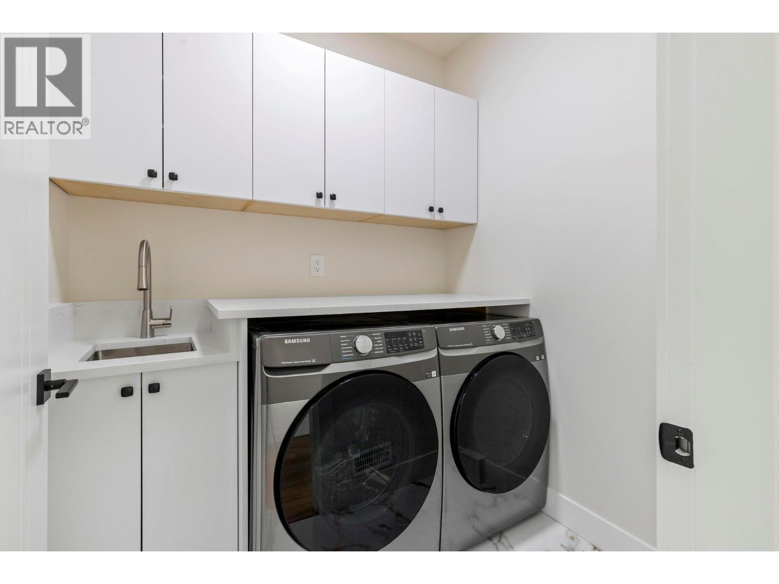 Welcome to The Trails, a stunning new build in one of West Kelowna’s most desirable communities. This 3,248 sq ft, five bedroom, four bathroom contemporary home stands out with its two bedroom legal suite and rooftop patio, offering both lifestyle and long term value. The main floor features an open concept layout with wide plank hardwood floors, quartz countertops, and a feature accent wall that adds warmth and modern character. The kitchen includes stainless steel appliances along with bold black hardware and fixtures. A large mudroom connects to the double garage, providing everyday convenience, while a powder room completes the level. Upstairs, the primary suite delivers a luxurious retreat with deck access, a custom feature wall, walk in closet, and spa inspired ensuite with dual sinks, glass shower, and freestanding tub. Two additional bedrooms, a full bath, and a laundry room with sink complete the upper floor. The bright legal two bedroom suite below offers its own laundry, full kitchen, and private entrance, ideal for extended family or rental income. Enjoy three outdoor decks, including a rooftop patio with gorgeous mountain and valley views, perfect for entertaining or relaxing. The synthetic turf backyard provides low maintenance living that is also great for kids and pets. Additional highlights include Step Code 3 energy efficiency, ample parking and storage, hot water on demand, alarm system, EV ready double garage, and a full blinds package. GST applicable. (id:21321)