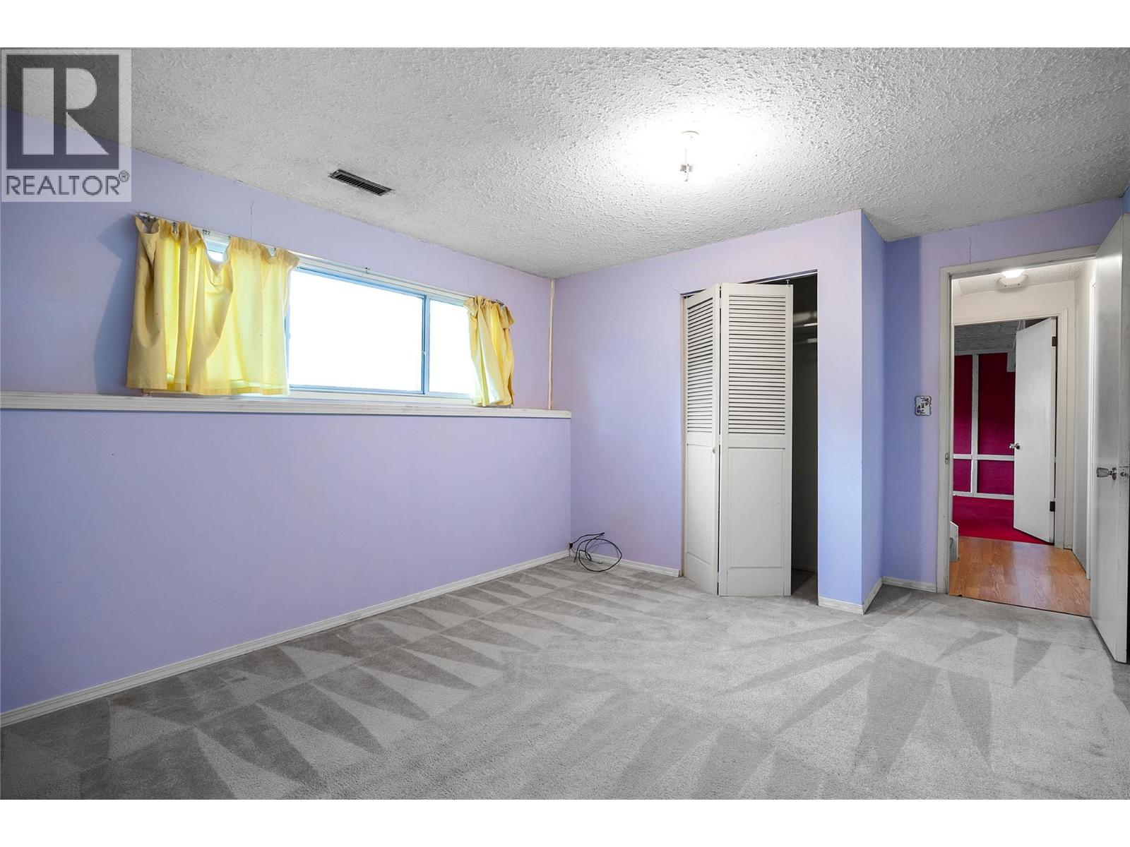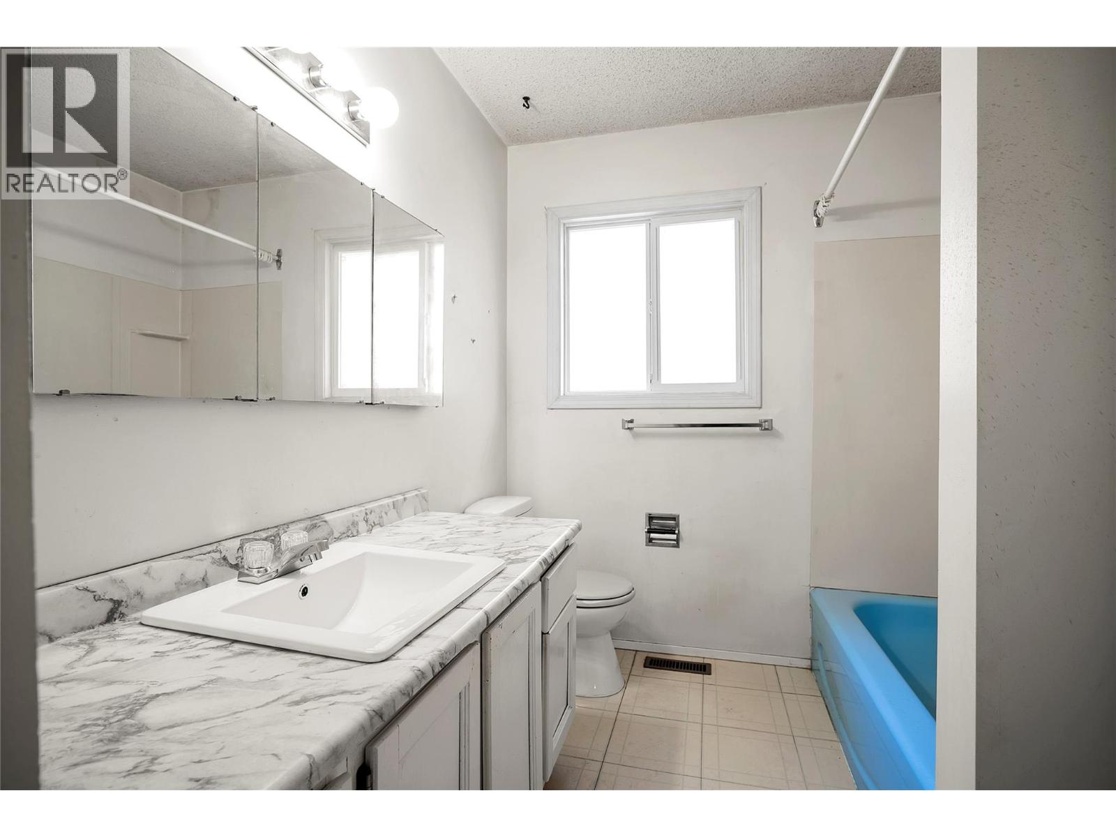 RENOVATION SPECIAL - This 4 bedroom, 2 bathroom home is in need of a full renovation and is value priced accordingly. The split level home features a fantastic floor plan with main living amenities on the upper floor, including 2 bedrooms, a full 4 piece bathroom, kitchen, living and dining with walk out patio doors to the deck and back yard, which backs directly onto Becker Park. The Lower floor hosts an additional bedroom and either a recreation room or 4th bedroom. Downstairs you will also find a large storage room which hosts the natural gas furnace and new natural gas hot water tank as well as a 3 piece bathroom and laundry area. Please call Kiel Lukaniuk - 250-739-3394 (id:21321)