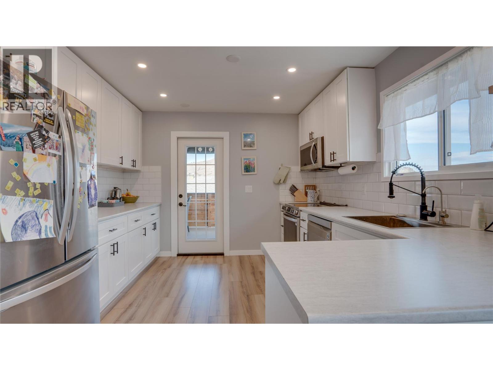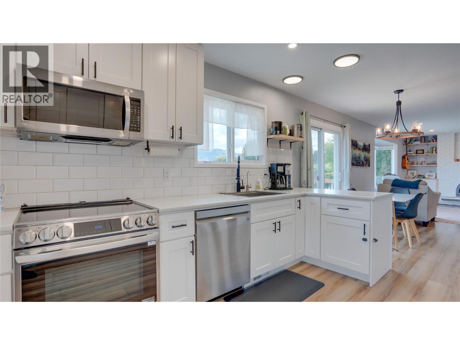 Million dollar view at an affordable price. The lovely modernised Vernon BC home is perfect for the first time home owners looking for a mortgage helper and plenty of room to entertain. Upstairs is a 3 bedroom 1.5 bathroom home with plenty of recent renovations. A new kitchen, flooring and windows give a modern feeling to this home. Downstairs has a bonus room/bedroom depending on how you choose to use downstairs. Summer kitchen, bathroom, laundry room and separate entrance make the downstairs easy to suite if one chose to have a mortgage helper. Enjoy the stunning view of the city of Vernon and the lights of world famous Silver Star in the distance. Or spend your time on the massive 300+ square foot covered deck that also ha a stunning view of Vernon and access to the large back yard. Enjoy back on to the Mission Hill Dog Park and having your own private access to the park. Two covered parking spaces with additional parking for trailers, boats or additional vehicles. And a good size workshop off the carport for the hobbyist looking for some separate space from the home. (id:21321)