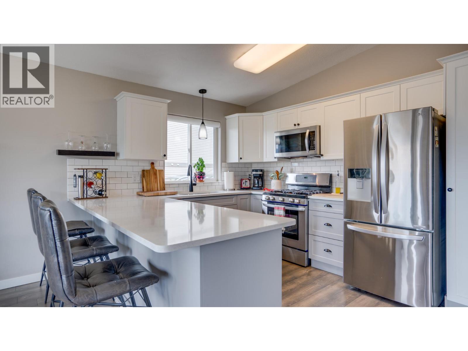 RARE WALKOUT RANCHER ALERT! All the perks of a detached home, none of the yardwork headaches. Perfect for families (kids get their own downstairs domain), couples craving main-floor living, or anyone wanting space without the hassle. This END-unit townhome is a unicorn -one of only four in a quiet, beautifully kept enclave on Bella Vista Road. Inside: engineered hardwood, quartz counters, custom cabinetry, stainless appliances, fresh paint, and a newer hot water tank. Translation: the upgrades are done, just move in and enjoy. The main floor is bright, vaulted, and open-concept, with windows that flood the space with natural light. The kitchen has room to actually cook (and gather) — ideal for entertaining or everyday life. The primary suite is tucked away for privacy with its own ensuite retreat. Downstairs? The wow-factor: a HUGE rec room (pool table, theater, kids’ crash pad), a third bedroom (easy fourth if needed), another full bath, and walkout access to the fenced yard. Dog-friendly, kid-approved. Extras: single-car garage, tons of storage, low-maintenance outdoor space, and a location that nails it - 5 minutes to downtown, 8 to Okanagan Lake, 35 to SilverStar. Updated, private, move-in ready… the perfect balance of lifestyle and convenience. (id:21321)
