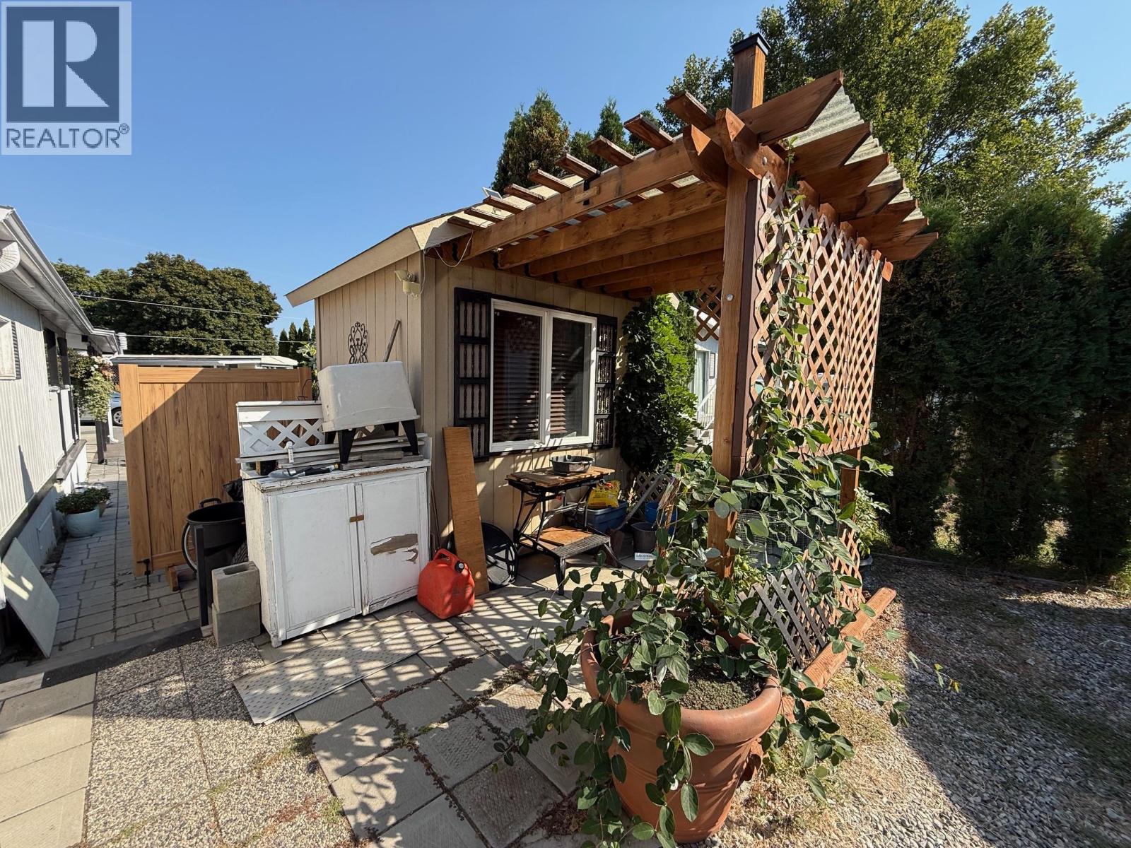 Move-in ready 2-bedroom + bonus room, 1-bath home featuring quality updates throughout and available for quick possession. The bright, open-concept layout includes a functional kitchen with stainless steel appliances and an eating area that flows seamlessly into the sunlit living room. The spacious primary bedroom easily fits a king-sized bed, while the modern bathroom includes convenient in-home laundry. A versatile bonus room offers flexible use, ideal as a third bedroom, family room, home office, or extra storage space. Step outside to enjoy a beautifully manicured yard with gardens, two storage sheds, a pergola, and a covered 15' x 11' deck—perfect for relaxing or entertaining. Two parking spaces at your doorstep, including one covered. Ages 55+. Pets upon park approval with height restrictions to 15” at the shoulder. No rentals. Pad fee of $530.per month. (id:21321)