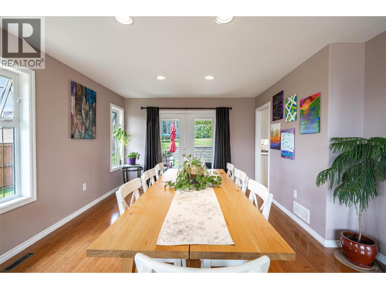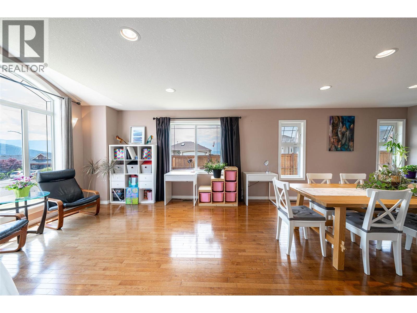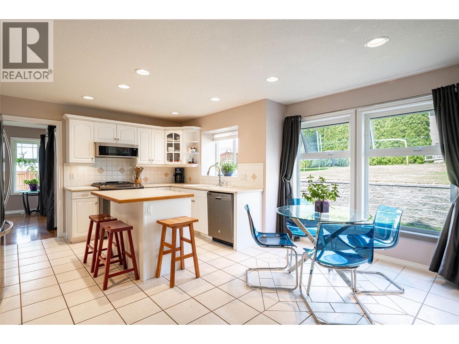 This expansive 2504 sq. ft. home, located on a .21 acre lot offers a blend of comfort and functionality across three floors. The property boasts 5 bedrooms and 3.5 bathrooms, ideal for a large family or those who enjoy having guests. Main floor has the kitchen which stands out with its modern design, featuring white cabinetry, tile flooring, a central island with seating, gas range and pantry. Large windows throughout allow for ample natural light, creating a bright and airy atmosphere. Hardwood flooring in the living and dining rooms give warmth and character to the space. Laundry is located on this floor along with family room and 2 pce. bath, plus, enjoy year round BBQ's off the covered back patio. Upstairs you will find the primary bedroom with full 4 pce. ensuite bath and walk-in closet. 2 additional bedrooms are on this floor with another full bath. The Basement has a separate entrance and provides the last 2 bedrooms and the 3rd full bath. There is a partially finished games room which is perfect for those teenagers wanting their own space to hangout to watch TV or play video games. Outback is the large private fenced yard, plenty of room for pets and kids to run. Storage solutions are plentiful, with multiple utility rooms, closets, storage shed and 3 car garage. Enjoy the mountain and valley views from this corner lot in the desirable Foothills, located close to Schools, shopping, Silver Star, walking/biking trails and those spectacular lakes. (id:21321)