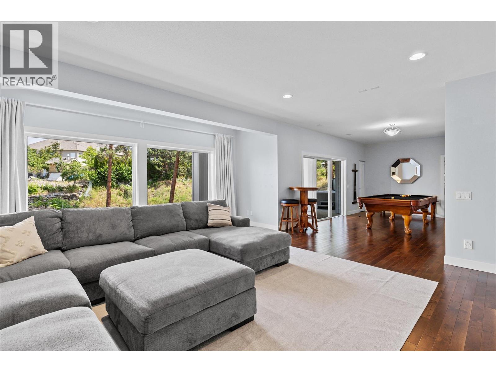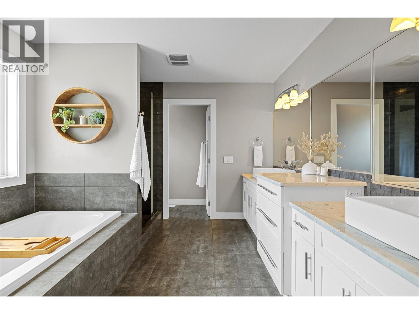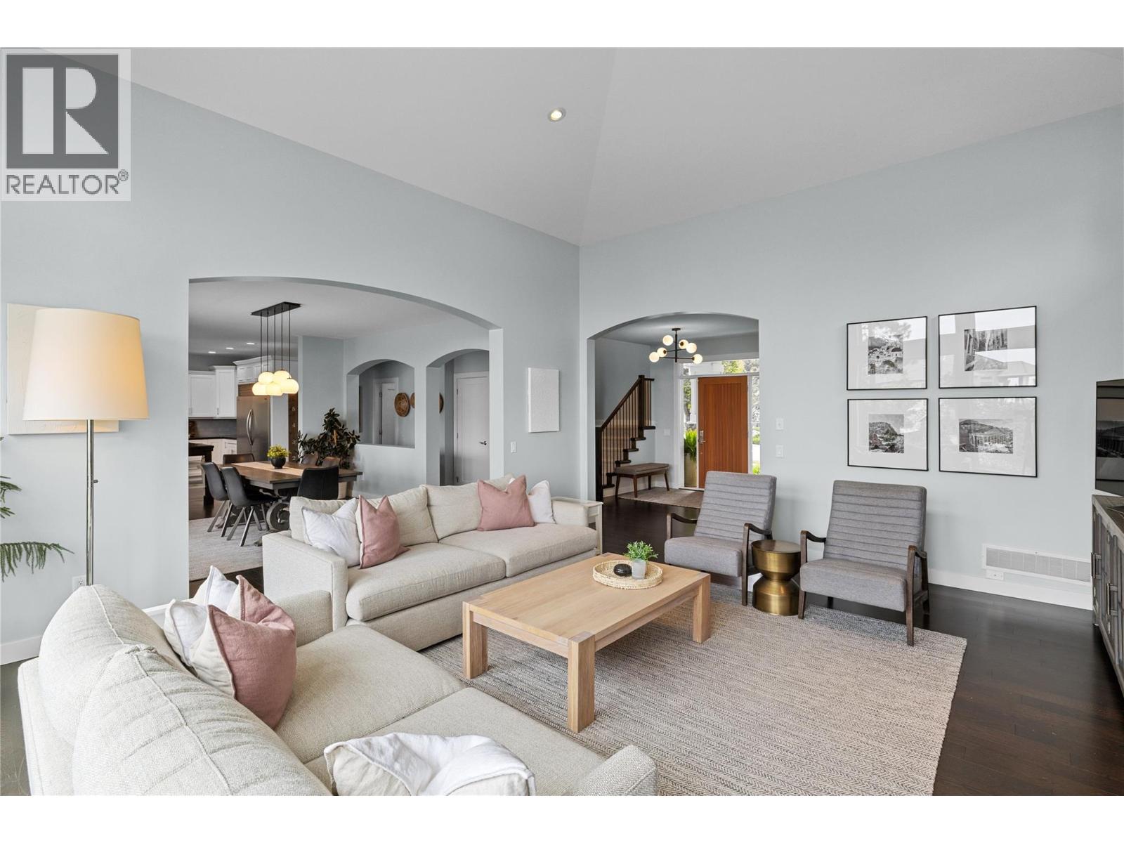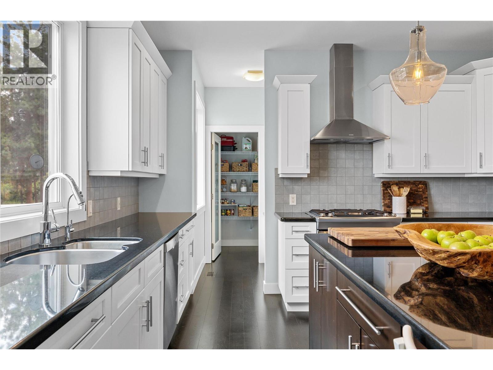 Nestled in the coveted Kettle Valley community, this elegant 4-bedroom + den, 4-bathroom home blends timeless design with breathtaking lake views and thoughtful functionality. Rich engineered hardwood floors lead you through a light-filled interior, where a stunning white designer kitchen awaits—complete with walk-in pantry, serving station, oversized fridge / freezer, gas range, and sleek stainless steel appliances. The open-concept great room is perfect for entertaining, seamlessly extending to a spacious deck ideal for sunset views and outdoor living. A striking double-sided fireplace warms both the serene primary suite and its spa-inspired ensuite featuring marble double vanities, a walk-in shower, and a deep soaker tub. Additional features include multiple walk-in closets, a dedicated gym area, central vacuum, water filtration system, hot water on demand, and a covered hot tub for year-round relaxation. The expansive, lakeview backyard offers endless potential for your outdoor vision, while the oversized double garage easily accommodates all your gear. Located on a quiet street, in a family-friendly neighbourhood near parks, trails and walk-able to top-rated schools, this home offers the perfect balance of luxury, lifestyle, and location. There is nothing for you to do in this incredible home. Simply move in and ENJOY KELOWNA LIFE! (id:21321)