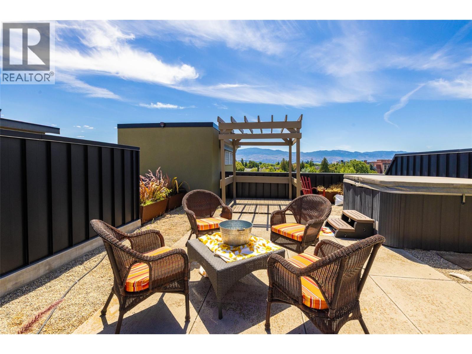 Welcome to your sophisticated urban oasis in this stunning 2-bedroom, 2-bathroom condo at Fuzion. With high ceilings and oversized south-facing windows, this open-concept living space is filled with natural light. Step outside to your private balcony, accessible from the living and dining area. Alternatively, escape to your private rooftop patio, complete with your own hot tub—ideal for relaxing under the stars or enjoying mountain views. The primary suite features a spacious walk-in closet and a luxurious ensuite bathroom. Enjoy the convenience of in-unit laundry and the added benefit of not one but two coveted parking stalls. As a resident of this incredible building, you can access various amenities, including an outdoor poolside lounge, a rooftop pool, and a hot tub just outside your door. A meeting room is available down the hall, and you'll appreciate the on-site gym and car wash area. This location is centrally situated, close to shopping and dining options. (id:21321)