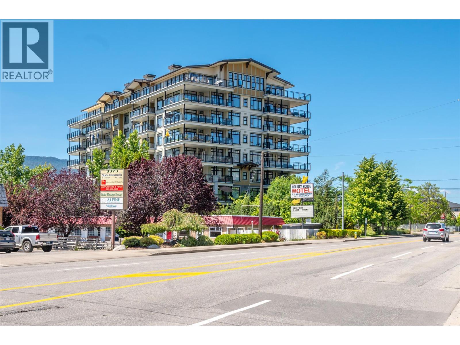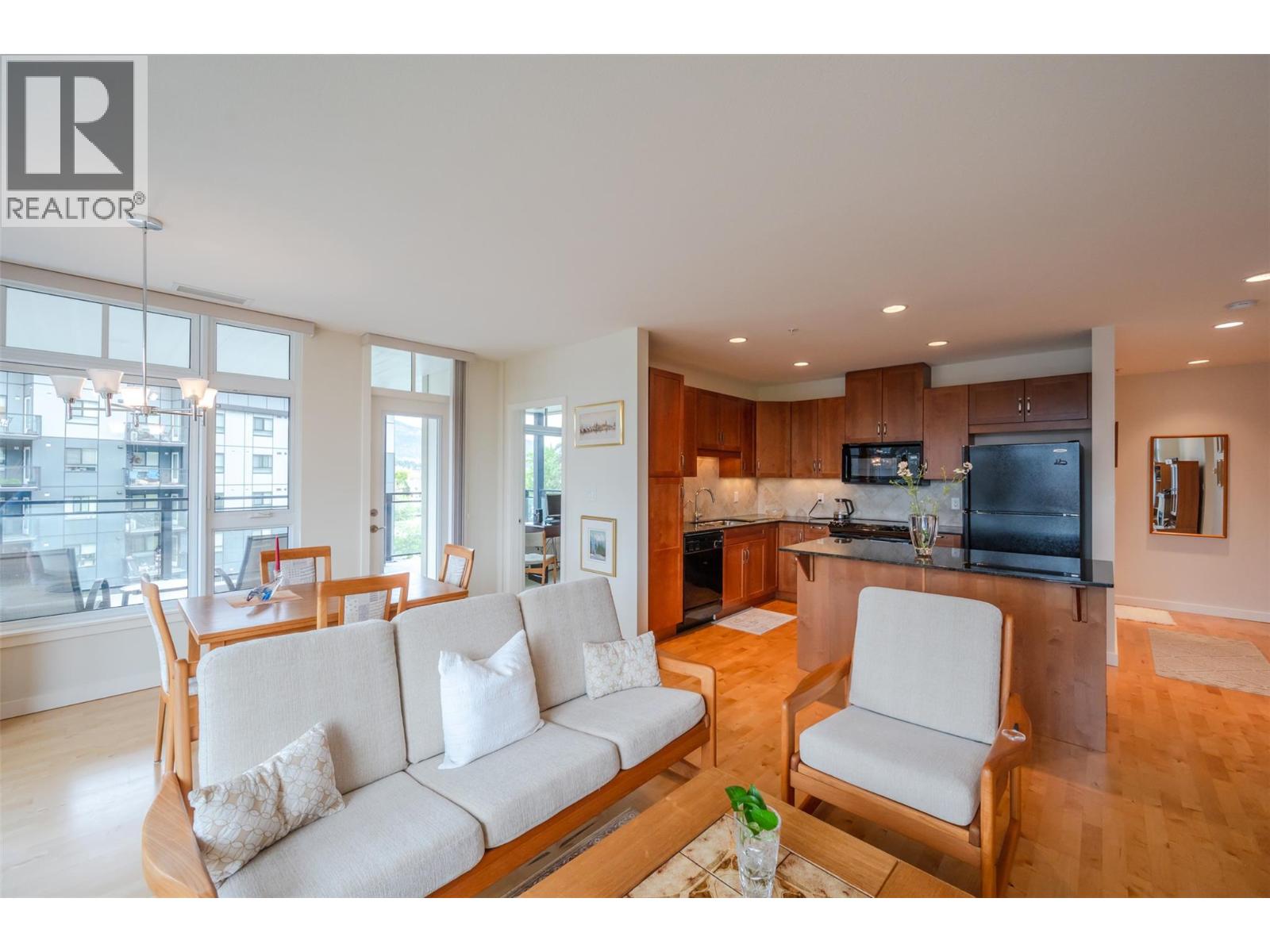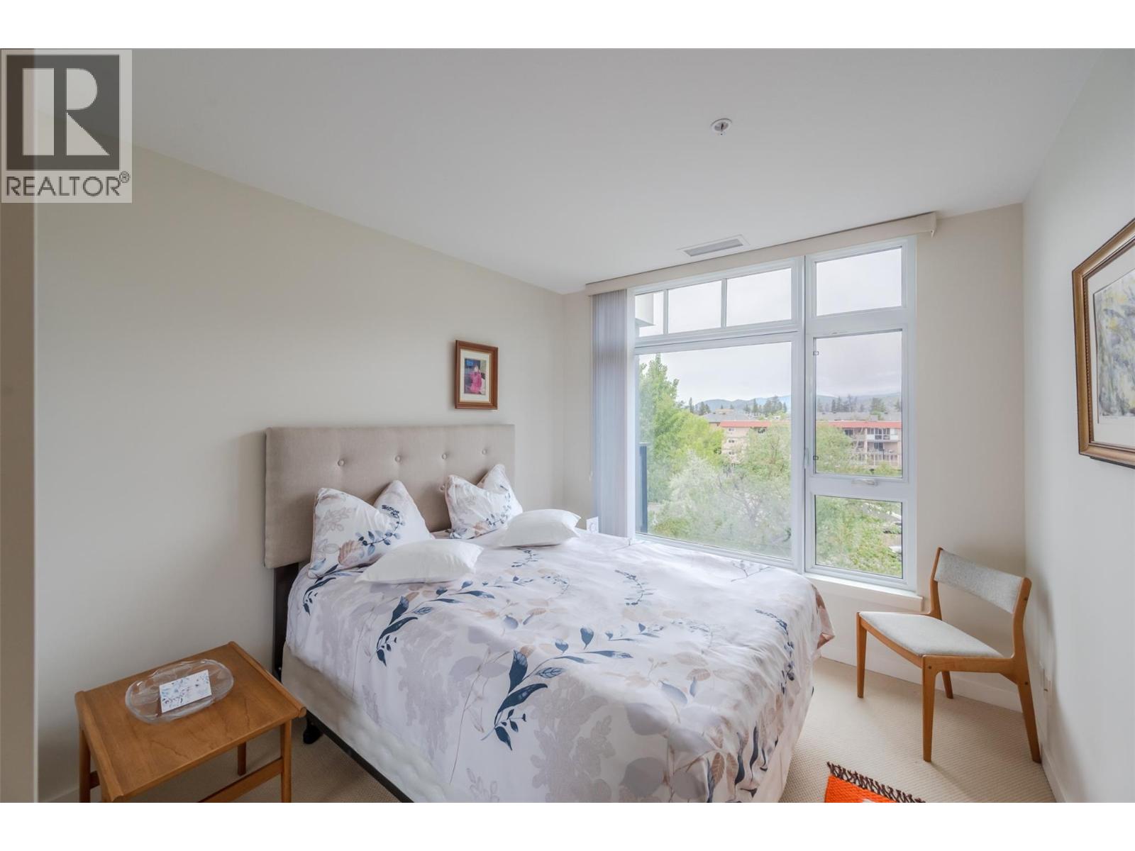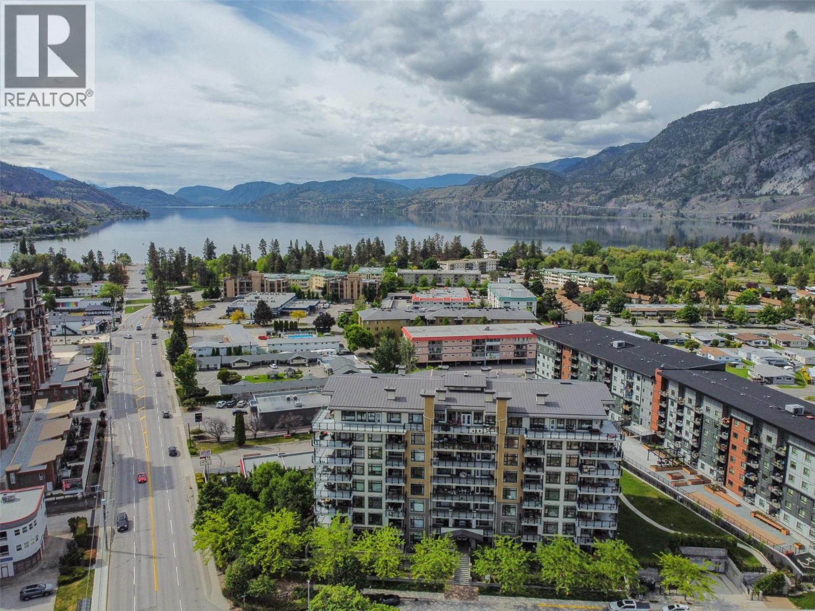 Welcome to Alysen Place! Conveniently located at 406-3301 Skaha Lake Road, Penticton only 2 blocks from Skaha Lake. This beautiful southwest corner suite is 1,277 square feet with 2 bedrooms plus den/office and 2 bathrooms. TWO UNDERGROUND PARKING STALLS. INCLUDES STORAGE LOCKER. Floor-to-ceiling windows allow for lots of natural light. Covered 400 sq ft deck with natural gas hookup for BBQ; enjoy the panoramic views. This concrete and steel building is geothermal heated and cooled. Perfectly positioned on the quiet side of the building; this home offers exceptional privacy and peace away from street noise. Inside the home, you will find an open-concept layout featuring two generously sized bedrooms, a flexible den or home office, and spacious 9-foot ceilings throughout. Geo-thermal heating and cooling are included in the strata fee; this covers heating, hot water, and air conditioning for year-round comfort and efficiency. This one won't last long; please book your appointment with your real estate agent today! (id:21321)