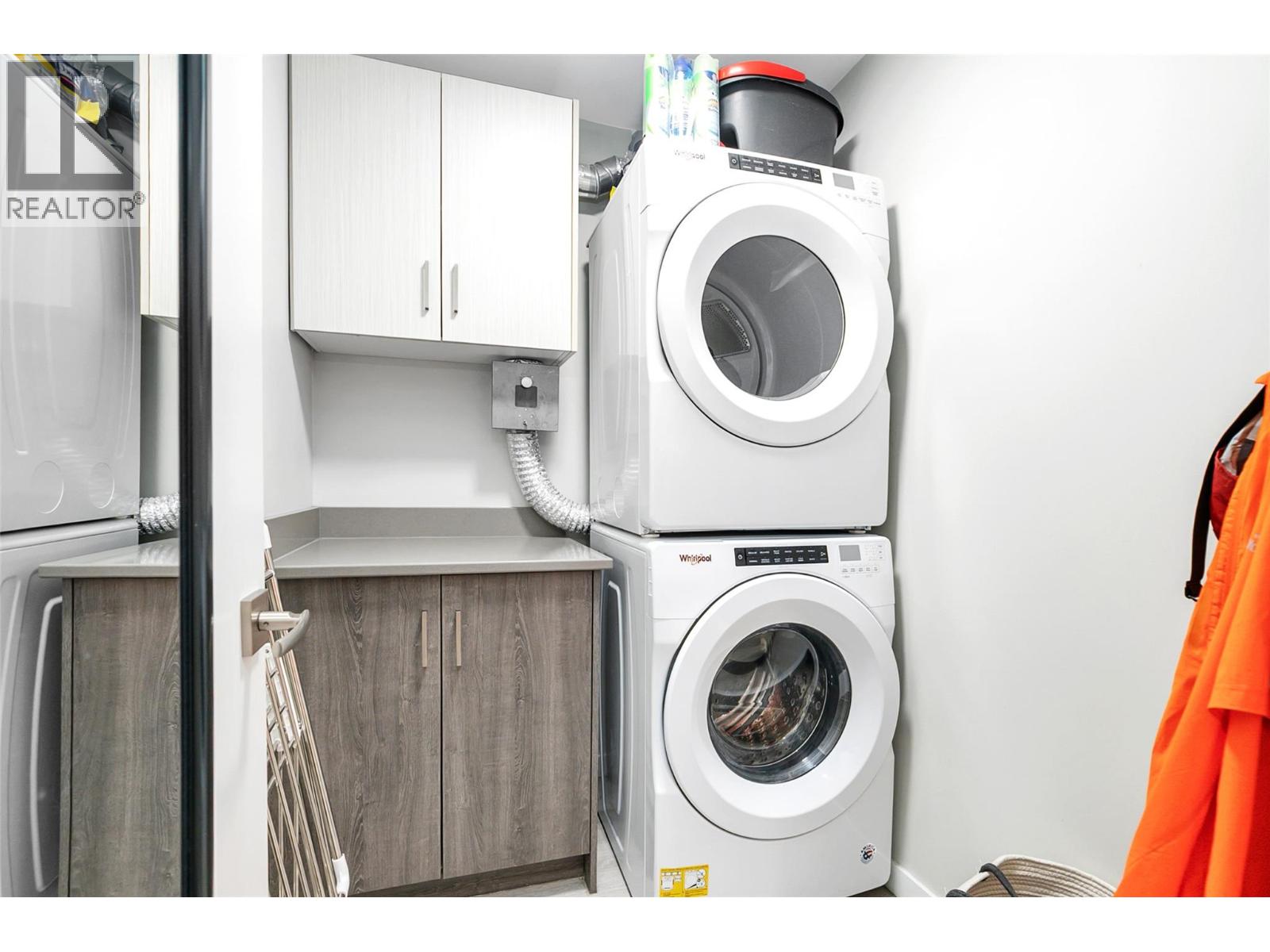 West Kelowna condo living at its finest. Built in 2021, the Centro is a bright, classy, comfortable complex only minutes from beaches, wineries, golf courses, shopping and all amenities. This 2 bed, 2 bath unit is in beautiful condition and checks all the boxes: Top floor, great open layout, high end finishing, functional laundry room, bonus den with built in cabinets, quality stainless appliances and a quiet covered deck overlooking the pine trees and ponds with Okanagan Lake in the background. Pet friendly, on-site fitness room, same floor storage locker, 2 underground parking spots (very rare!) and ample visitor parking out front. Building backs onto nature trails and has quick highway access going either direction with alternate routes available. Amazing value and lifestyle awaits you here. Come check it out! (id:21321)