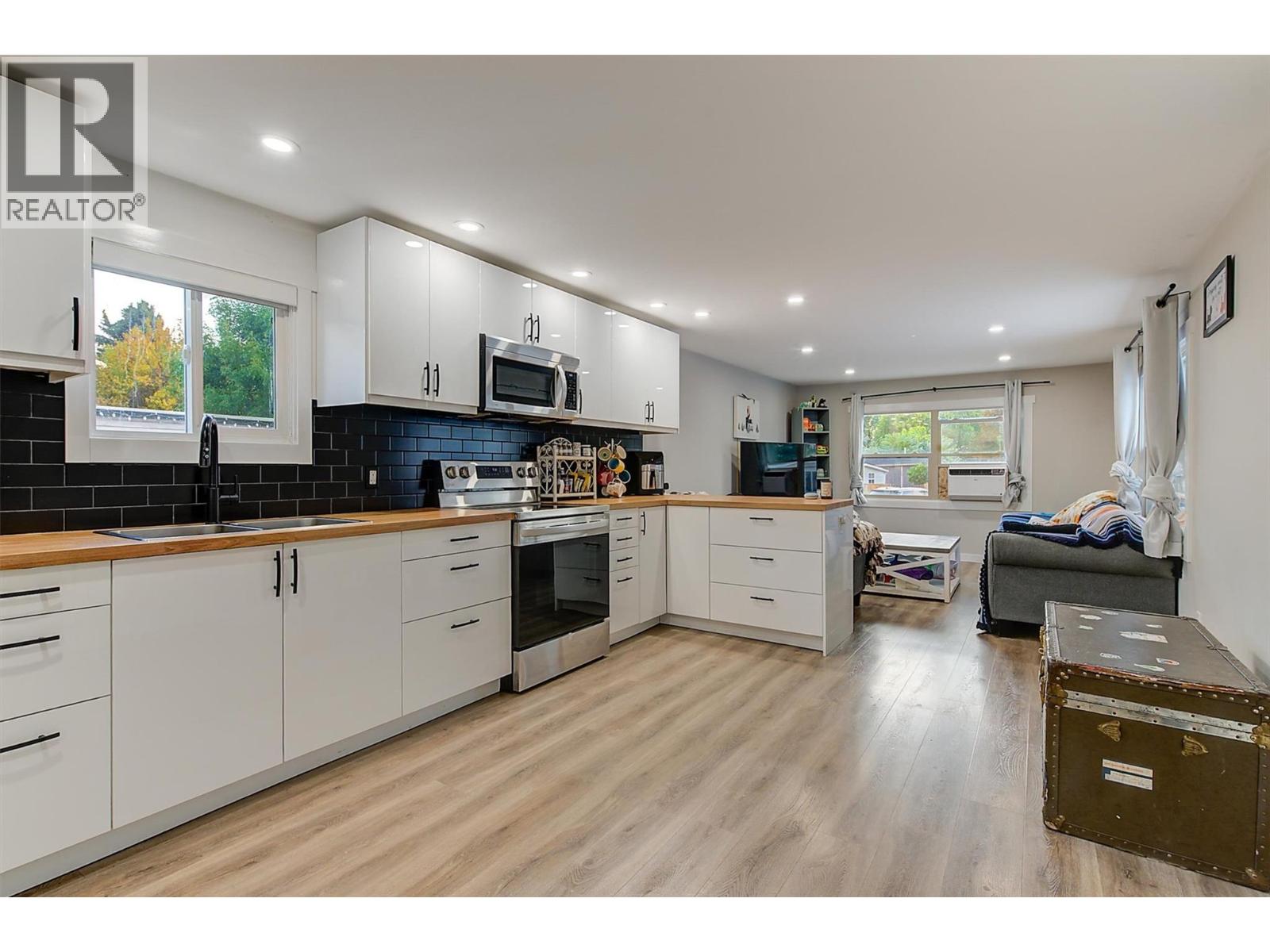 Welcome to your ultimate beachside retreat at Princess Mobile Home Park in West Kelowna! This beautifully renovated 1-bedroom, 1-bathroom single-wide mobile home offers an unbeatable location with direct access to the beach, while being conveniently central to beautiful wineries, shops, grocery stores, and all the Okanagan has to offer. The 2023 renovation truly shines, featuring new floors, brand new kitchen with stainless steel appliances, a stylish backsplash, and upgraded windows. The bright, spacious living area is perfect for relaxing or entertaining, with a large kitchen equipped with a pantry and plenty of room for entertaining guests. Outside, the generous fenced yard offers a private getaway with your own storage shed, and the gravel driveway accommodates parking for up to two vehicles. Enjoy the peace of mind that comes with a newer roof, furnace, dryer and hot water tank—all major expenses are taken care of. Whether you're indulging in local wines or soaking up the sun on the private beach, this home promises endless enjoyment. Don't miss the chance to own this turnkey, condo alternative that gives you your own four walls and perfectly combines modern comfort with an idyllic beach lifestyle. (id:21321)