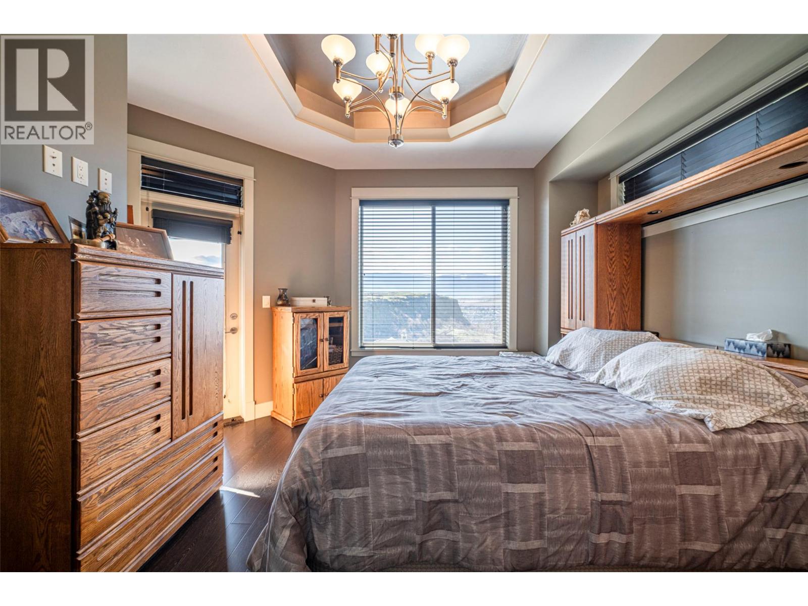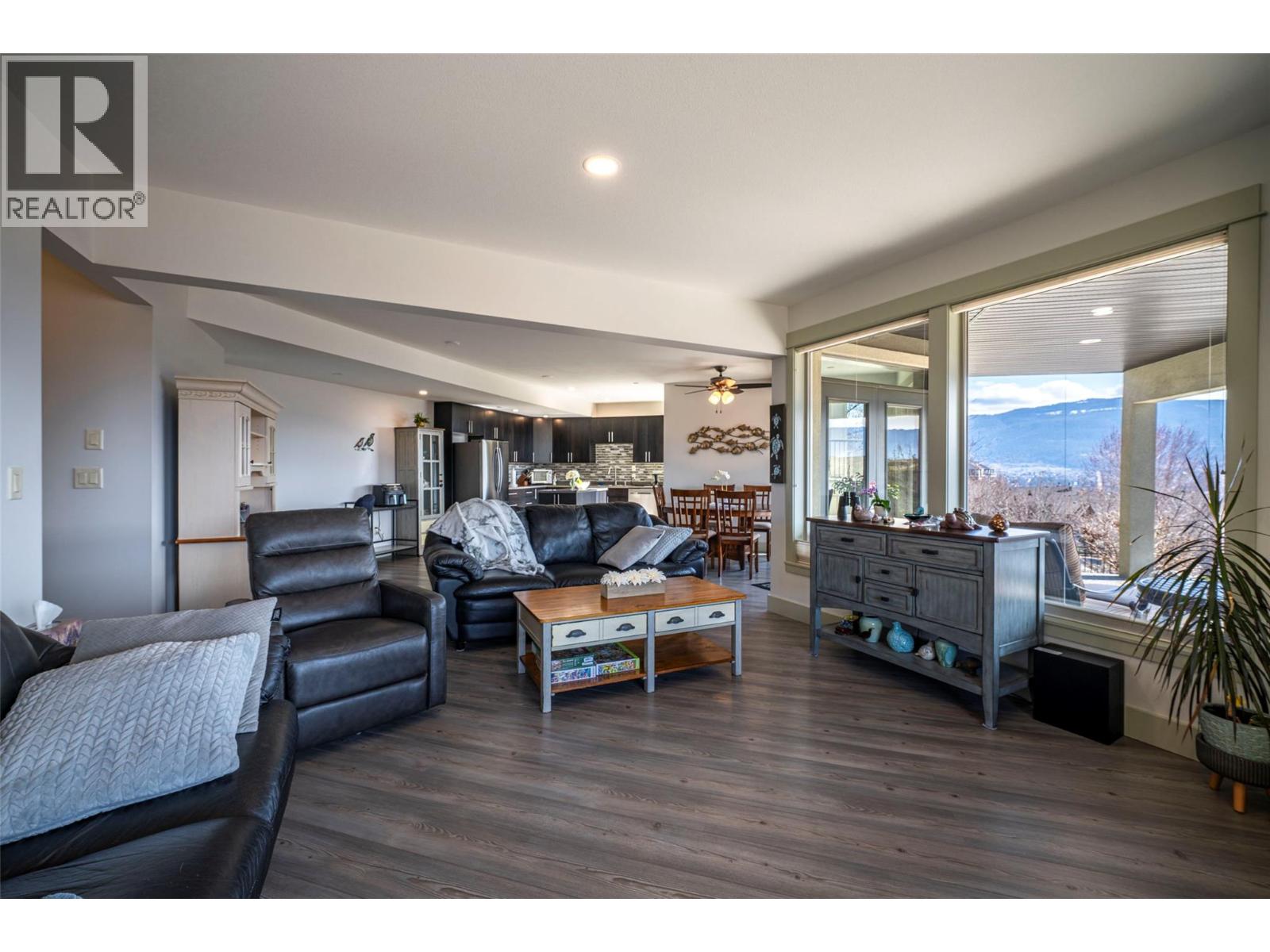 Welcome to desirable Turtle Mountain! Enjoy breathtaking, unobstructed valley and lake views from this custom built 4 bedroom, 3 bathroom home with a fully self contained in law suite, perfectly situated on a low maintenance lot. The main floor showcases a spacious kitchen featuring a gas range, Corian countertops, a 9 ft eating bar, and striking zebra wood veneer cabinetry. Adjacent to the kitchen is a bright eating nook with direct access to a covered patio and stamped concrete deck ideal for entertaining or relaxing while taking in the views. The living room impresses with a tray ceiling, hardwood floors, and a dramatic floor to ceiling stone gas fireplace. The primary bedroom offers private access to the covered deck, a full 5 piece ensuite, and a walk-in closet. A second bedroom or den, full bathroom, and convenient laundry complete the main level. Downstairs, you’ll find a spacious 2 bedroom, 1 bath in law suite with a separate entrance and private patio perfect for extended family or added flexibility. Additional features include an oversized 22' x 26' double garage, central A/C, gas furnace, new gas hot water tank, water softener, and charming timber frame accents. Located close to shopping, city services, and miles of walking and biking trails, this home is ideal for young families, multi generational living, or urban professionals seeking comfort, style, and views. (id:21321)
