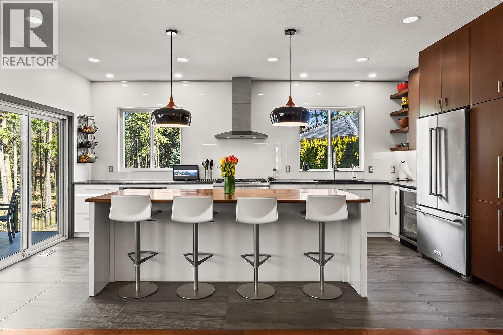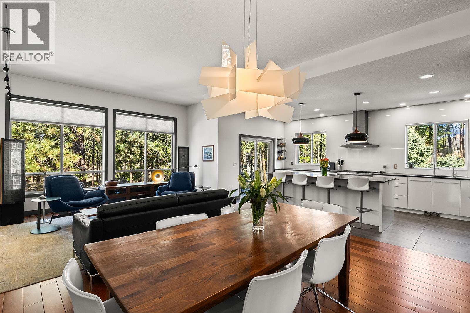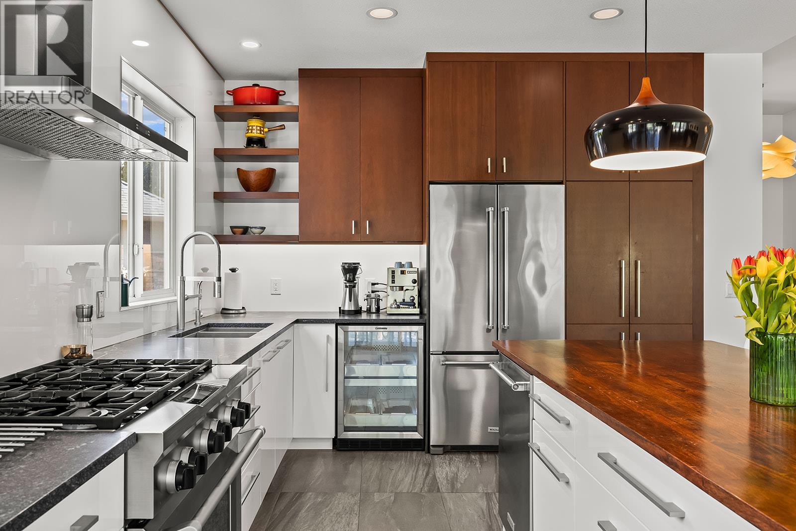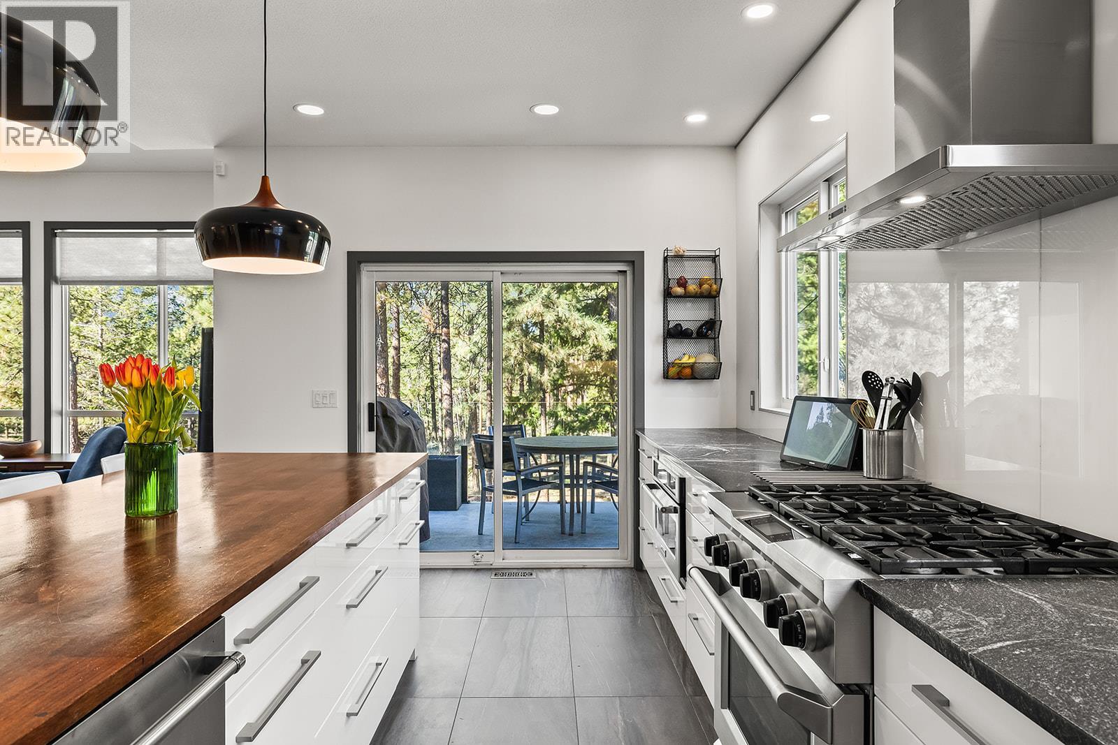 Nestled in a tranquil setting in the heart of Gallaghers Canyon where nature is truly at your doorstep, this beautifully updated home features Japanese cherry flooring, modern lighting, and spa-inspired bathrooms. The main floor boasts a bright open-concept layout with oversized windows. A linear gas fireplace adds warmth and character to the spacious living area. The designer kitchen, with oversized island and high-end stainless appliances including a steam oven and gas cooktop, is perfect for the home chef. There are 2 bedrooms including the lovely primary suite with walk-in closet and 3-piece ensuite, plus a stylish 4-piece main bath on this level, as well as a thoughtfully designed mudroom with laundry, hanging space, storage, and direct garage access. The lower level offers a generous rec room with gas fireplace, summer kitchen, and access into the incredible outdoor living space. Two additional bedrooms, a 3-piece bath with sauna, separate toilet/shower room, and ample storage space. The expansive backyard provides the perfect space to relax and enjoy the Okanagan lifestyle. Extensive network of nature trails right out your back gate connecting to KLO Regional Park and the Mission Park Greenway. Gallaghers Canyon offers unparalleled resort-style lifestyle with access to two championship golf courses, tennis courts, indoor pool, fitness centre, hot tub, games room, art studios, and miles of scenic walking trails. All of this just 15 minutes from downtown Kelowna. (id:21321)