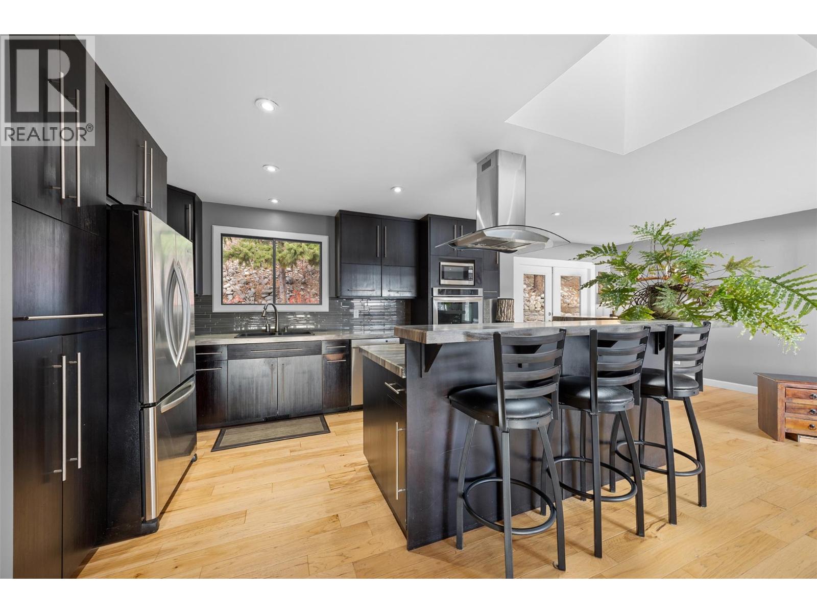 Nestled in the hills of Peachland, this 4-bedroom, 3-bath home captures outstanding views of Okanagan Lake and the surrounding mountains. Designed for the Okanagan lifestyle, this home features three distinct outdoor living spaces: a spacious lakeview deck with newer vinyl and glass railings to take in the endless views, a stone patio perfect for outdoor dining and entertaining, and a private side-yard retreat surrounded by gardens, greenery and views ~ ideal for quiet mornings or playtime with pets The main floor is bright and inviting, highlighted by hardwood flooring, skylight, and an updated kitchen with island that flows seamlessly into the open-concept dining and living areas. Double doors from the dining room open onto the stone patio, creating effortless indoor-outdoor living. The primary bedroom offers lake views, deck access, and a 3-piece ensuite, while a second bedroom and main bath with a soaker tub complete the main level. The lower level adds flexibility with a family room, two additional bedrooms, and a separate entrance ~ perfect for guests, a home office, or a potential suite. All of this is just minutes from Peachland’s vibrant Beach Avenue, where you can enjoy coffee shops, restaurants, pubs, beaches, and the scenic lakefront promenade. Whether you’re sipping morning coffee on the deck or dining under the stars, this home delivers the perfect blend of privacy, comfort, and true Okanagan living. (id:21321)