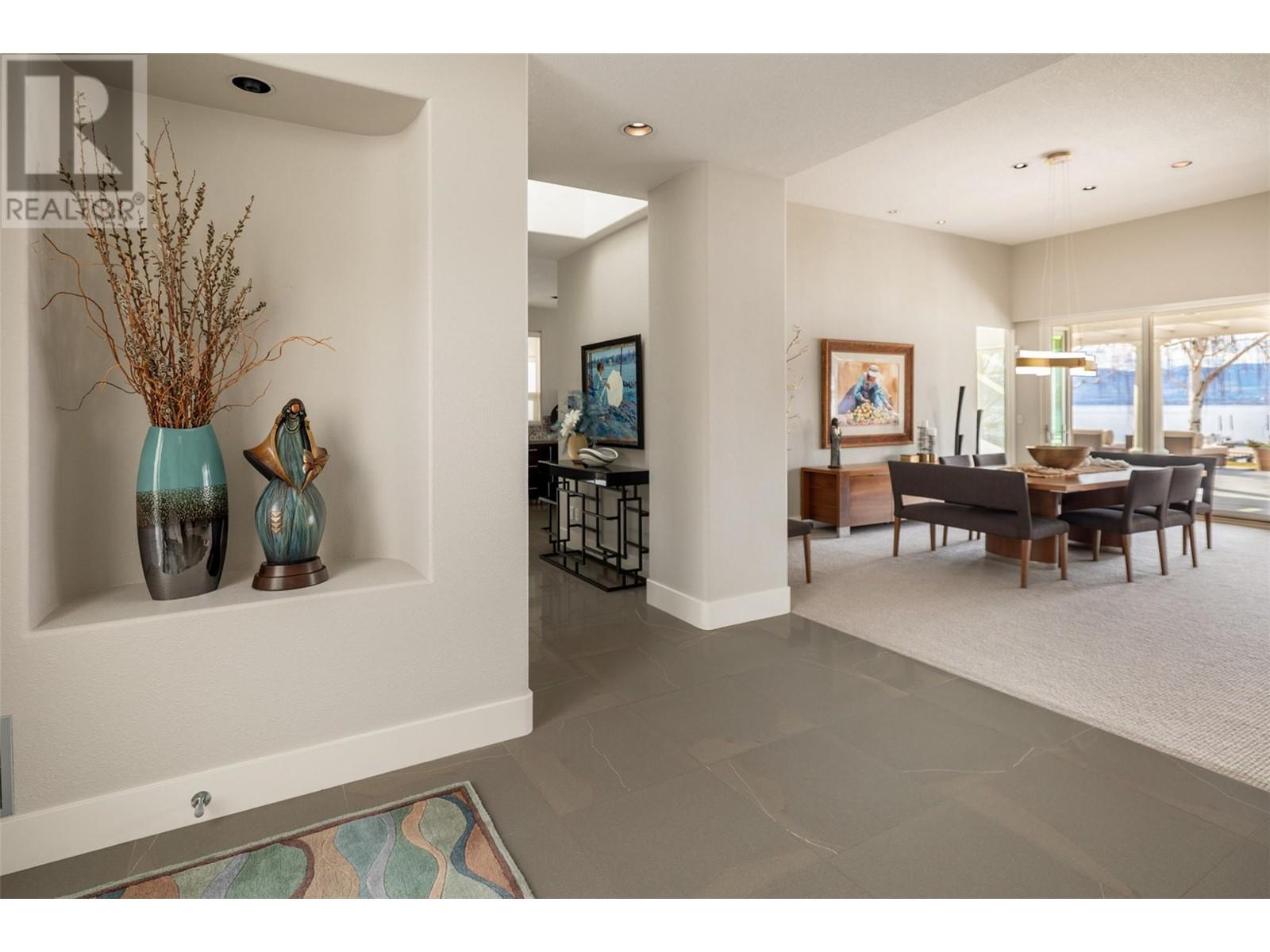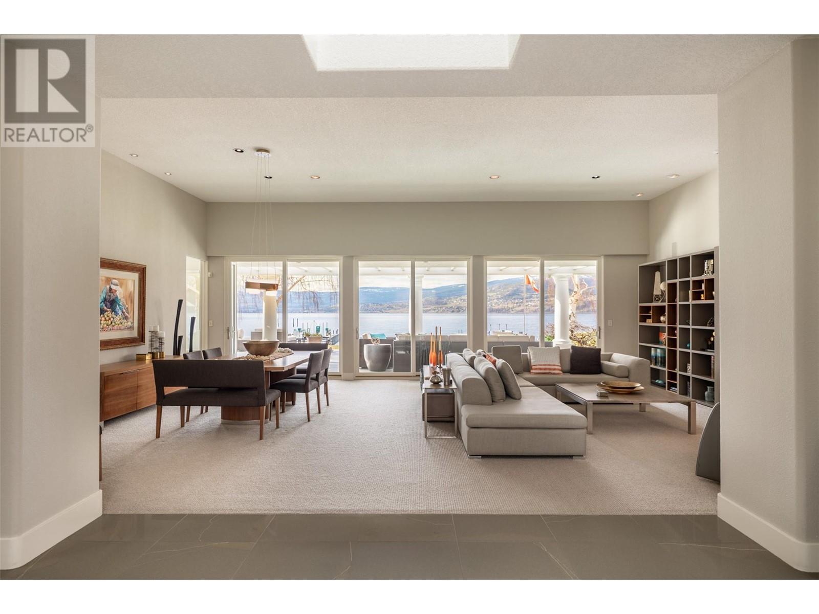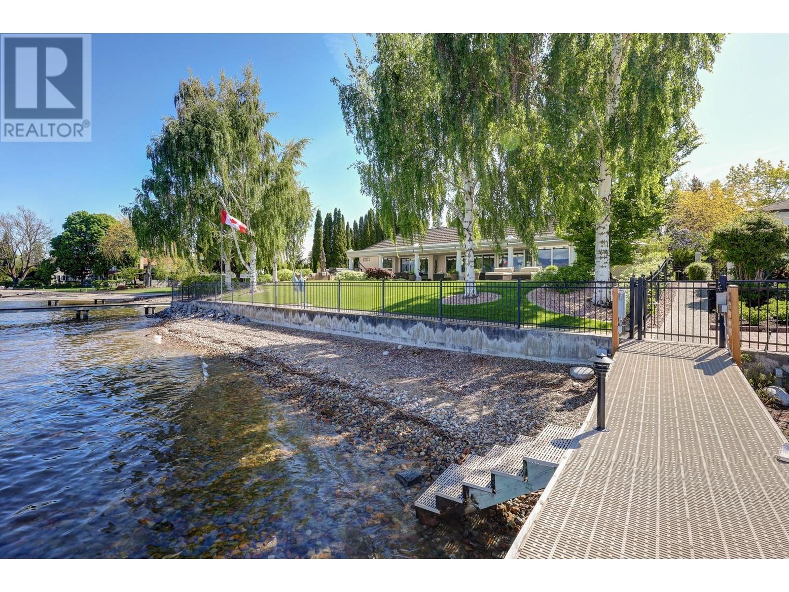 Rare offering on the shores of Okanagan Lake. This one-level lakeshore estate in Kelowna’s coveted Lower Mission offers modern comfort with exceptional privacy. Set at the end of a quiet no-thru road, the .49-acre property boasts over 105 ft of level beachfront, mature landscaping, and a shared dock with boat and Seadoo lifts. Spanning over 3,600 sq ft, this 3-bed, 3-bath rancher with 1 bed/1 bath guest house is designed for effortless indoor-outdoor living, featuring floor-to-ceiling sliding doors and stunning lake views from nearly every room. The gourmet kitchen is perfect for entertaining, complete with custom cabinetry, expansive counters, professional-grade appliances—including a gas range, double oven, and dual dishwashers—and a charming breakfast nook with lake views and patio access. The generous primary suite offers direct patio access, a spa-inspired ensuite, and a walk-in closet with a skylight and center island. A detached guest casita with its own bed and bath provides the ideal retreat for visitors. Outside, the expansive patio with built-in BBQ, outdoor kitchen, ceiling fan, and heaters sets the stage for lakeside gatherings. Additional highlights include a triple garage, smart home features, heated floors, and a private hot tub. A rare opportunity to live lakeside in one of Kelowna’s most sought-after neighbourhoods, just minutes to downtown, world-class wineries, and local golf courses. (id:21321)