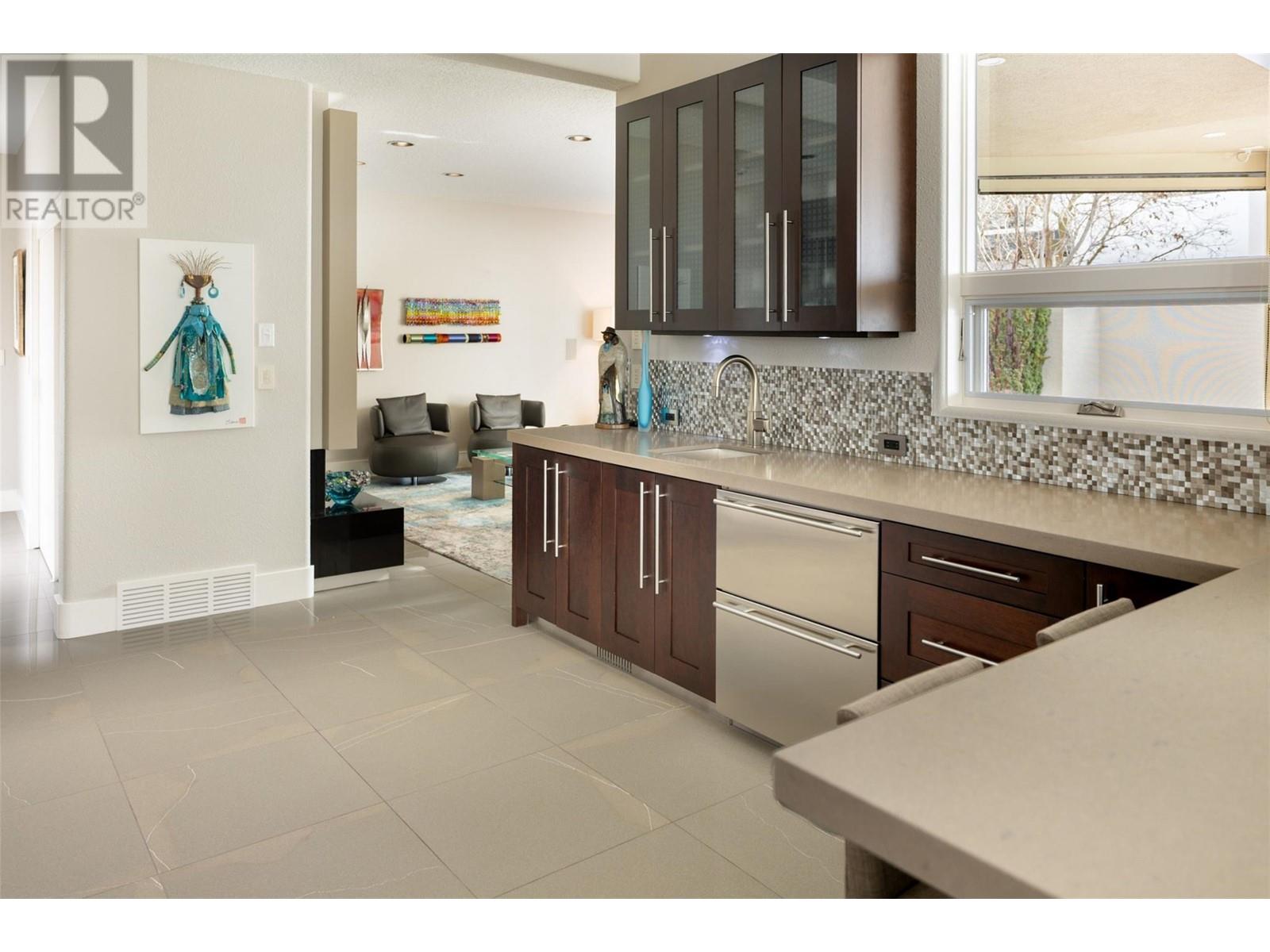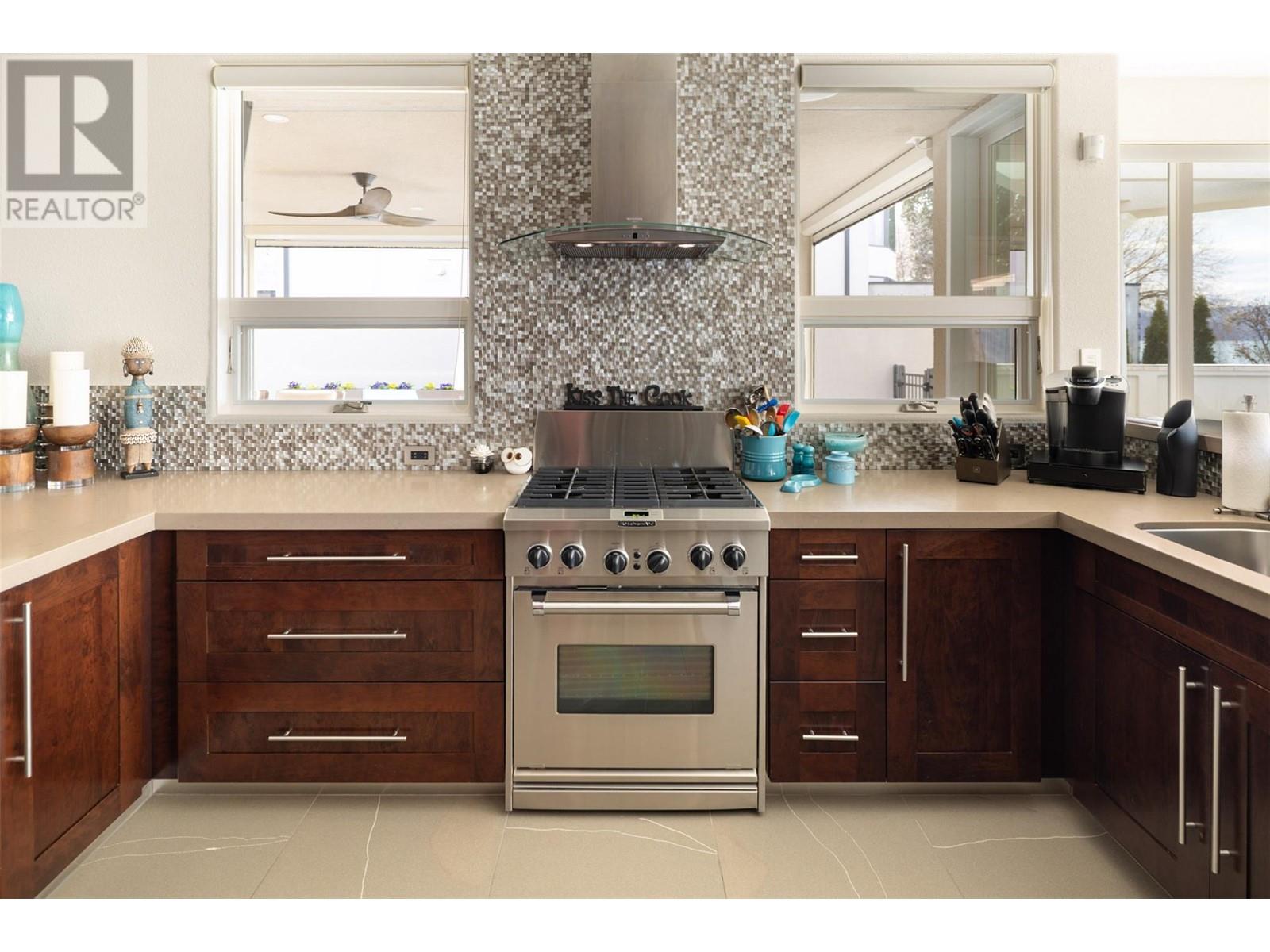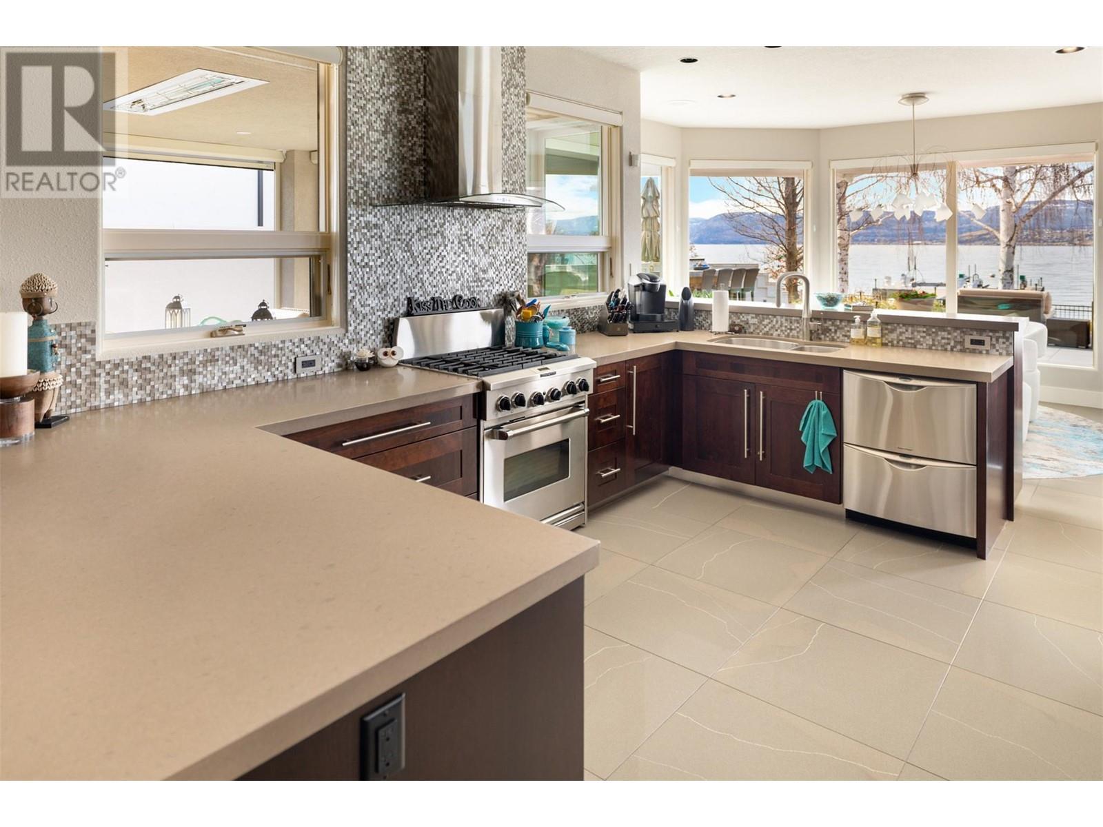 Rare offering on the shores of Okanagan Lake. This one-level lakeshore estate in Kelowna’s coveted Lower Mission offers modern comfort with exceptional privacy. Set at the end of a quiet no-thru road, the .49-acre property boasts over 105 ft of level beachfront, mature landscaping, and a shared dock with boat and Seadoo lifts. Spanning over 3,600 sq ft, this 3-bed, 3-bath rancher with 1 bed/1 bath guest house is designed for effortless indoor-outdoor living, featuring floor-to-ceiling sliding doors and stunning lake views from nearly every room. The gourmet kitchen is perfect for entertaining, complete with custom cabinetry, expansive counters, professional-grade appliances—including a gas range, double oven, and dual dishwashers—and a charming breakfast nook with lake views and patio access. The generous primary suite offers direct patio access, a spa-inspired ensuite, and a walk-in closet with a skylight and center island. A detached guest casita with its own bed and bath provides the ideal retreat for visitors. Outside, the expansive patio with built-in BBQ, outdoor kitchen, ceiling fan, and heaters sets the stage for lakeside gatherings. Additional highlights include a triple garage, smart home features, heated floors, and a private hot tub. A rare opportunity to live lakeside in one of Kelowna’s most sought-after neighbourhoods, just minutes to downtown, world-class wineries, and local golf courses. (id:21321)