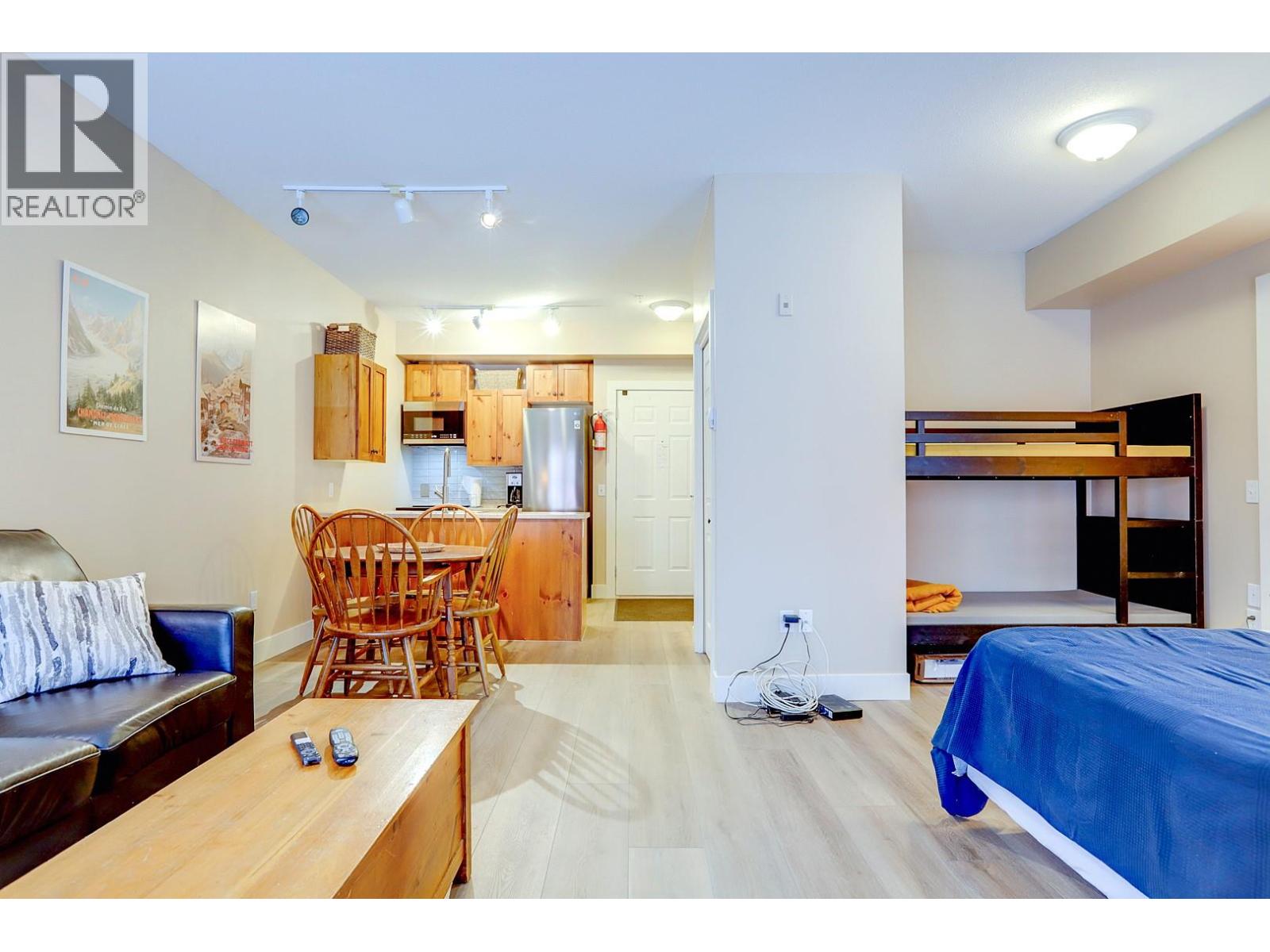 Renovated top floor studio unit at Silvercreek Lodge at Silver Star Mountain Resort. Conventional strata ownership and owners can enjoy and live in all year round, lock and leave, or rent through Silver Star Holidays when not using it themselves. This unit has been extensively renovated, shows great and is ready for your enjoyment right NOW. GST is NOT applicable and no rental commitments. The Silvercreek has a great close to the heart of the village location with effortless ski in and out. Great building amenities with; underground parking, 2 roof top hot tubs, gym, spacious secure owner locker, day/rental ski locker, optional bike lockers, wax area, and lots more. Strata fees of approximately 375,00 (to come) are almost all inclusive and include all the usual but also, gas, electricity, water, sewer, garbage, cable and wifi. All furniture and contents negotiable. Vacant and easy to view. (id:21321)