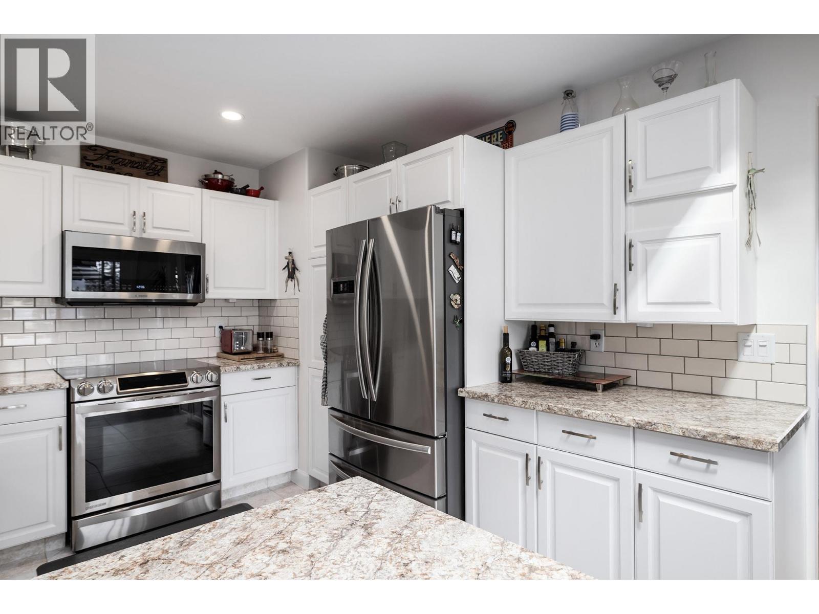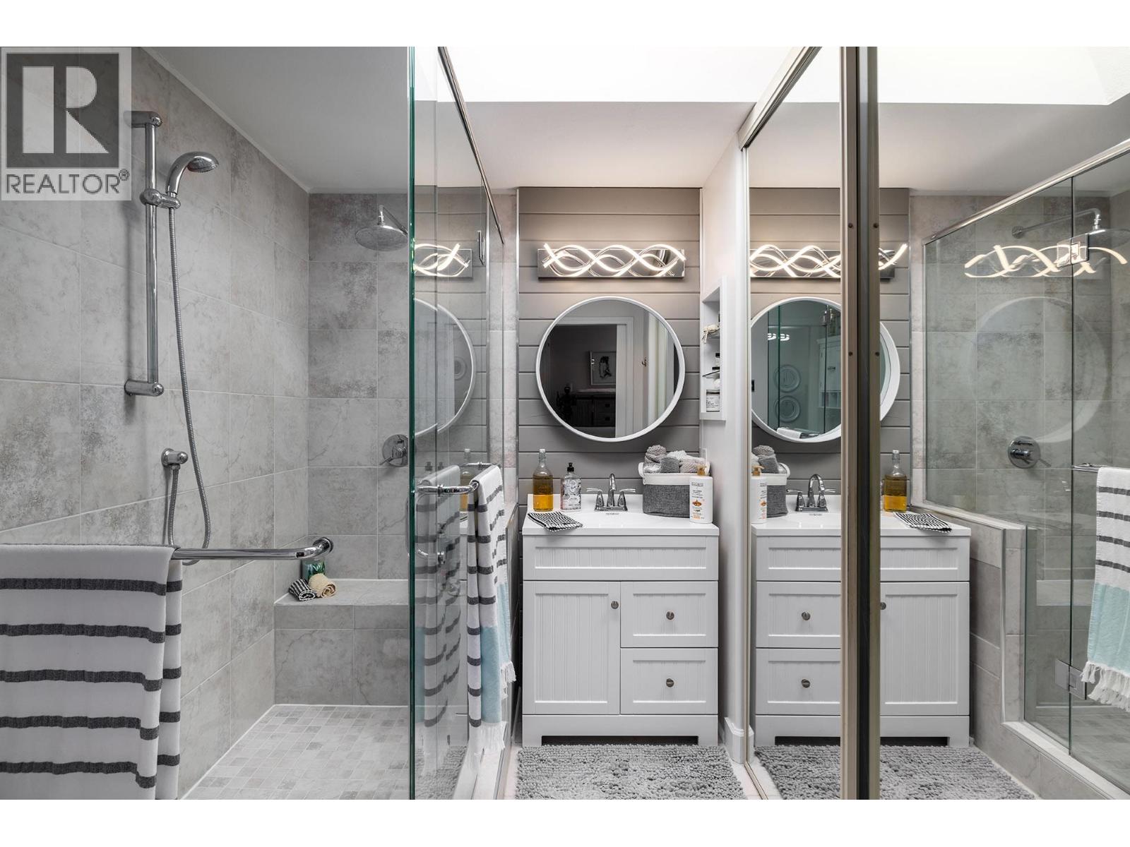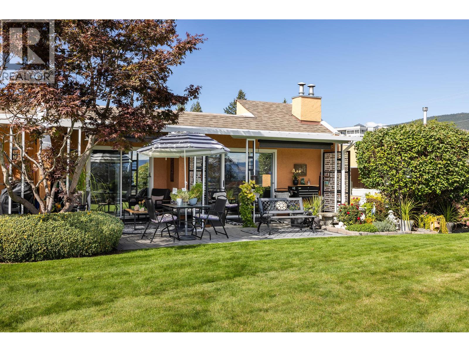 Immaculate FREEHOLD Bare Land Strata semi-detached duplex with Lake and Mountain Views and leisure gardens 55+. Fully renovated with 2 primary suites, featuring upgraded crown moldings, hardwood & vinyl flooring, and 3 skylights. The layout includes a spacious eat-in kitchen with SS appliances, roll-out cabinetry, and loads of storage. Enjoy the warmth of two gas fireplaces and ductless A/C. The strata covers heat, hot water & gas for fireplaces. Additional highlights are the extra large patio, garage, and proximity to amenities, including the beach and rec center. This property boasts shiplap details in all three bathrooms, radiant baseboard heat. Electricity only $56/month, Experience elegance and comfort in this gem. (id:21321)