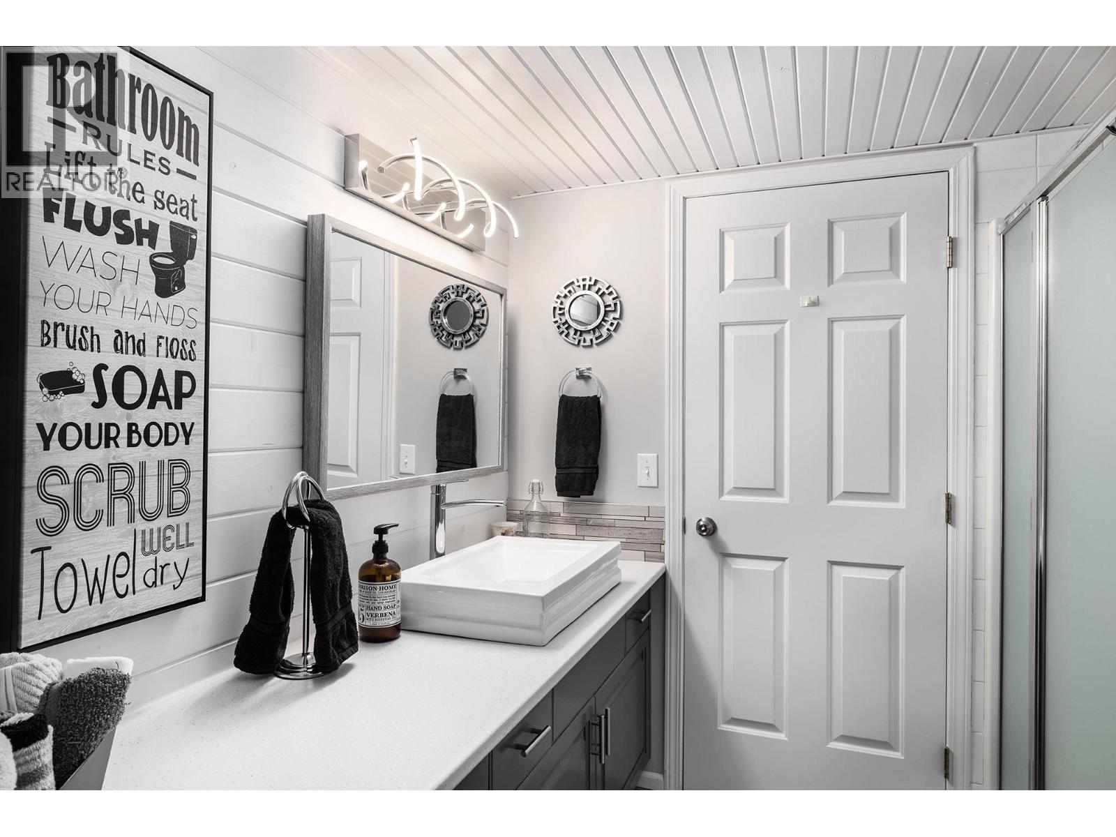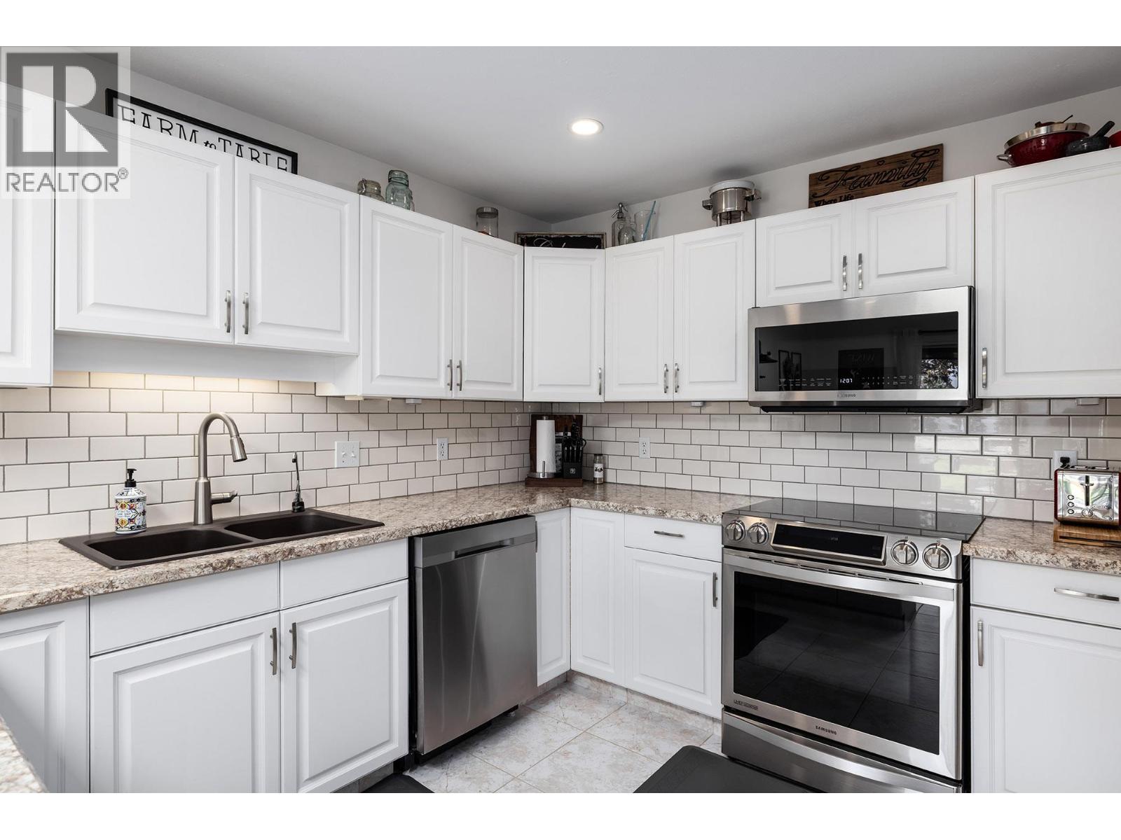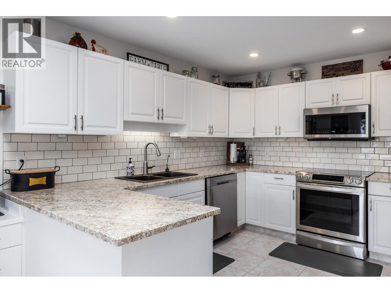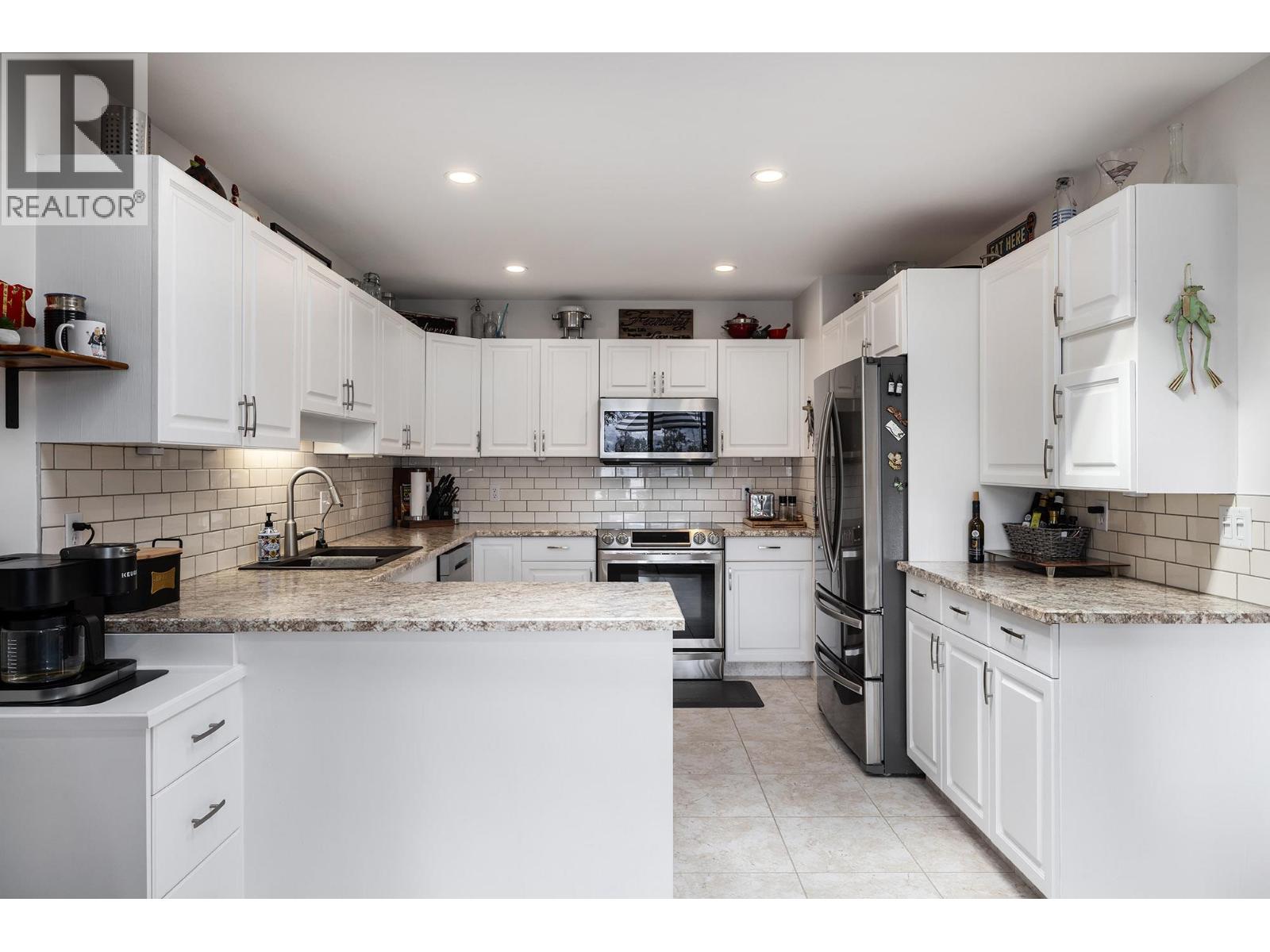 Immaculate FREEHOLD Bare Land Strata semi-detached duplex with Lake and Mountain Views and leisure gardens 55+. Fully renovated with 2 primary suites, featuring upgraded crown moldings, hardwood & vinyl flooring, and 3 skylights. The layout includes a spacious eat-in kitchen with SS appliances, roll-out cabinetry, and loads of storage. Enjoy the warmth of two gas fireplaces and ductless A/C. The strata covers heat, hot water & gas for fireplaces. Additional highlights are the extra large patio, garage, and proximity to amenities, including the beach and rec center. This property boasts shiplap details in all three bathrooms, radiant baseboard heat. Electricity only $56/month, Experience elegance and comfort in this gem. (id:21321)