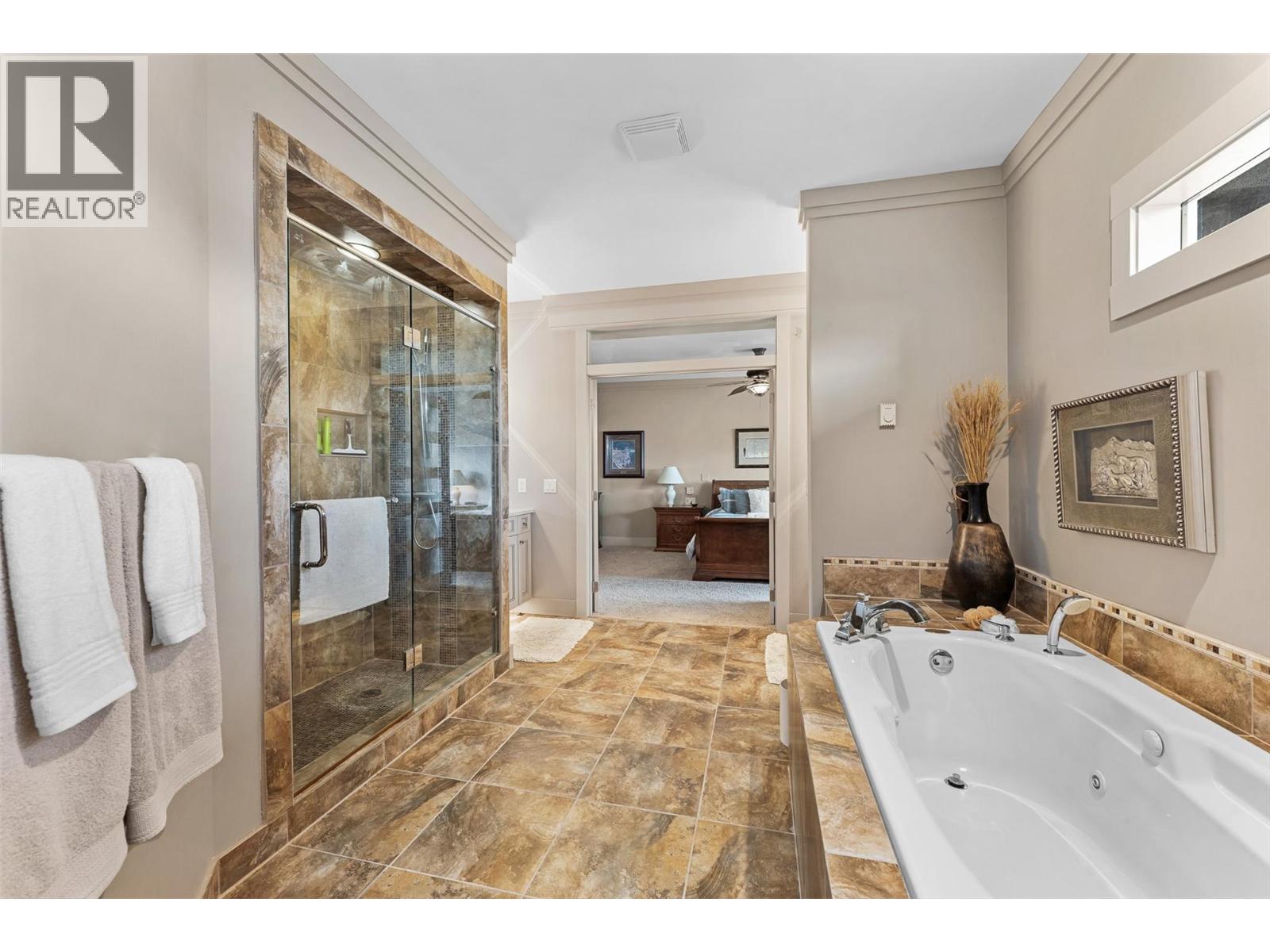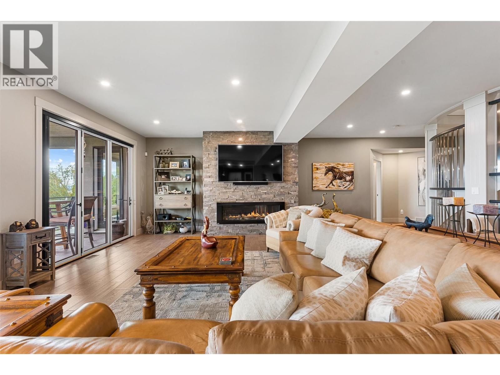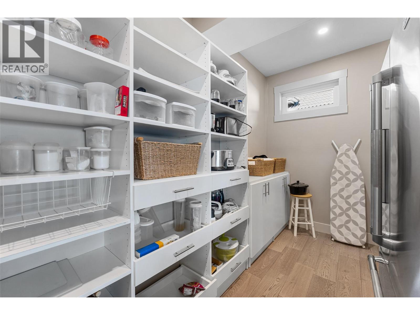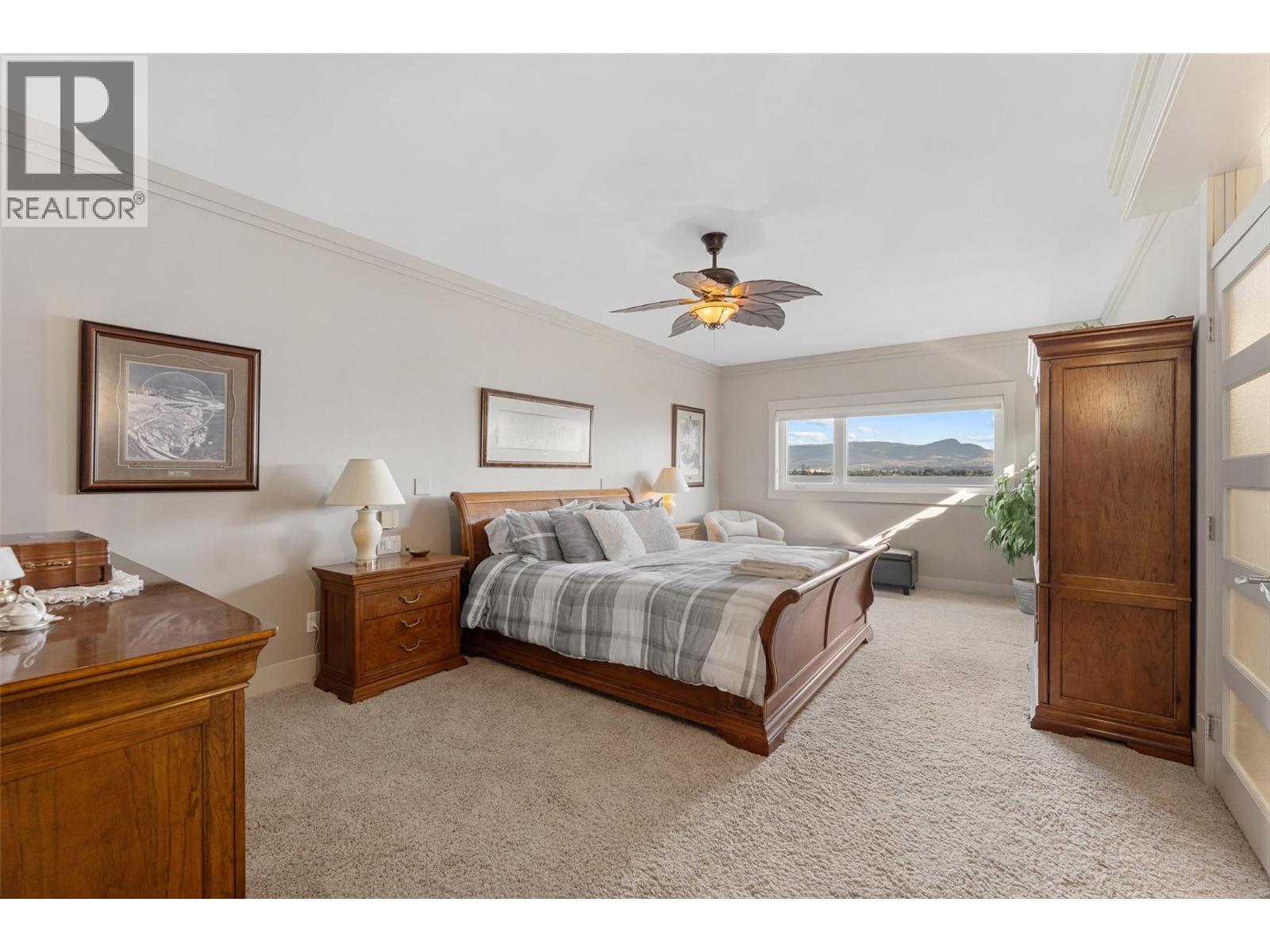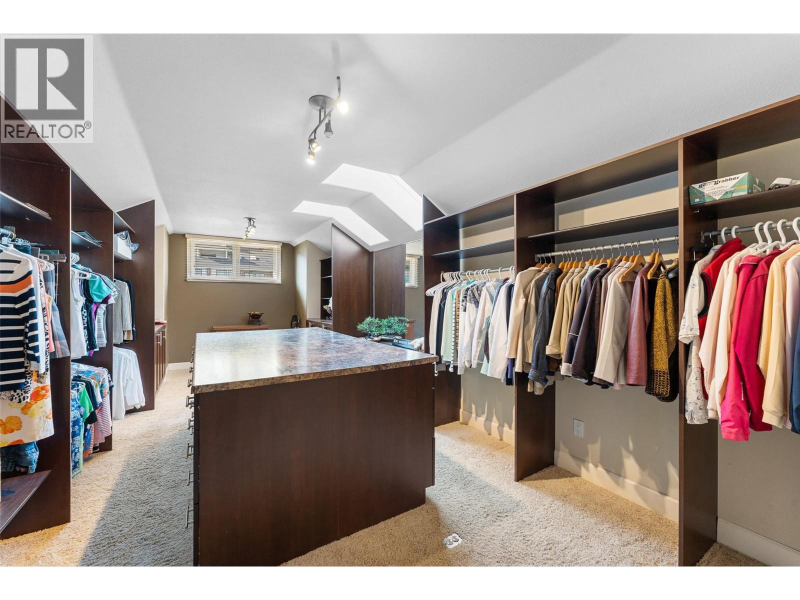 Nestled on a quiet cul de sac in a private waterfront setting, this beautiful customized residence offers a rare opportunity to experience tranquil living on the shores of Okanagan Lake. Surrounded by mature gently sloping grounds, the home blends refined design with a relaxed, resort-inspired lifestyle. Panoramic city and lake view and just minutes into town! A grand foyer with soaring ceilings, skylights and a graceful curved staircase welcomes you inside. The main living area unfolds beneath expansive windows and wall-to-wall Nano doors that open to the covered lakeside deck, creating seamless indoor-outdoor living just steps from the water. At the heart of the home, the chef’s kitchen featuring two islands, including a large L-shaped island with seating for seven, stone countertops, premium Thermador appliances and an oversized walk-in pantry. The primary retreat offers deck access, a custom walk-in closet and a spa-inspired ensuite with heated floors, a freestanding soaker tub and a fully tiled walk-in shower. Additional bedrooms on the upper level provide privacy for family and guests, including a second primary-style suite. The lower level is designed for relaxation with a spacious rec room, temp-controlled wine room, guest suite and walk-out access to the covered patio and backyard. All levels with elevator access! Outside, tiered landscaping leads to a sandy beach and a dock with boat and Seadoo lifts. Heated triple garage and generous driveway parking. (id:21321)