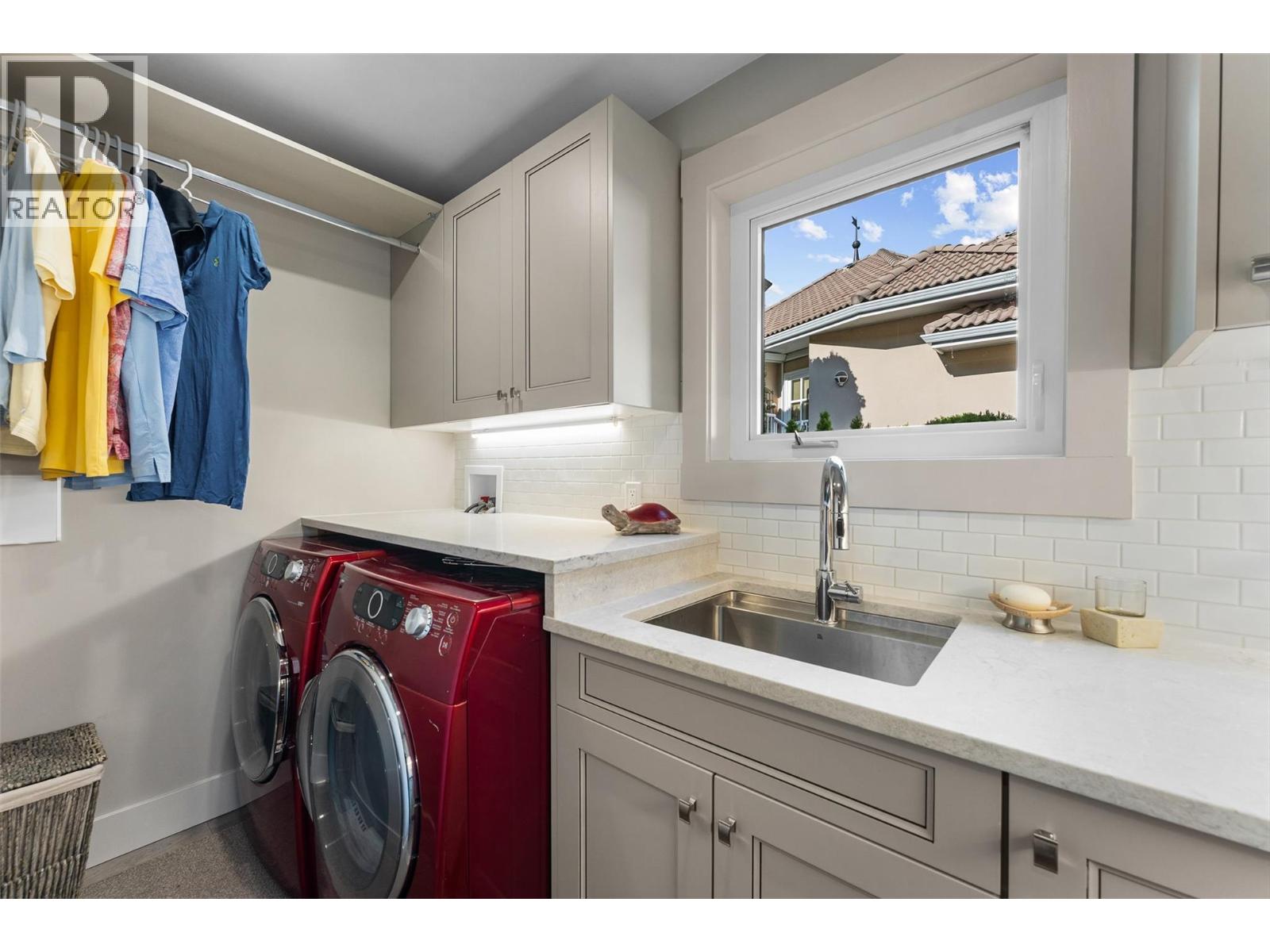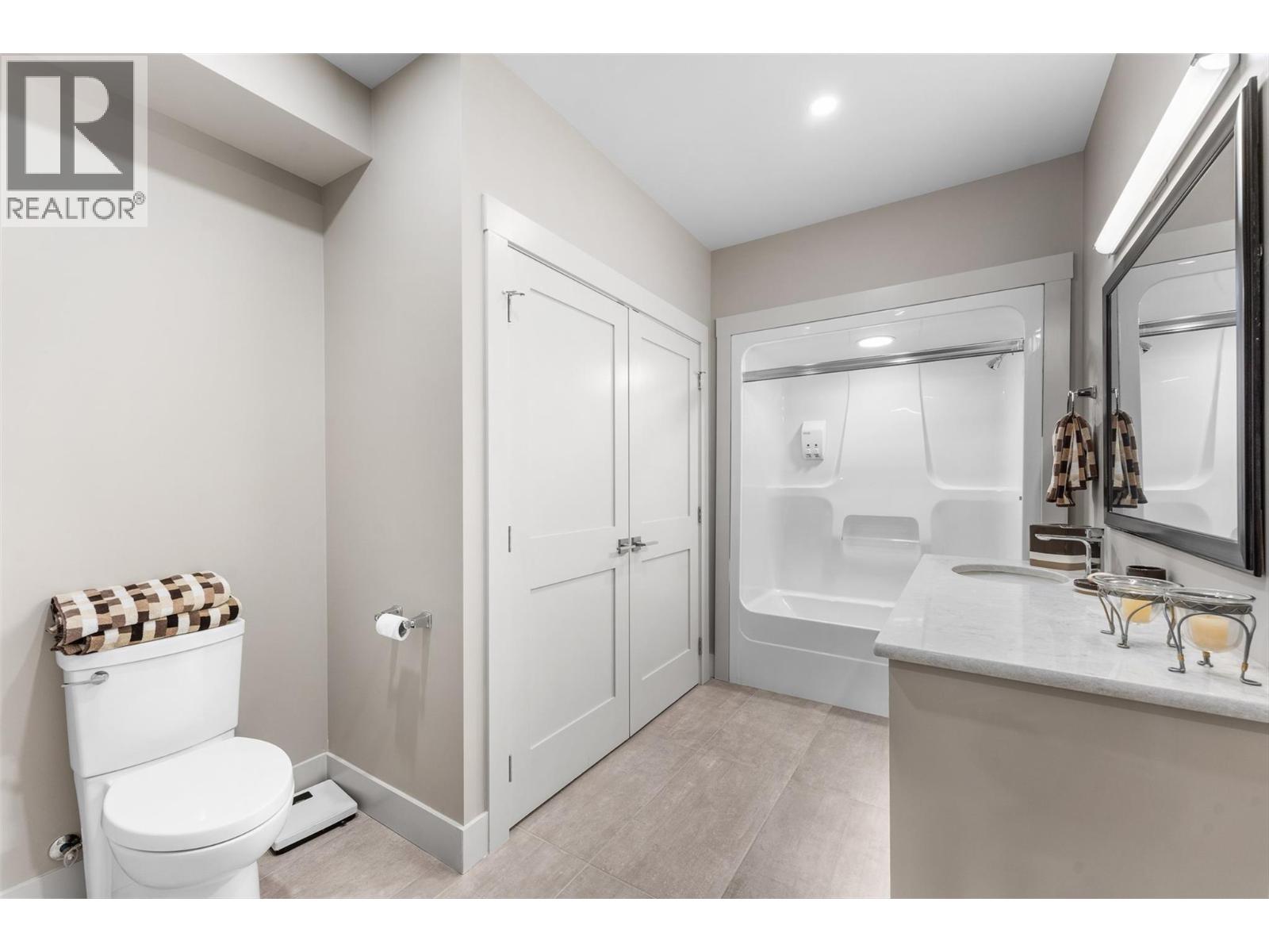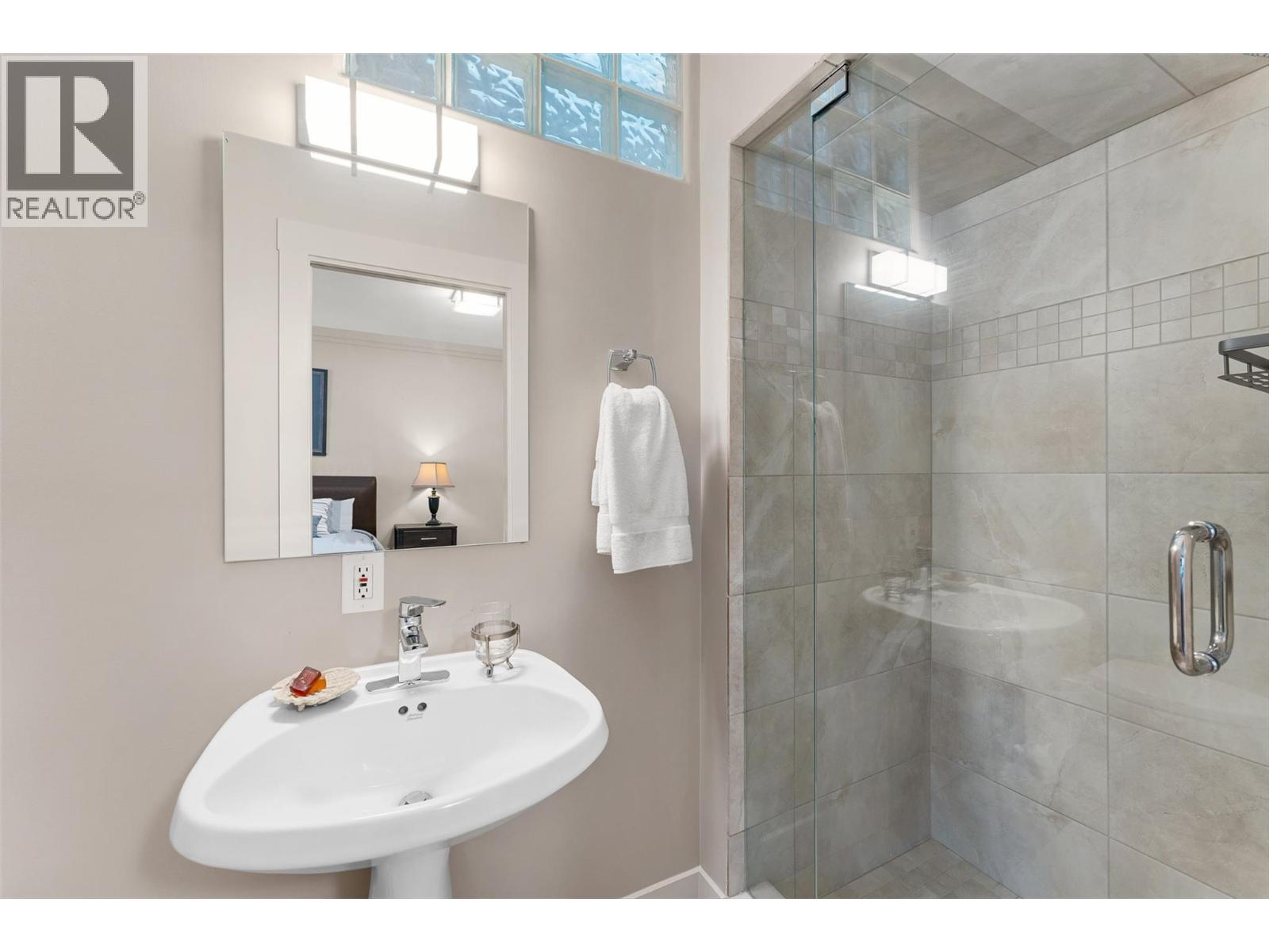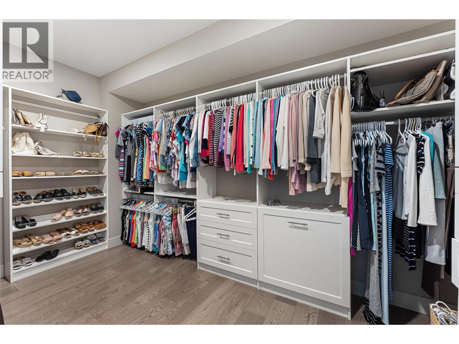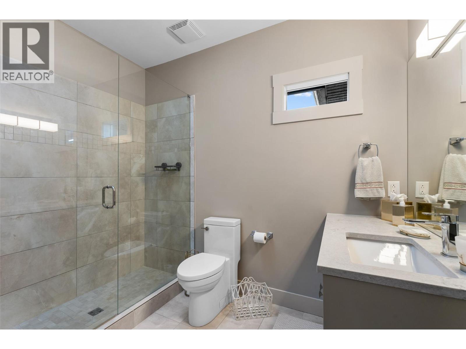 Nestled on a quiet cul de sac in a private waterfront setting, this beautiful customized residence offers a rare opportunity to experience tranquil living on the shores of Okanagan Lake. Surrounded by mature gently sloping grounds, the home blends refined design with a relaxed, resort-inspired lifestyle. Panoramic city and lake view and just minutes into town! A grand foyer with soaring ceilings, skylights and a graceful curved staircase welcomes you inside. The main living area unfolds beneath expansive windows and wall-to-wall Nano doors that open to the covered lakeside deck, creating seamless indoor-outdoor living just steps from the water. At the heart of the home, the chef’s kitchen featuring two islands, including a large L-shaped island with seating for seven, stone countertops, premium Thermador appliances and an oversized walk-in pantry. The primary retreat offers deck access, a custom walk-in closet and a spa-inspired ensuite with heated floors, a freestanding soaker tub and a fully tiled walk-in shower. Additional bedrooms on the upper level provide privacy for family and guests, including a second primary-style suite. The lower level is designed for relaxation with a spacious rec room, temp-controlled wine room, guest suite and walk-out access to the covered patio and backyard. All levels with elevator access! Outside, tiered landscaping leads to a sandy beach and a dock with boat and Seadoo lifts. Heated triple garage and generous driveway parking. (id:21321)