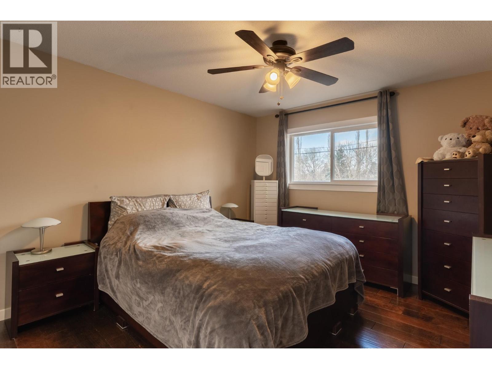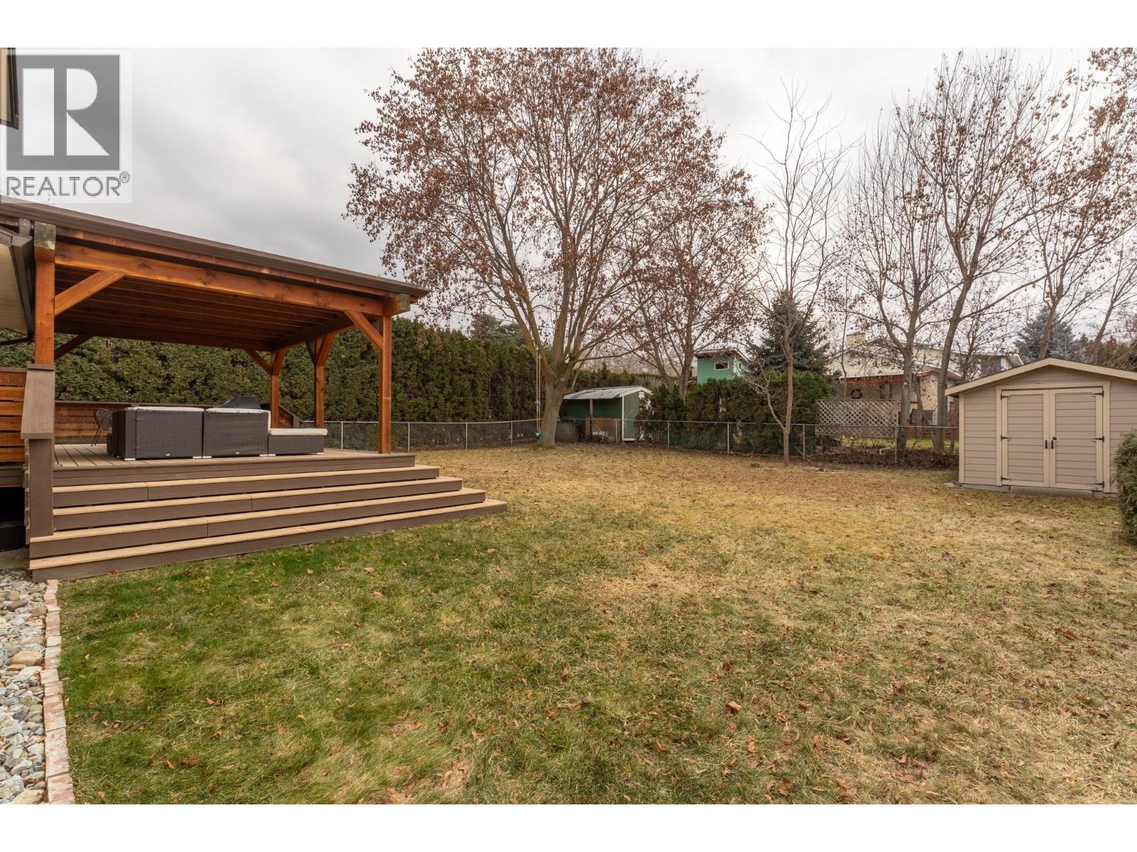 Well-maintained split-level family home offering just over 2,200 sq ft of living space in a quiet, established neighbourhood. Features include 3 bedrooms up, updated kitchen with new cabinetry, counters, renovated bathrooms, engineered hardwood flooring, and a bright main living area with vaulted ceilings and a wood-burning fireplace.The lower level includes a family room with bar, gym space, ample storage, and an in-law suite. Recent upgrades include new windows and doors (2014), furnace and A/C (2017), and partial roof replacements in 2020 and 2024. Enjoy a fully fenced backyard with RV parking, room for a pool, new covered deck, custom shed, irrigation, and excellent privacy. Walking distance to elementary school, daycare, parks, and Scotty Creek Community Park with sports courts and fields. (id:21321)