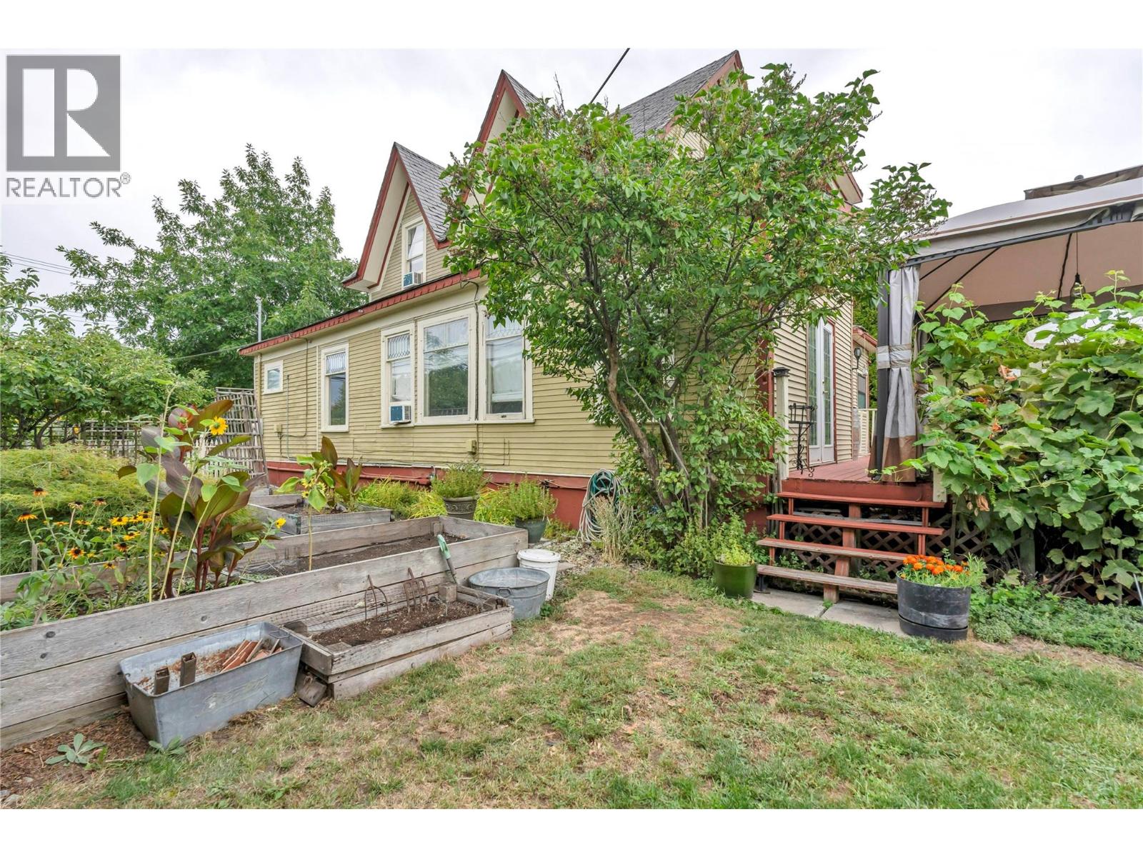 Proud to present this one of a kind home. Step into a piece of Penticton’s history with the iconic Keyes House (1912), a late Victorian residence featured on the cover of Penticton in Color Photos. This Queen Anne Revival gem showcases steeply pitched paired gables, detailed trusses, and timeless character in every room. Offering 4 bedrooms and 3 bathrooms, the home is filled with natural light, high ceilings, and period charm. The main floor hosts a flexible bedroom and bathroom, could be used as the Primary bedroom on main floor (this area previously used as a successful AirBnB), cozy living room with gas fireplace, office space, and a bright kitchen opening to the family and dining rooms. Another bathroom with shower located on main floor, next to the laundry. French doors lead to a large deck and gazebo overlooking the landscaped corner lot. Upstairs are 3 more bedrooms, a sunroom, and a full bath with clawfoot tub, plus a top-floor flex space for studio or retreat. Hot water radiant heat. The .18 acre corner property features garden boxes, mature trees, double garage with lane access, and ample parking for cars and RV's. Freshly painted areas inside and out while preserving heritage details. Excellent location 3 blocks away from the hockey rinks at the SOEC and 1 block away from Kings Field soccer complex. Located in the heart of downtown — steps to restaurants, shops, markets, and the beach — this unique home blends history with lifestyle in the best of ways. You will want to book your private showing today for this special home. Listing website https://snap.hd.pics/494-Young-St (id:21321)