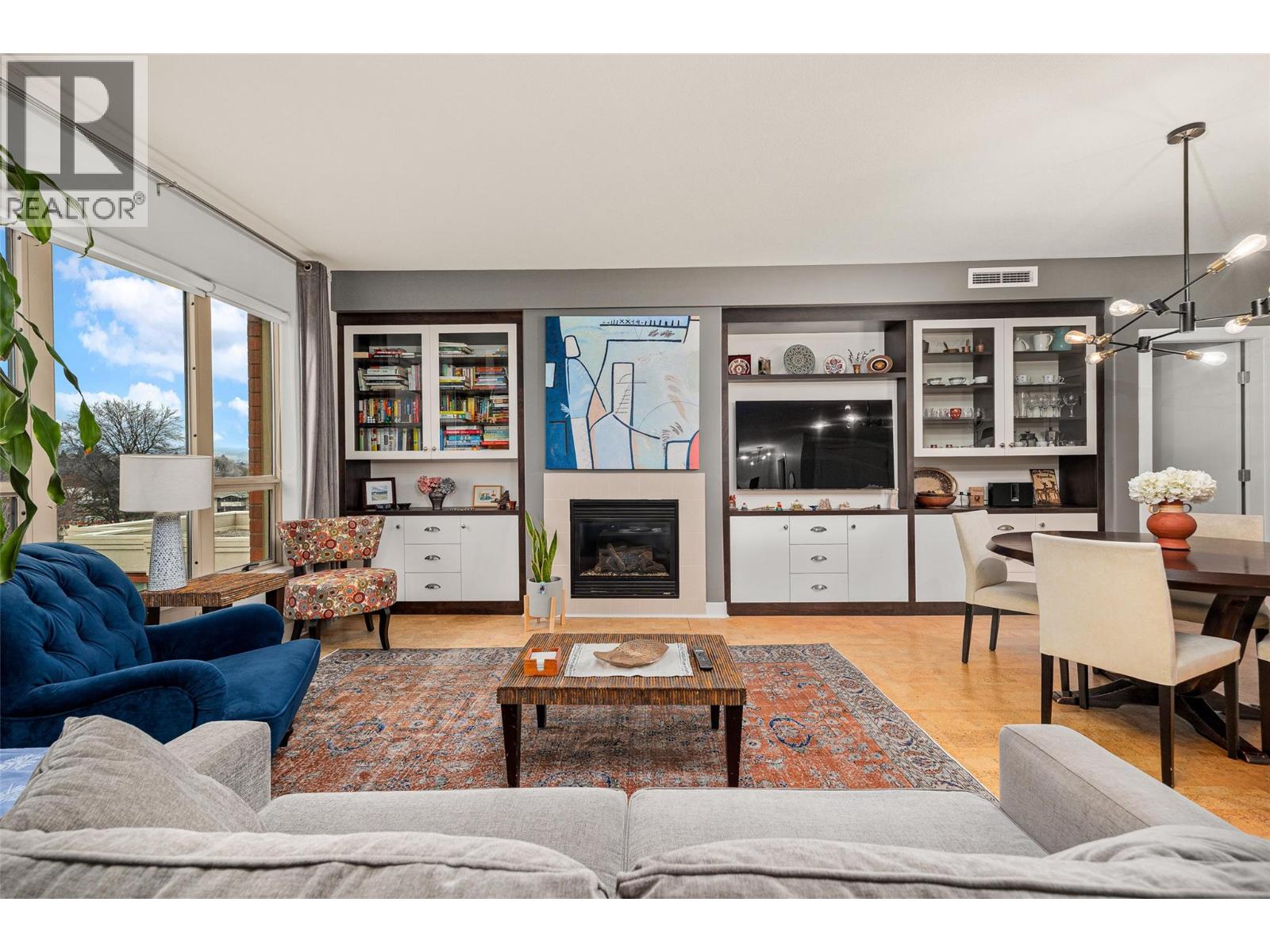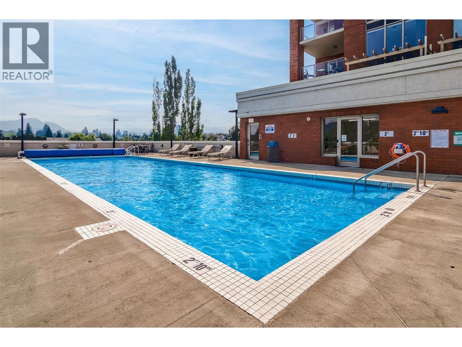 Exceptional interior space is rarely found downtown, and this 1,506 sq ft condo delivers comfort, functionality, and walkable urban living in one impressive package in Kelowna North. This 2 bed + den/ 2 bath condo features an ideal split-bedroom layout, providing excellent privacy with bedrooms, bathrooms, and walk-in closets positioned on opposite sides of the home. The open living and dining area is anchored by a custom wall-to-wall entertainment centre, while updated scratch- and sound-proof vinyl flooring adds durability throughout the bedrooms. Located on the quiet, east-facing side of the building, the home enjoys peaceful mountain views and a comfortable patio ideally away from traffic and major intersections. Additional upgrades include custom closet cabinetry, built-in foyer storage, updated lighting, newer paint through out, a quiet Bosch dishwasher, and a newer washer and dryer. The home includes TWO covered parking stalls and a storage locker, along with resort-style strata amenities including a 60’ outdoor pool, hot tub, sauna, steam room, and gym. Set in the Centuria Urban Village building, you’re steps to downtown restaurants, cafes, beaches, fitness studios, public transit, a grocery store within the complex and so much more. This is downtown condo living without compromise. Contact us today & book your private showing today, this one won’t last long! (id:21321)