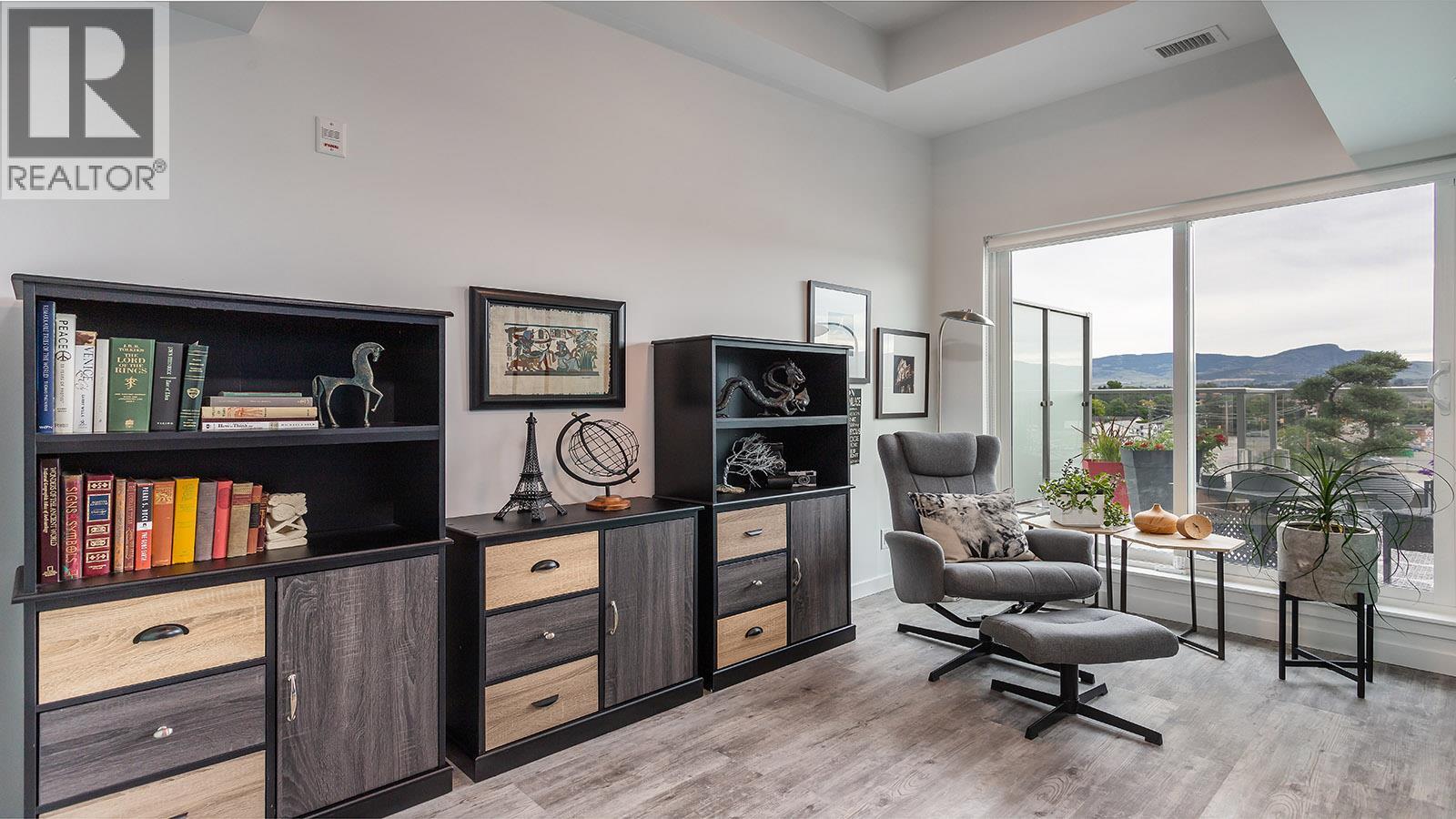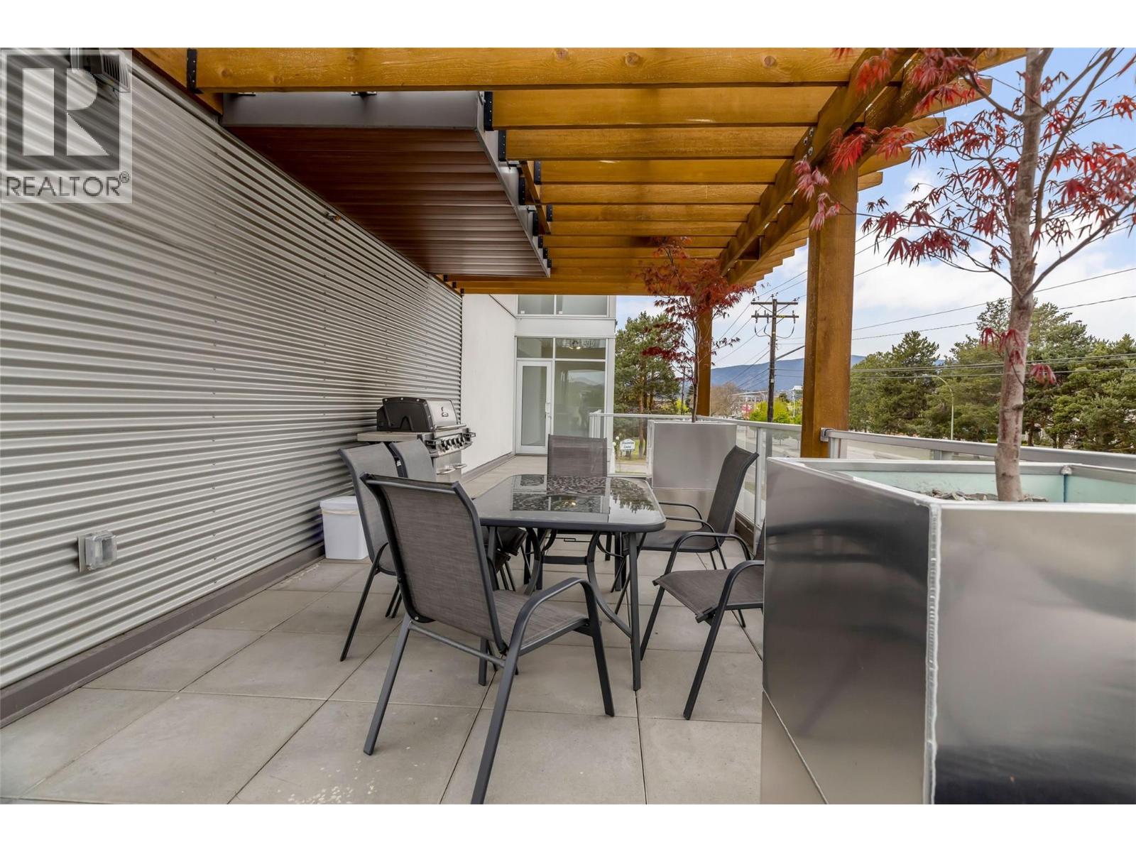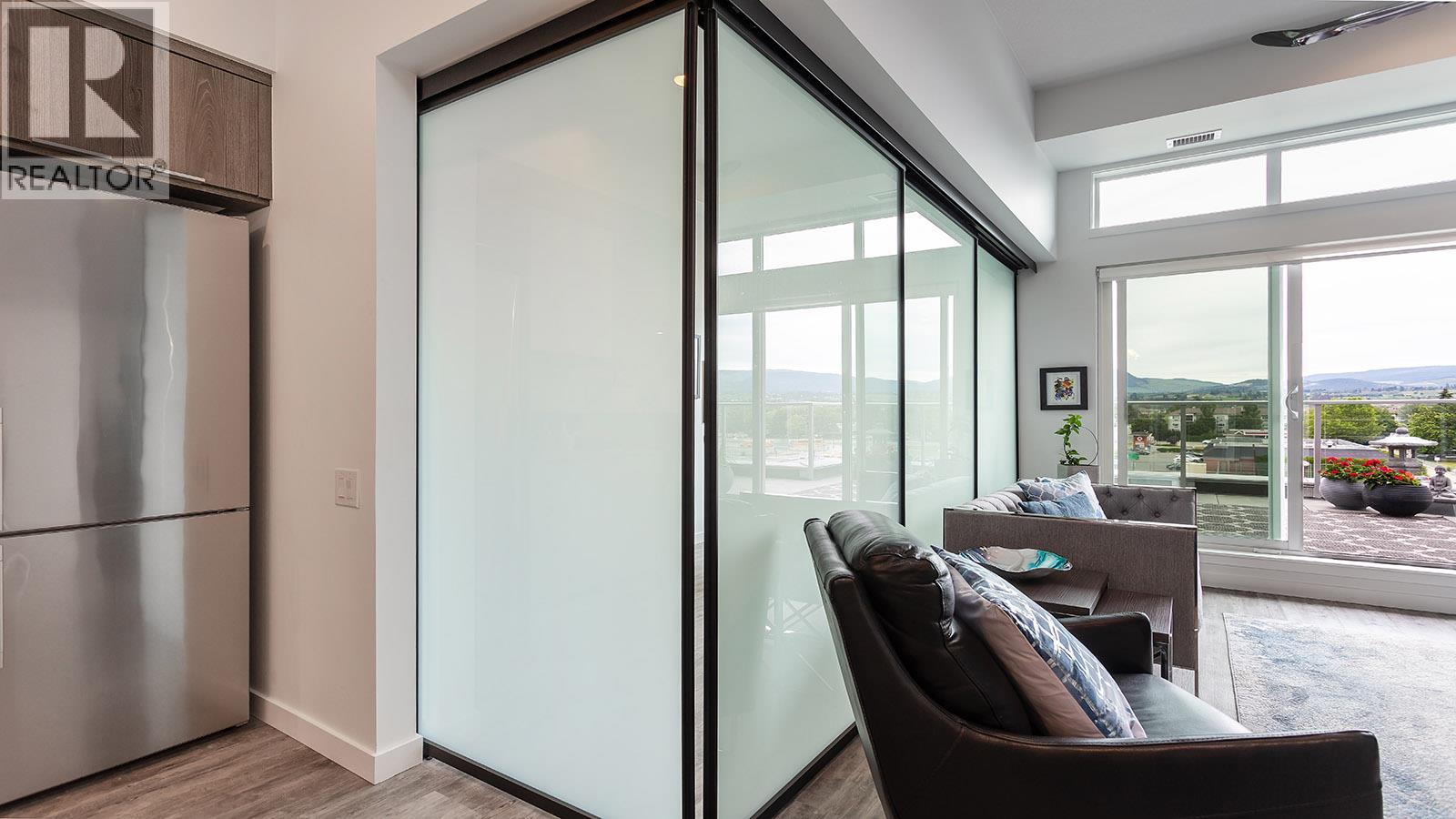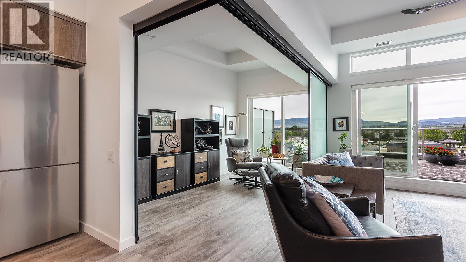 Welcome to SOLE on KLO — a bright, contemporary retreat perfectly positioned in the heart of the Lower Mission. This 1 bedroom + den, 1 bathroom residence offers effortless modern living with a rare nearly 300 sq. ft. outdoor terrace capturing expansive east-facing mountain views and gentle morning light. Inside, an open-concept layout is enhanced by sleek finishes, including quartz countertops, stainless steel appliances, modern cabinetry, and durable vinyl plank flooring. The spacious den provides valuable flexibility, easily functioning as a second sleeping area with room for a queen Murphy bed, ideal for guests or hybrid living needs. The bedroom is paired with a well-appointed bath featuring clean, modern lines and a glass-enclosed shower. Large windows and sliding doors draw natural light throughout the home while seamlessly connecting the interior living space to the oversized terrace, perfect for outdoor dining, relaxing, and taking in the panoramic landscape. Additional features include in-suite laundry and a generously sized parking stall. Located directly across from Okanagan College and moments from the boutiques, cafes, and waterfront pathways of Pandosy Village, this residence offers exceptional walkability and a vibrant urban lifestyle. (id:21321)
