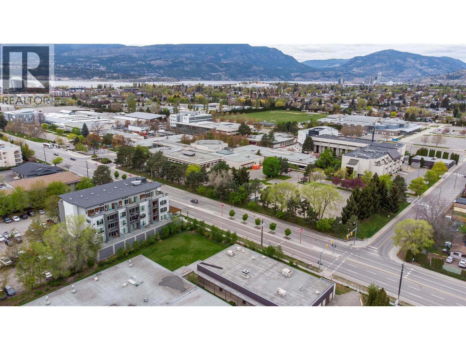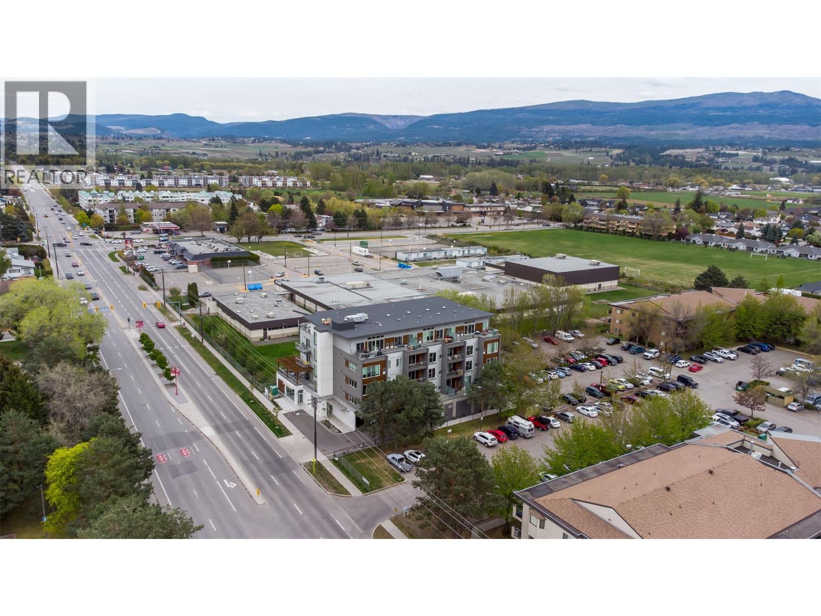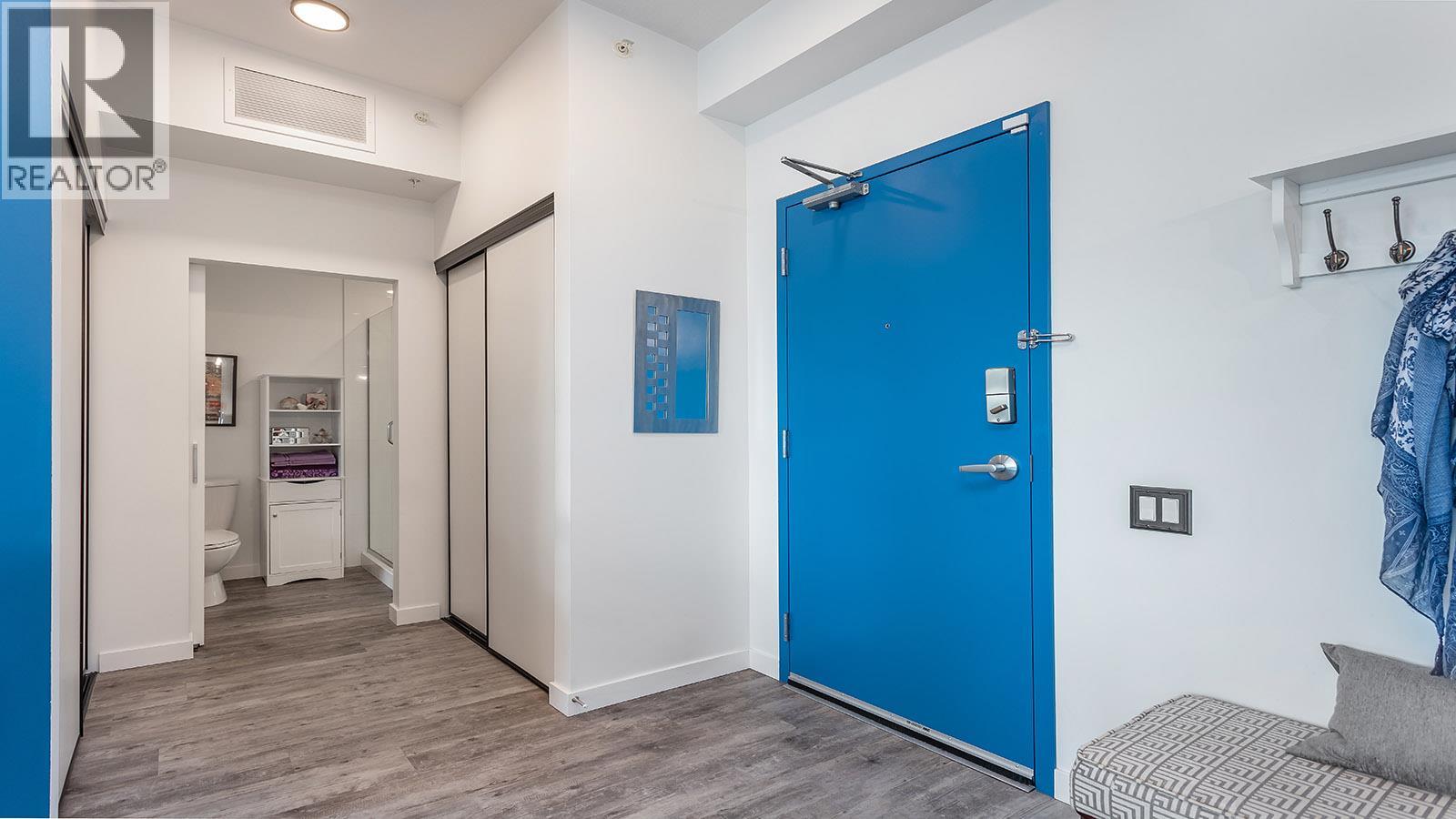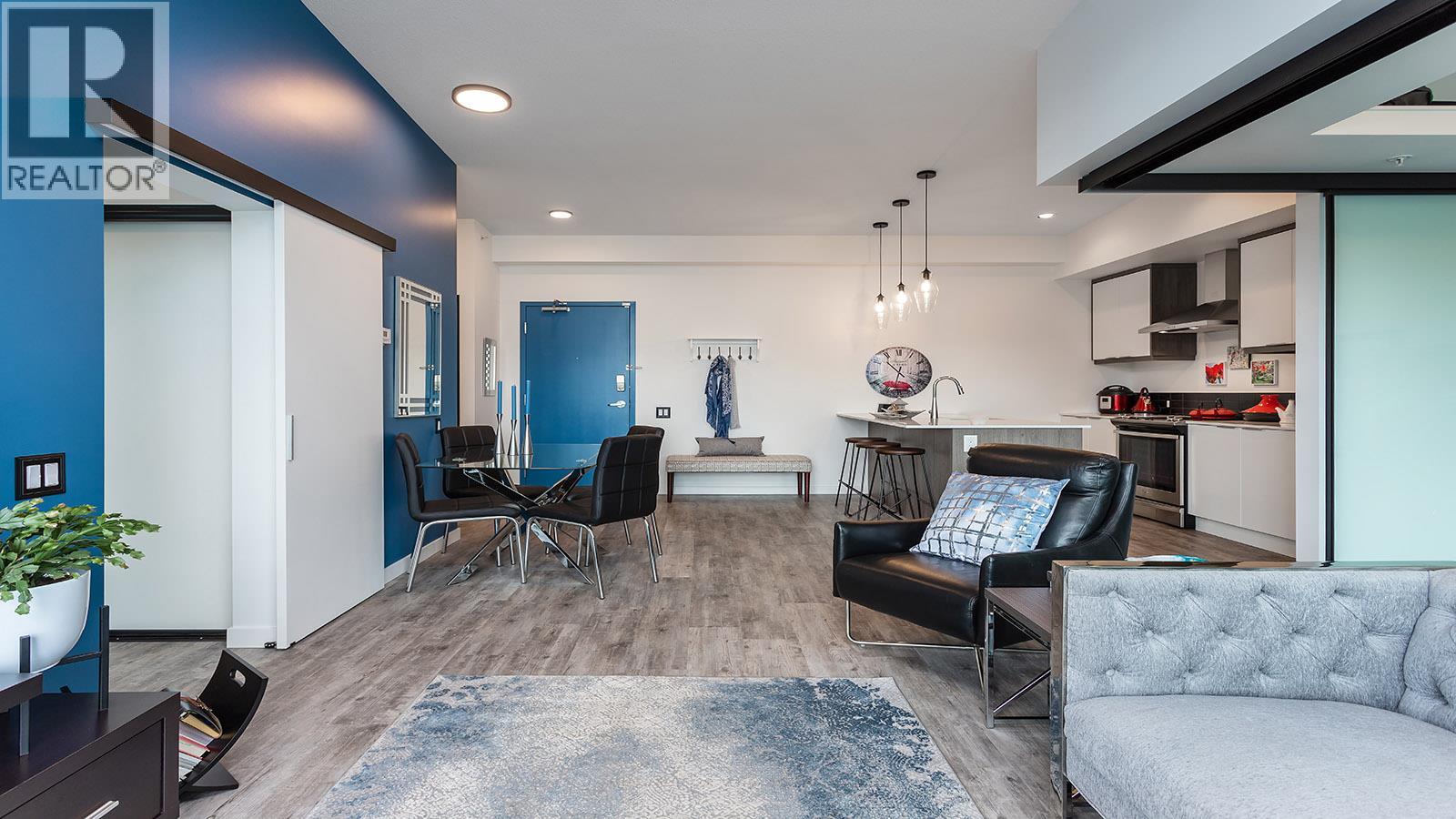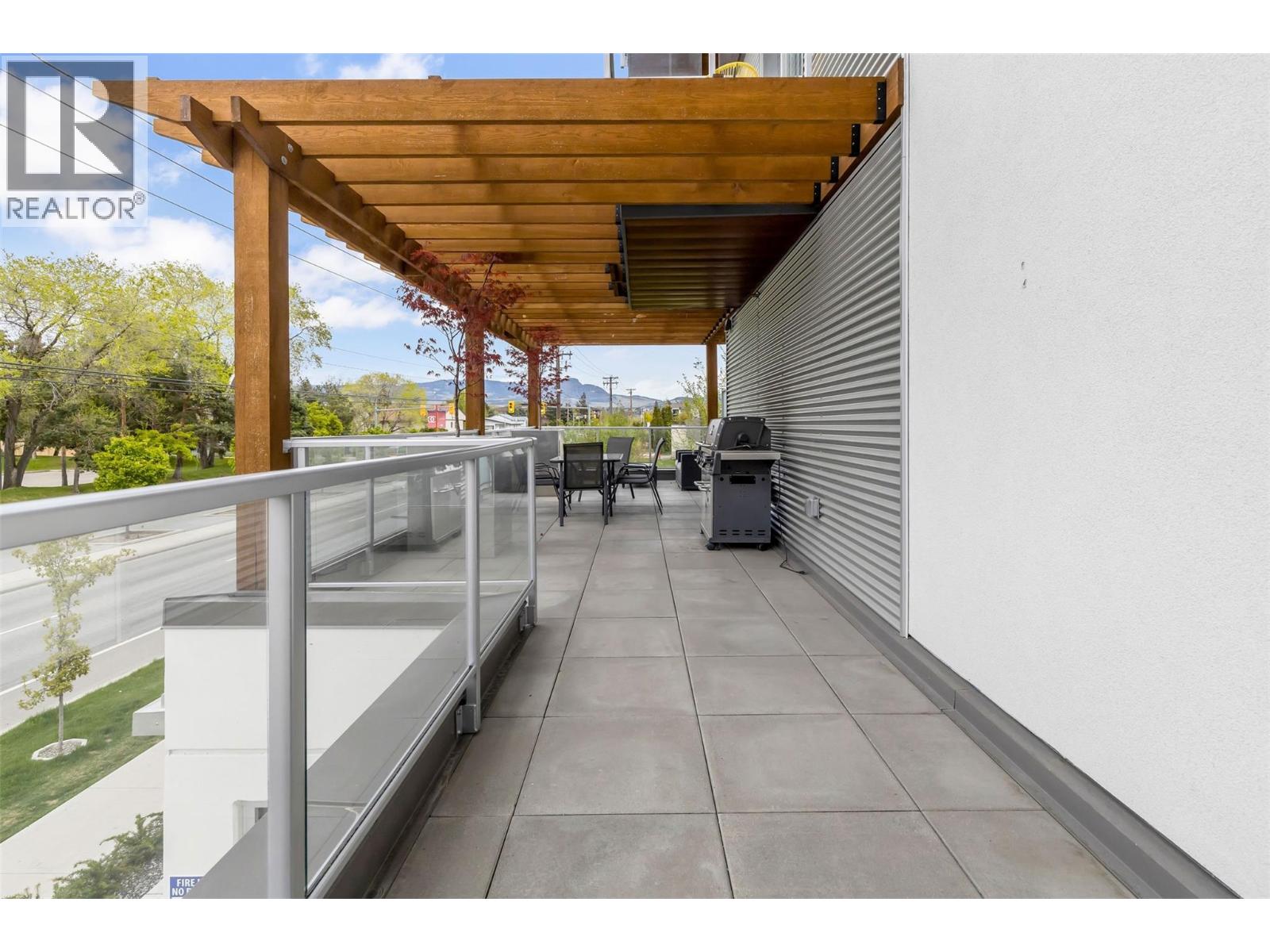 Welcome to SOLE on KLO — a bright, contemporary retreat perfectly positioned in the heart of the Lower Mission. This 1 bedroom + den, 1 bathroom residence offers effortless modern living with a rare nearly 300 sq. ft. outdoor terrace capturing expansive east-facing mountain views and gentle morning light. Inside, an open-concept layout is enhanced by sleek finishes, including quartz countertops, stainless steel appliances, modern cabinetry, and durable vinyl plank flooring. The spacious den provides valuable flexibility, easily functioning as a second sleeping area with room for a queen Murphy bed, ideal for guests or hybrid living needs. The bedroom is paired with a well-appointed bath featuring clean, modern lines and a glass-enclosed shower. Large windows and sliding doors draw natural light throughout the home while seamlessly connecting the interior living space to the oversized terrace, perfect for outdoor dining, relaxing, and taking in the panoramic landscape. Additional features include in-suite laundry and a generously sized parking stall. Located directly across from Okanagan College and moments from the boutiques, cafes, and waterfront pathways of Pandosy Village, this residence offers exceptional walkability and a vibrant urban lifestyle. (id:21321)