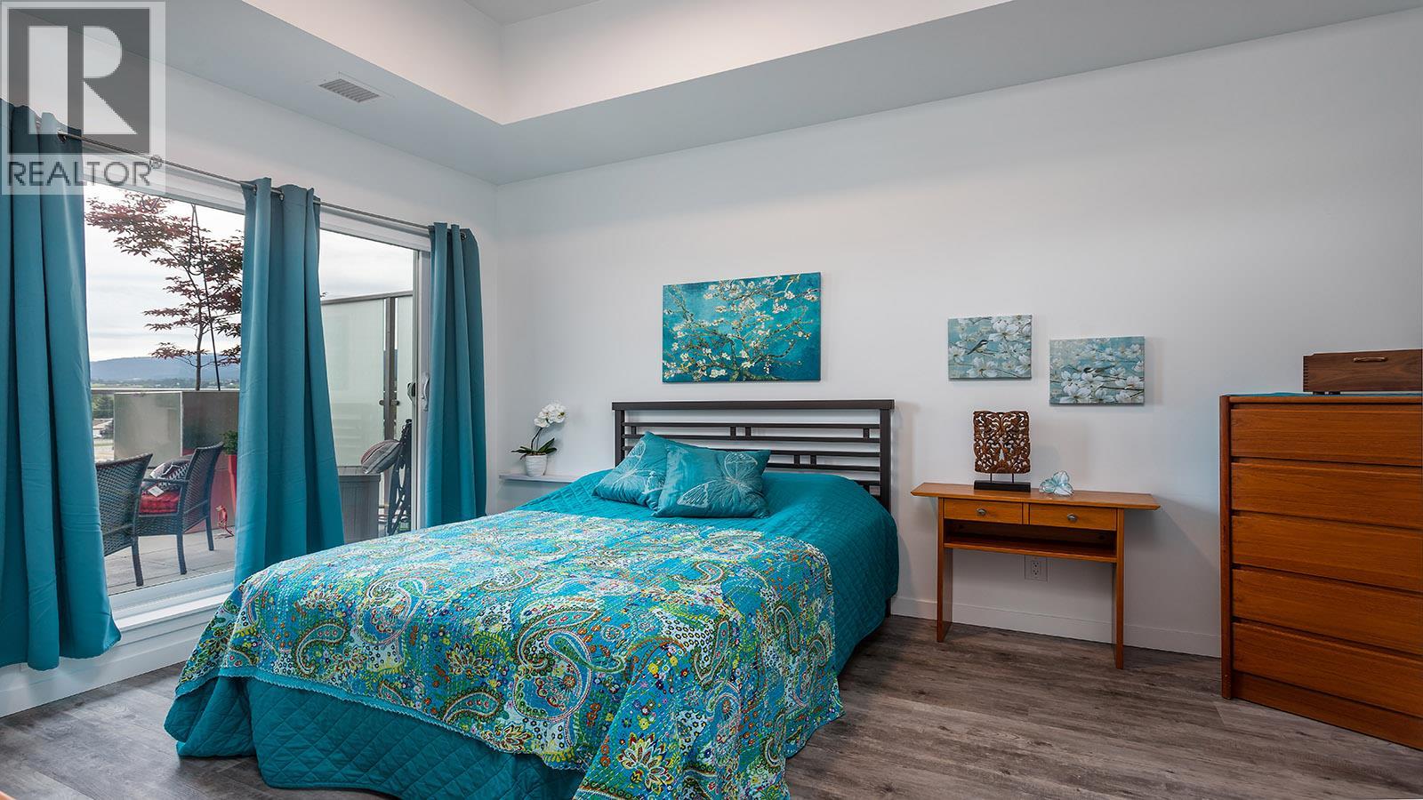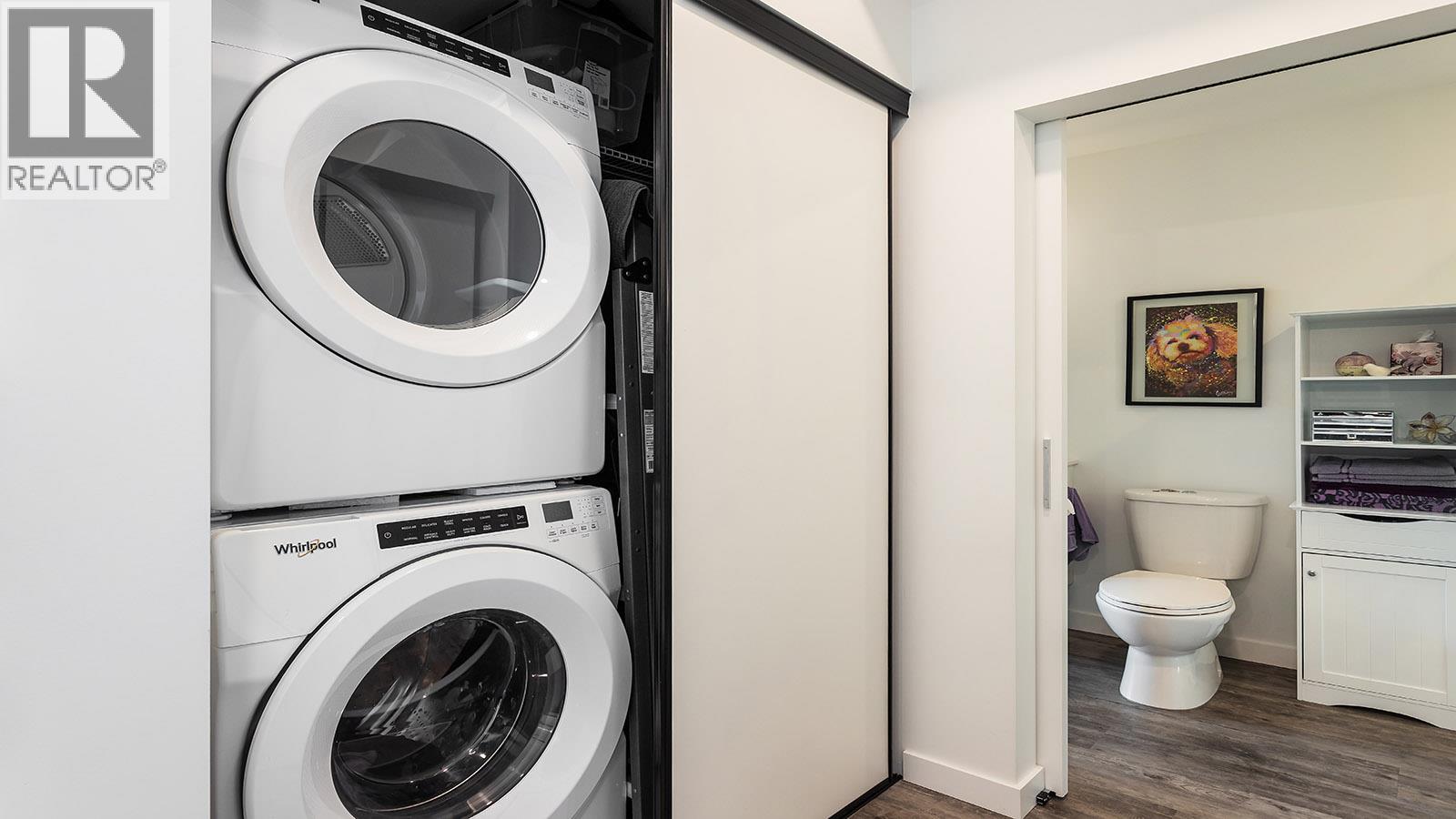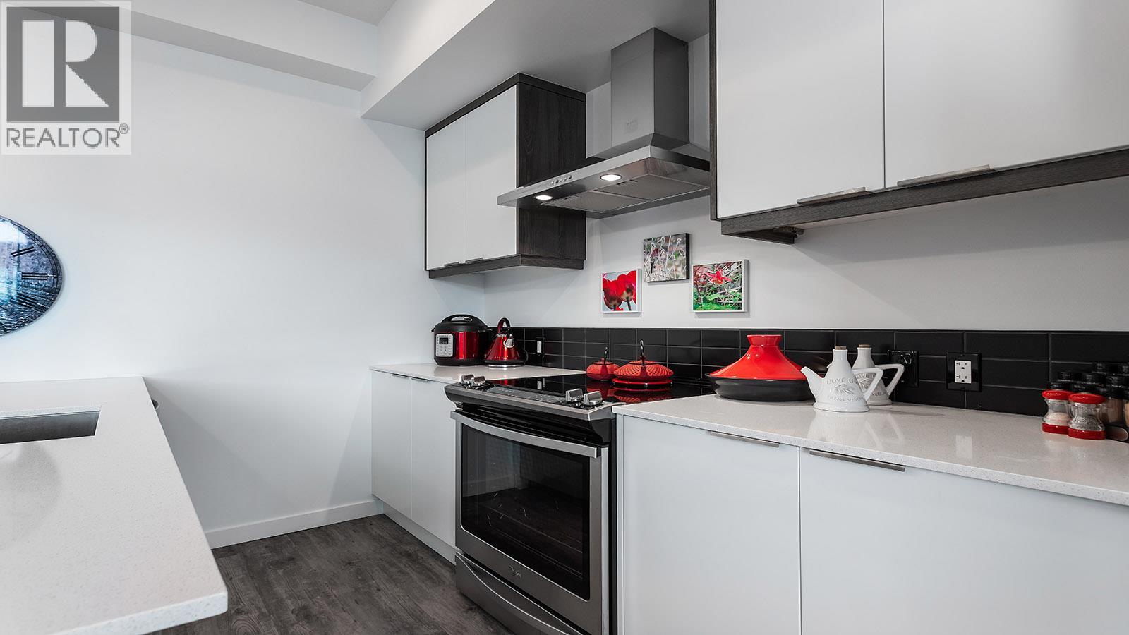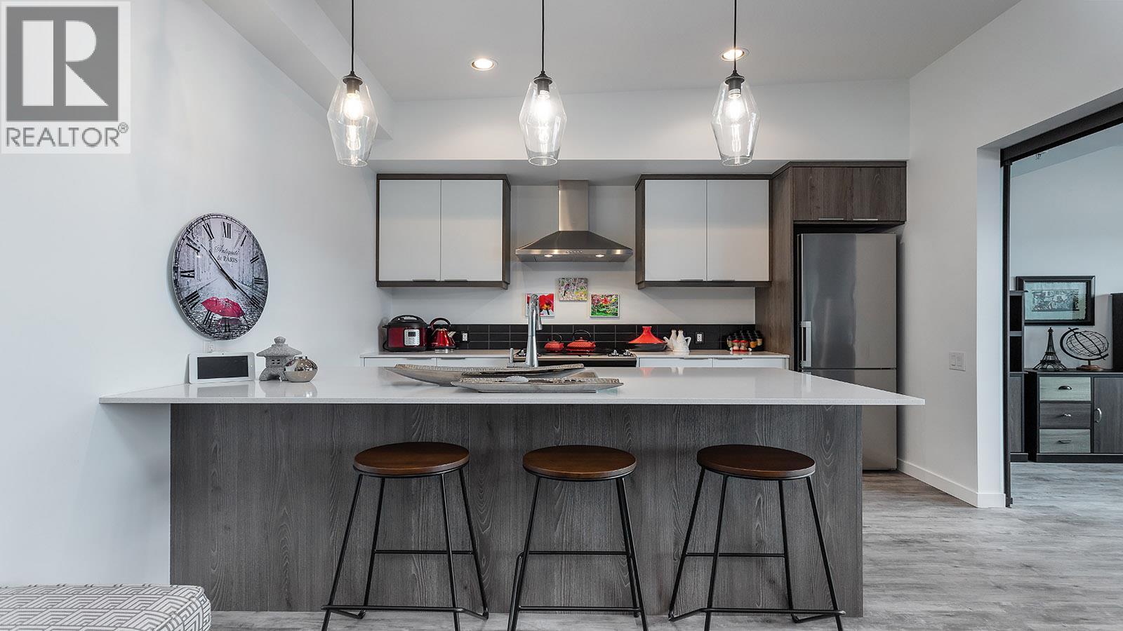 Welcome to SOLE on KLO — a bright, contemporary retreat perfectly positioned in the heart of the Lower Mission. This 1 bedroom + den, 1 bathroom residence offers effortless modern living with a rare nearly 300 sq. ft. outdoor terrace capturing expansive east-facing mountain views and gentle morning light. Inside, an open-concept layout is enhanced by sleek finishes, including quartz countertops, stainless steel appliances, modern cabinetry, and durable vinyl plank flooring. The spacious den provides valuable flexibility, easily functioning as a second sleeping area with room for a queen Murphy bed, ideal for guests or hybrid living needs. The bedroom is paired with a well-appointed bath featuring clean, modern lines and a glass-enclosed shower. Large windows and sliding doors draw natural light throughout the home while seamlessly connecting the interior living space to the oversized terrace, perfect for outdoor dining, relaxing, and taking in the panoramic landscape. Additional features include in-suite laundry and a generously sized parking stall. Located directly across from Okanagan College and moments from the boutiques, cafes, and waterfront pathways of Pandosy Village, this residence offers exceptional walkability and a vibrant urban lifestyle. (id:21321)