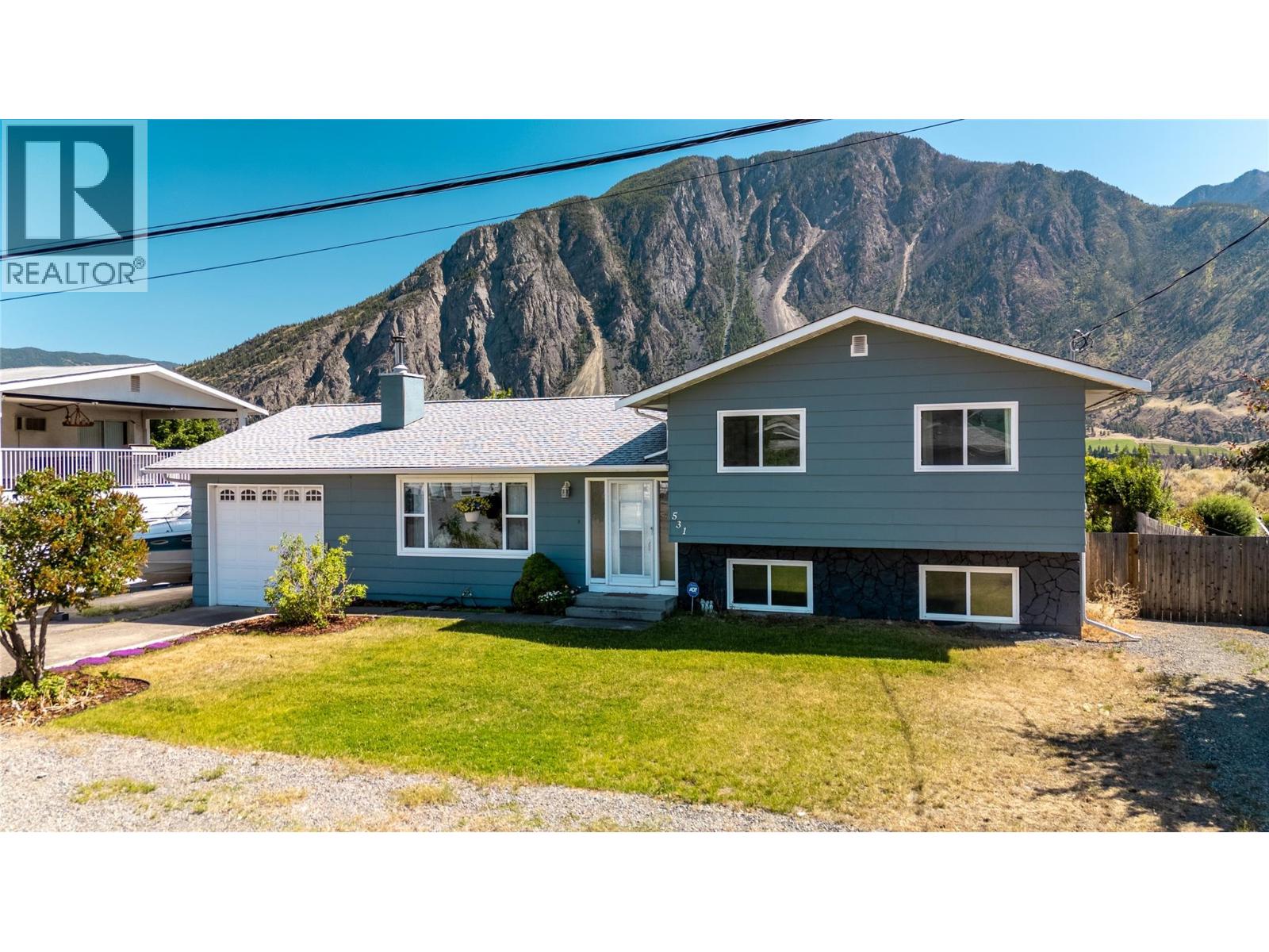 Discover the slower pace of Keremeos! Framed by mountain views, this quarter-acre property offers the perfect blend of comfort, convenience, and small-town charm—just 30 minutes from Penticton. This updated 4-bed, 3-bath home is truly move-in ready with fresh paint, new lighting, new flooring and baseboards. The kitchen shines with pot lights, refreshed countertops, and modern cupboard hardware, while both bathrooms, including the ensuite, have been tastefully updated. Enjoy year-round living in the fully enclosed 400 sq ft covered patio, complete with a new door and backyard access. Newly installed backyard irrigation will make the yard easy to maintain a beautiful green space next spring. A single garage with shop extension and rough-in wiring provide excellent space for hobbies, or projects. Explore local wineries, fresh farm stands, and vibrant markets, float down the Similkameen River, or hike the trails of Cathedral Lakes. If you’ve been looking for an updated home in a friendly community, this one checks all the boxes. Measurements approximate. Book your showing today! (id:21321)