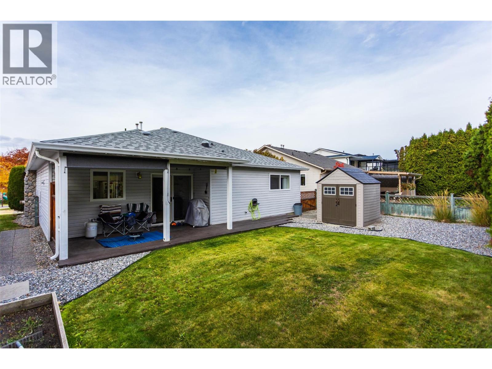 Welcome to the desirable Country Rhodes family community!!!! This spacious rancher features a bright kitchen with nook, open flow dining and living room areas great for entertaining, large windows which bring in lots of natural light. Two larger bedrooms, laundry room and two bathrooms... all on one main floor living!! Sliding glass doors welcome you to your private patio area with fully fenced landscaped back yard. Room for garden area and storage shed. Central air, gas fireplace, covered front porch overlooking the large park area, 4ft full basement crawl space, gutters, roof, appliances, garage door, washer/dryer, water softener...you name it!!.. and double garage. Amenities include inground outdoor pool, large park, playground, clubhouse with kitchen great for those large gatherings. RV/boat parking based on availability. Just minutes to Kelowna International Airport, UBCO, golf courses, Kangaroo farm, shopping, schools and so much more! No age restrictions. 2 pets (dogs or cats) per household - no size restrictions. A must see!! (id:21321)