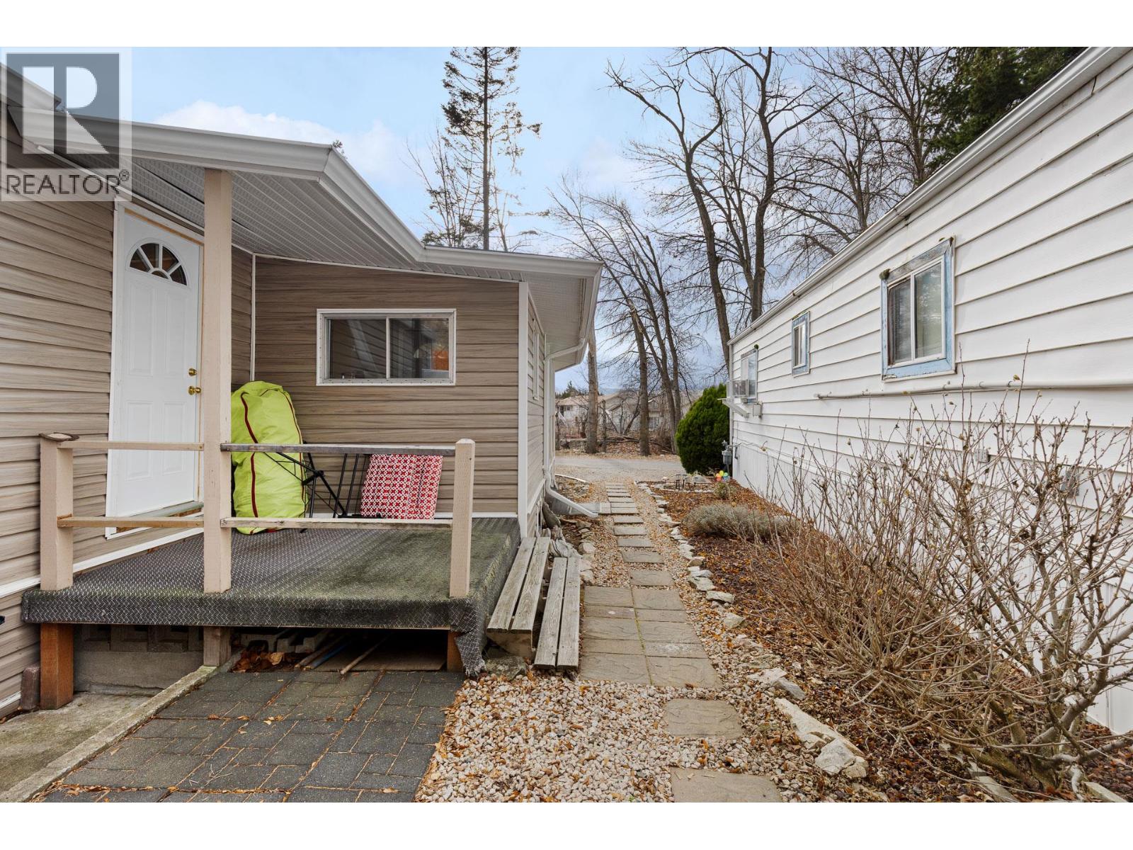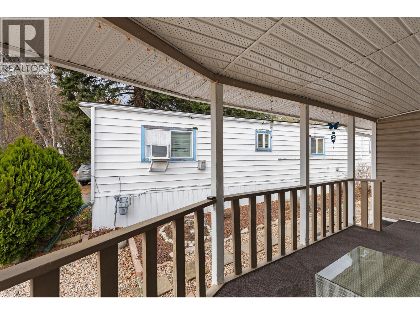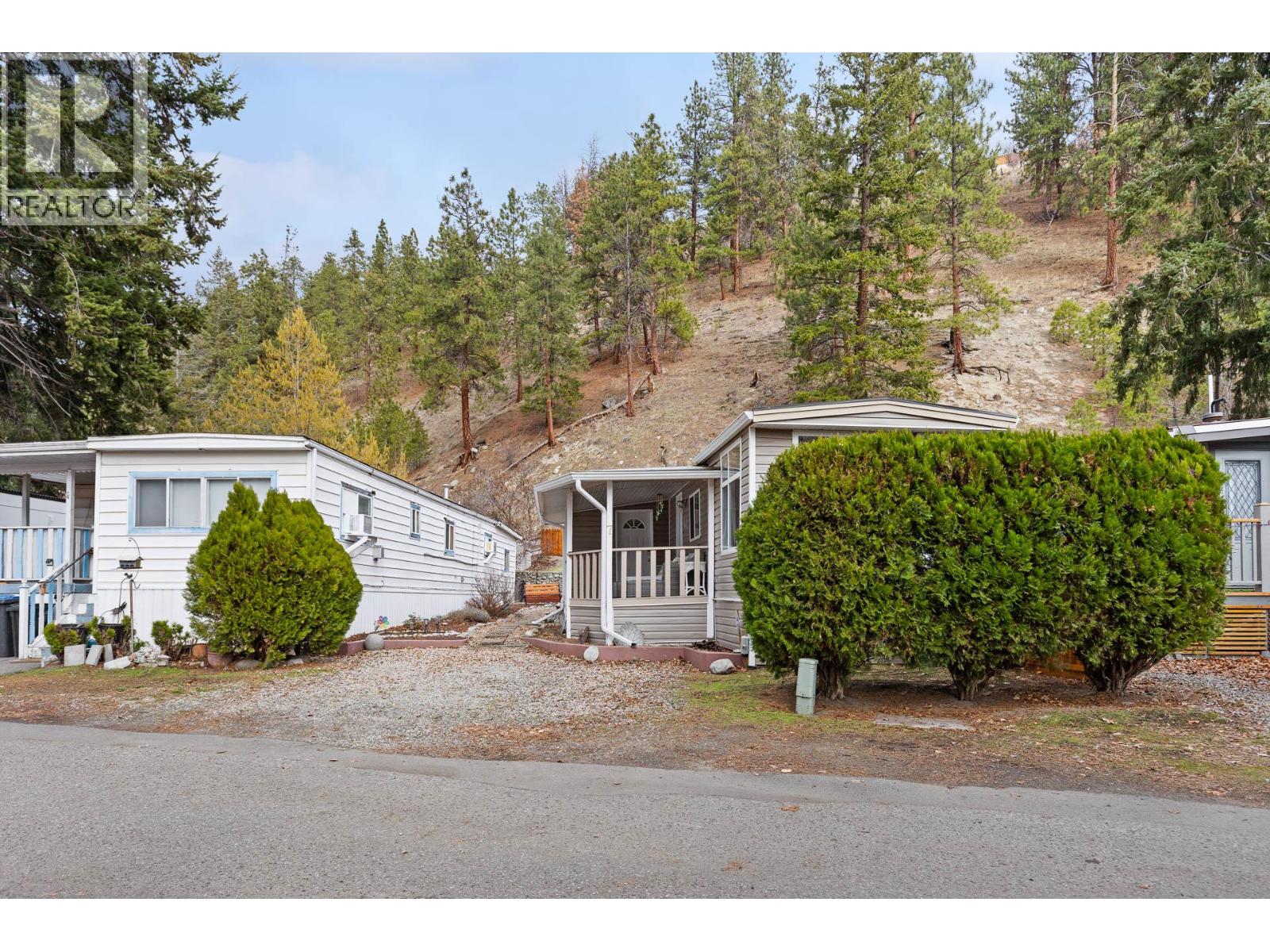 Welcome to a truly special opportunity in the heart of Peachland—recently nominated as Canada’s Kindest Community by Coca-Cola. This charming 1 bedroom, 1 bathroom single-wide mobile home (709 sq ft) is all about lifestyle, location, and serenity. Step inside and you’ll immediately notice the abundance of windows, filling the home with natural light and highlighting its cozy, welcoming character. Outside, the magic continues with a large covered deck overlooking Trepanier Creek—the perfect spot to enjoy your morning coffee, listen to the flowing water, or unwind at the end of the day. Tucked away at the bottom of the mountain on a quiet no-thru road, this home offers an incredibly private and peaceful setting, yet you’re just steps from the Peachland Mall, complete with shops, services, transit, and everyday amenities. From here, it’s an easy walk to Okanagan Lake, the pickleball courts, and all that vibrant Peachland has to offer. Located in a well-maintained 55+ community, this property is ideal for those looking to simplify without sacrificing convenience. One small pet is allowed, and you’ll appreciate the bonus of two parking spaces. This is more than a home—it’s a lifestyle surrounded by nature, community, and walkable amenities. The setting is absolutely serene and truly must be seen to be appreciated. Homes like this, in locations like this, don’t come along often. (id:21321)