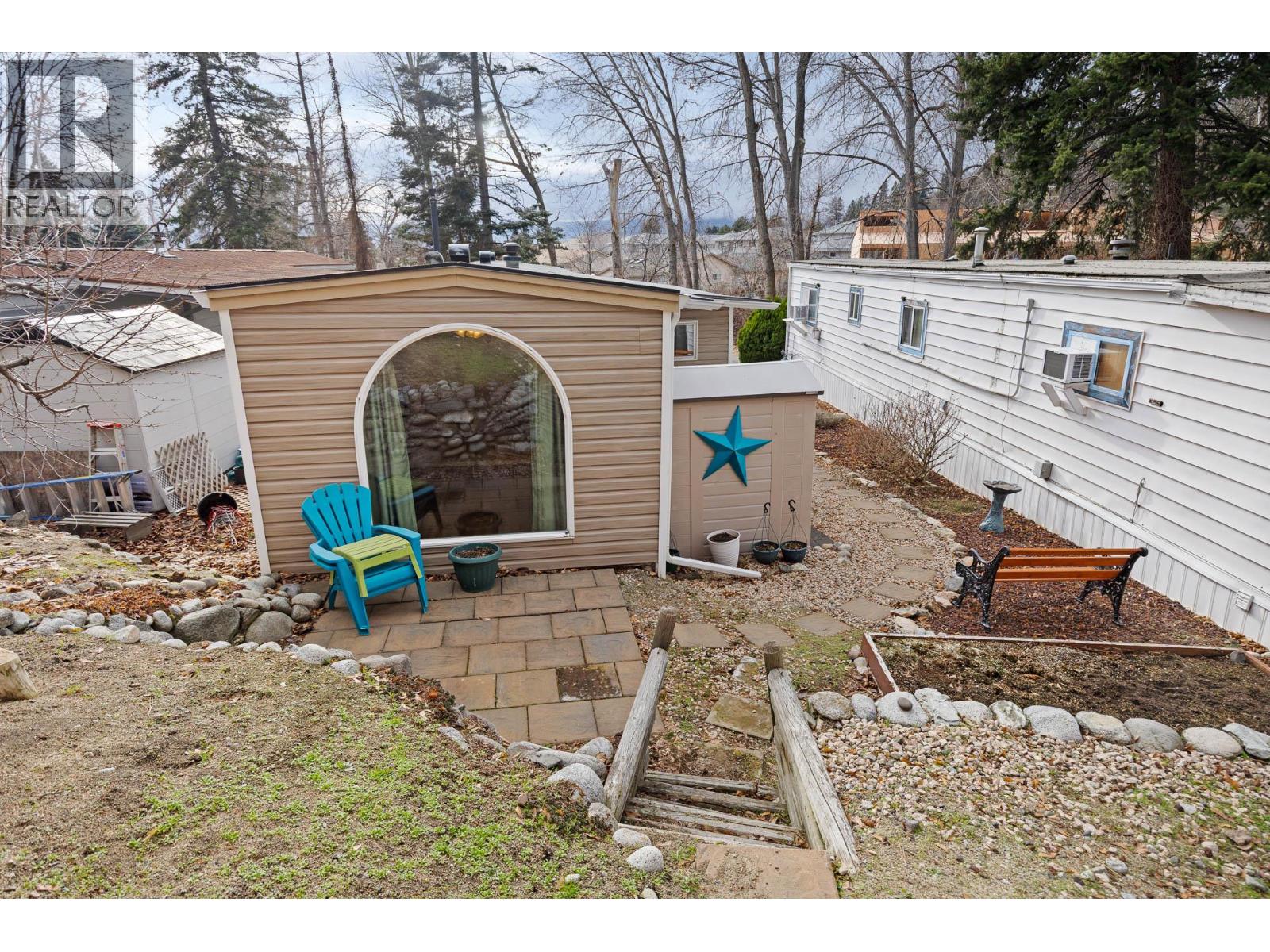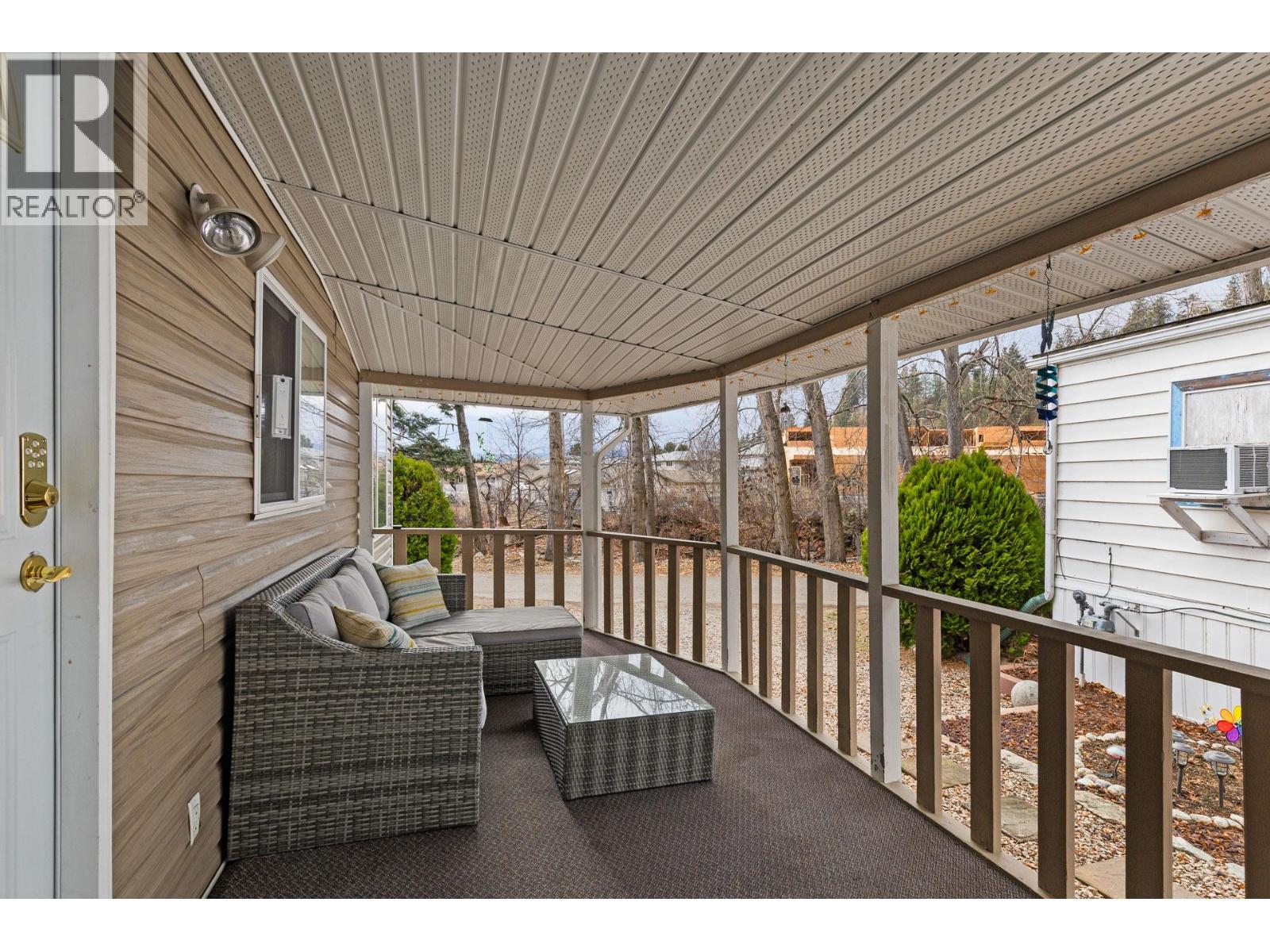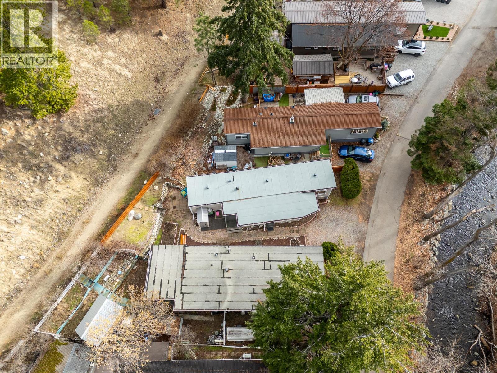 Welcome to a truly special opportunity in the heart of Peachland—recently nominated as Canada’s Kindest Community by Coca-Cola. This charming 1 bedroom, 1 bathroom single-wide mobile home (709 sq ft) is all about lifestyle, location, and serenity. Step inside and you’ll immediately notice the abundance of windows, filling the home with natural light and highlighting its cozy, welcoming character. Outside, the magic continues with a large covered deck overlooking Trepanier Creek—the perfect spot to enjoy your morning coffee, listen to the flowing water, or unwind at the end of the day. Tucked away at the bottom of the mountain on a quiet no-thru road, this home offers an incredibly private and peaceful setting, yet you’re just steps from the Peachland Mall, complete with shops, services, transit, and everyday amenities. From here, it’s an easy walk to Okanagan Lake, the pickleball courts, and all that vibrant Peachland has to offer. Located in a well-maintained 55+ community, this property is ideal for those looking to simplify without sacrificing convenience. One small pet is allowed, and you’ll appreciate the bonus of two parking spaces. This is more than a home—it’s a lifestyle surrounded by nature, community, and walkable amenities. The setting is absolutely serene and truly must be seen to be appreciated. Homes like this, in locations like this, don’t come along often. (id:21321)
