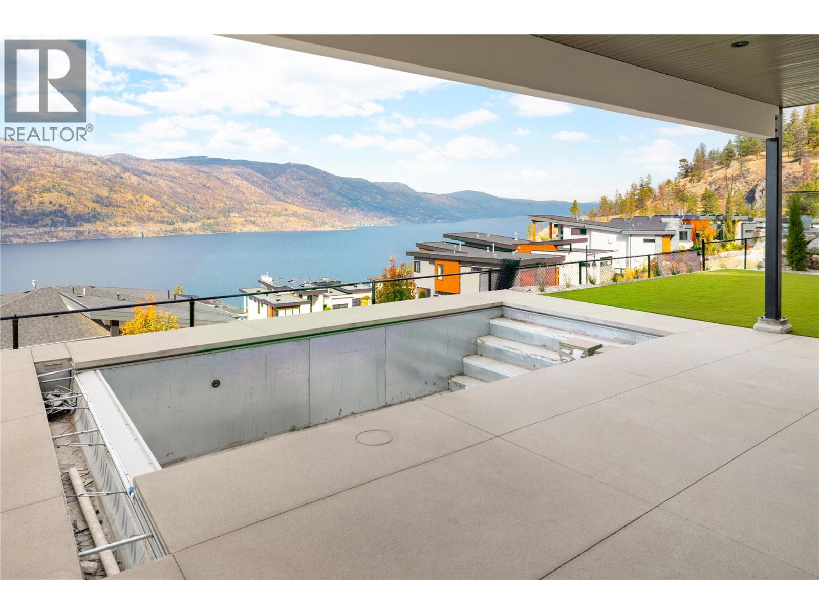 Stunning lake views from this nearly completed home on the most private street in North Clifton Estates. This 4110 square foot luxury home features a salt water pool with an auto cover, yard space, a 2.5 car garage, plus driveway space for 2 cars. Enjoy the quiet location beside the mountain with endless hiking trails, and yet still be only an 8 minute drive to Kelowna's lively downtown core. Featuring 4 bedrooms, 3.5 bathrooms and an office, this home will be open concept and have a modern organic feel. The home will have a climate controlled wine room, 2 fireplaces with custom finishes, soaring ceilings and hardwood floors on the main level. Extra luxuries include built in speakers, a security system, epoxy floors in the garage and a 2 zoned heating and cooling system. Professional landscaping will include a fenced yard, with room for garden boxes or extra space for the dogs and kids, and low maintenance, irrigated plantings with syn lawn- which means no mowing:) (id:21321)
