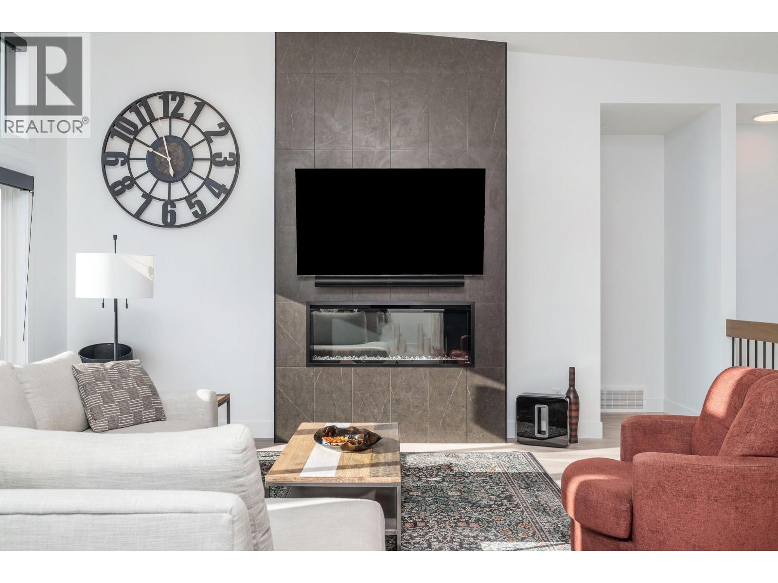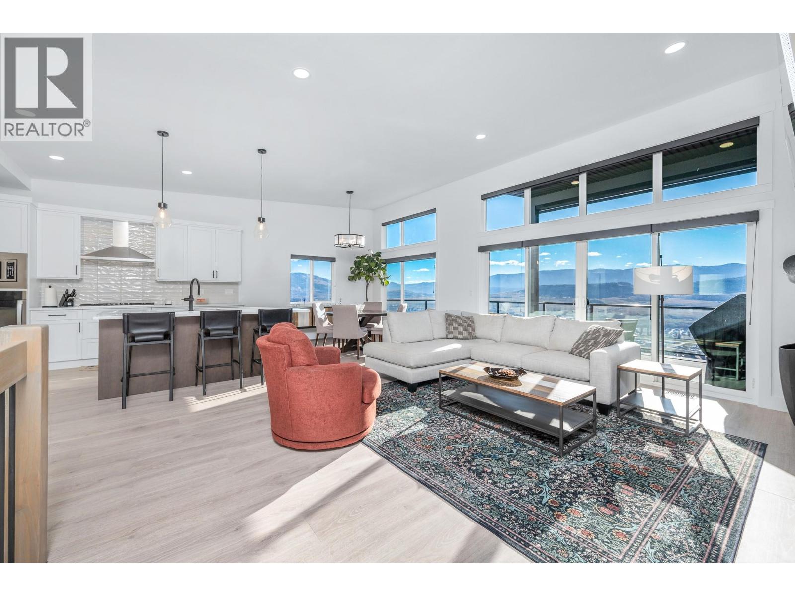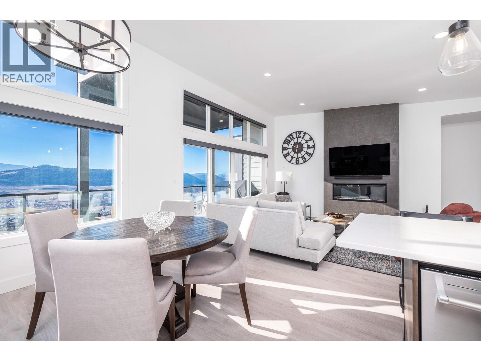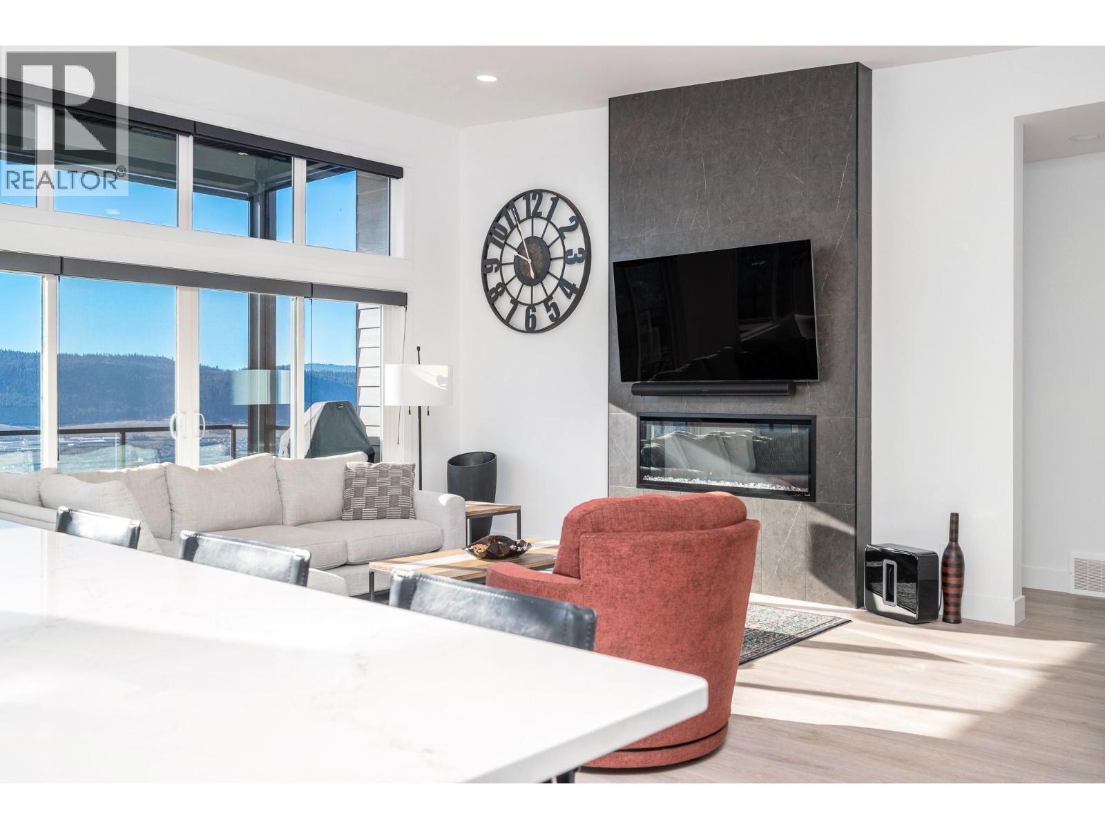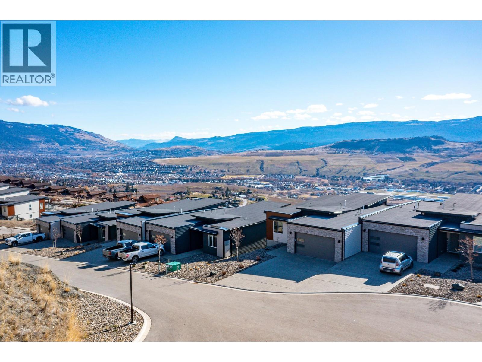 Spectacular 24-hour view! Panoramic valley and Okanagan Lake during the day and mesmerizing City of Vernon lights glittering at night. Located on a quiet cul-de-sac of only 10 homes, this townhome unit is perfect for an effortless lifestyle whether you are downsizing or just busy! The level entry main floor is designed for everyday convenience including open floor plan, primary suite & ensuite with heated floors plus second bedroom and bath and laundry! The great room includes a fabulous kitchen with quartz counters, huge island, butler’s pantry and high-end appliances! The walk-out lower offers 2 generous bedrooms, full bath, family room and loads of storage – perfect for family or guests! Nearly brand new with many thoughtful custom features through out! Soft white palette throughout enhances the view from the walls of windows and lofty ceilings on both levels! Full length, partially covered deck with automatic solar screens for sun and breezes. Full length covered patio that flows to the private greenscaped back yard. Many custom features! Vinyl flooring, all quartz counters, quality lighting, automated custom window blinds, hot water on demand, deep driveway and garage that will fit your truck! Scoot up to the Rise Golf Course and stop at The Edge restaurant for happy hour! (id:21321)