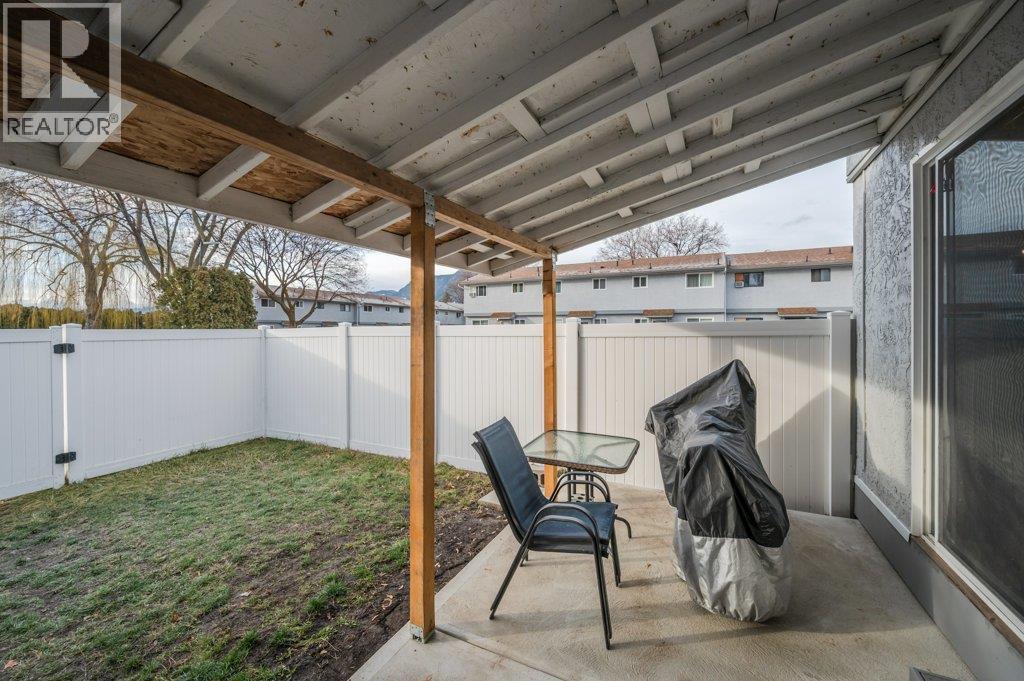 This well-maintained two-storey end-unit townhome is located in the desirable Chateau Village, a family-friendly complex close to schools, shopping, Skaha Lake, and nearby parks. The main floor offers an open-concept kitchen and living area, convenient main-floor laundry, a 2-piece bathroom with added storage, and a utility room. Step outside to a covered patio and fully fenced backyard, perfect for kids, pets, or relaxing outdoors. Upstairs you’ll find three bedrooms and a full 4-piece bathroom. One parking space is located directly in front of the unit, with pets allowed (with restrictions) and no age restrictions, making this a fantastic opportunity for families, first-time buyers, or investors alike. Contact the listing agent to view! (id:21321)