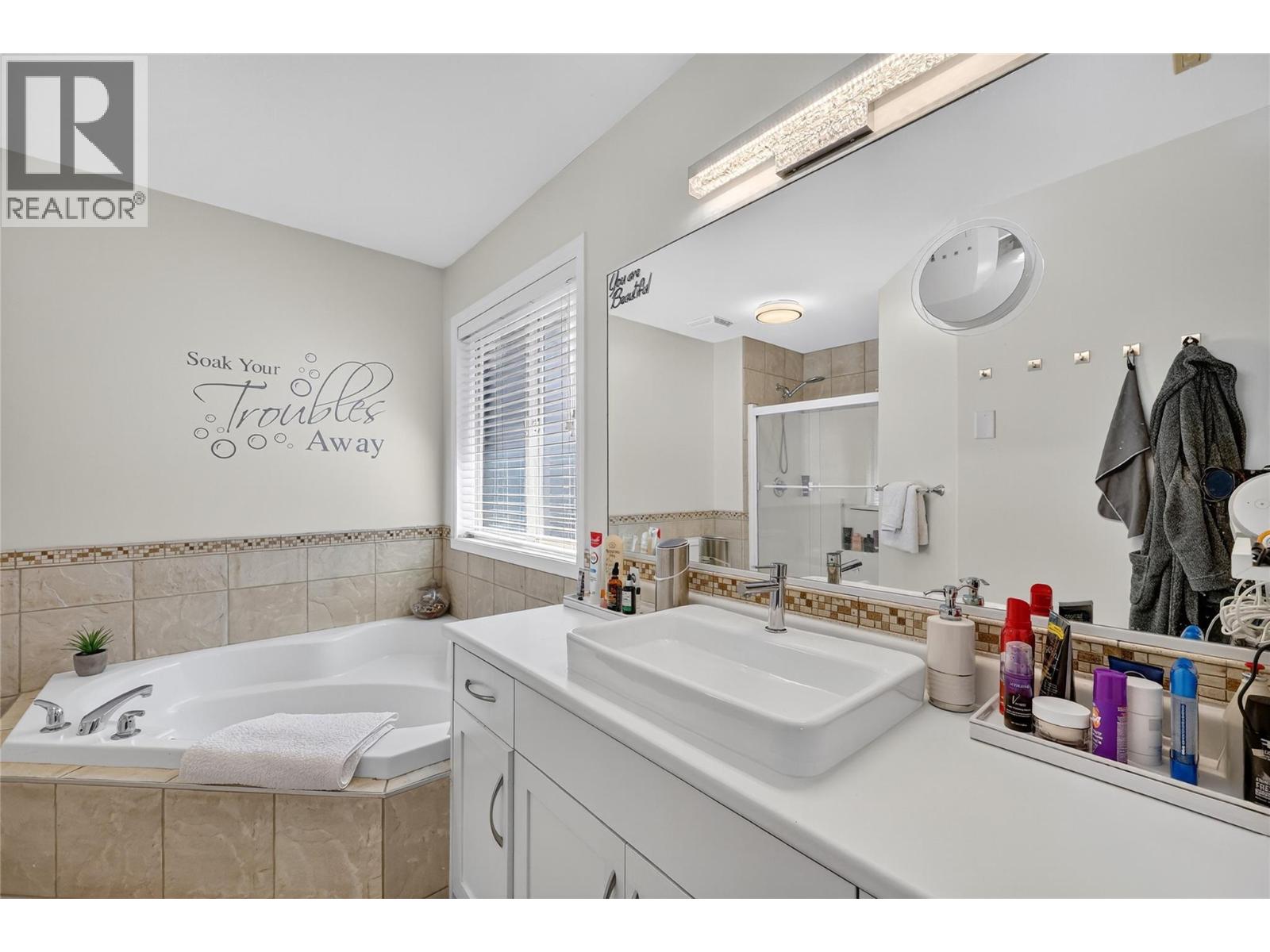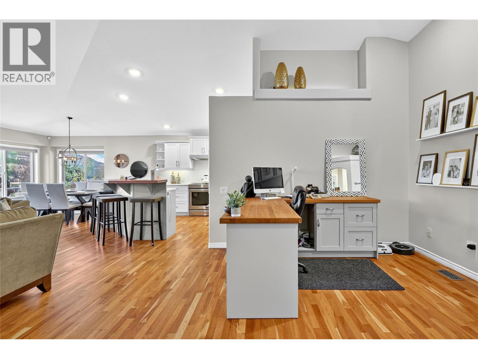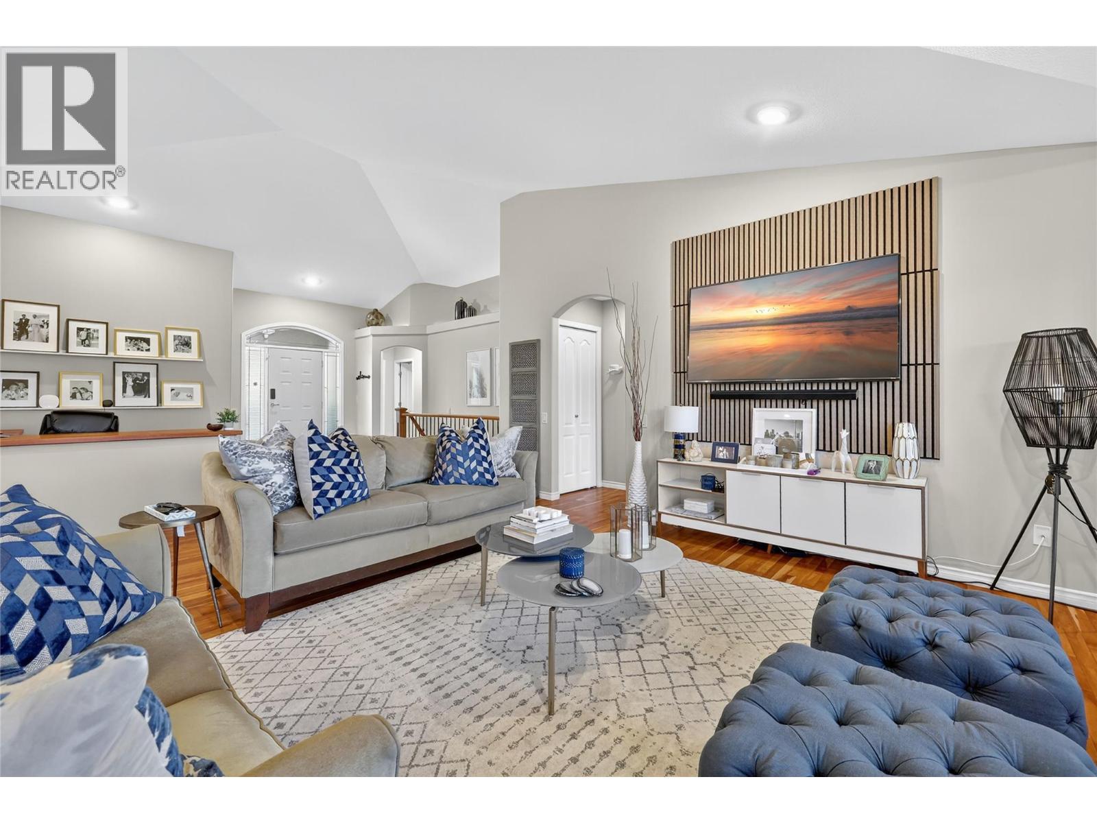 Absolutely stunning 3,200 sqft walk-out rancher on sought-after Dilworth Mountain, offering breathtaking 180° views of mountains, orchards, and Lake Okanagan. This stylish Dilworth Homes built home boasts a bright, flowing open plan with vaulted ceilings, large windows, and top-end finishes. The main level features 3 bedrooms, a 3 sided gas fireplaces, and a spacious kitchen with stainless steel appliances and quartz countertops. The lower level offers 2 additional bedrooms, a wet bar, a gas fireplace, and a huge rec room—perfect for entertaining. Enjoy the outdoors with a large covered patio with sunshade, a covered deck, and a private, zeroscaped backyard with a gas fire-pit. Double garage with oversized driveway and extra parking pad. Natural gas BBQ hookup. Close to Lake Okanagan, downtown Kelowna, beaches, golf, and shopping—this home delivers luxury, comfort, and location in one perfect package. (id:21321)