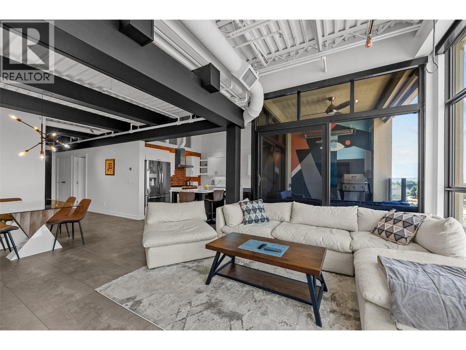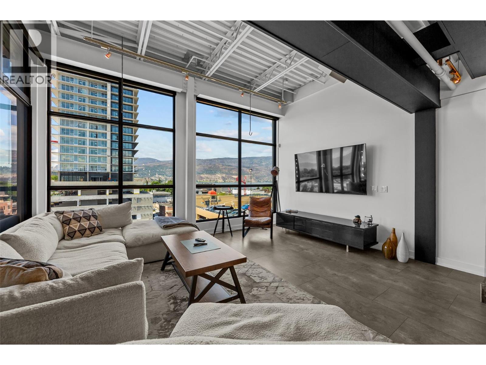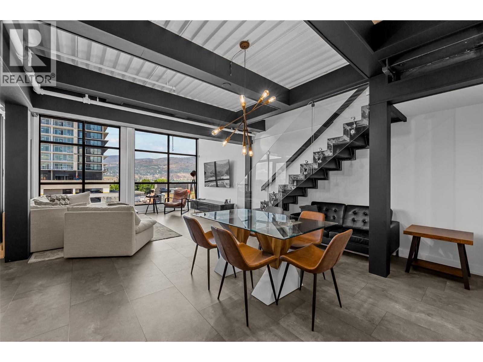 Discover Kelowna's most unique and luxurious condo—a fully renovated, lofted industrial-style masterpiece with unparalleled lake and city views. Perched atop a professional building with just five exclusive residences, this property promises an extraordinary living experience. The main floor boasts an expansive open-concept design featuring soaring high ceilings and dramatic floor-to-ceiling windows that flood the space with natural light. The stunning kitchen, equipped with top-of-the-line appliances opens to a heated, covered patio—perfect for year-round alfresco dining. Ascend to the primary retreat, where you'll be captivated by sweeping lake and city vistas. Every inch of this home has been meticulously updated with new flooring, a modern kitchen, state-of-the-art appliances, fresh paint, and elegant baseboards. This pet- and rental-friendly building offers the convenience of two large indoor parking stall. A property of this caliber must be seen to be truly appreciated. Don’t miss the opportunity to own this exceptional downtown loft and experience its unparalleled luxury and uniqueness firsthand. (id:21321)