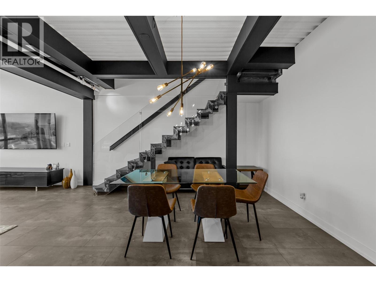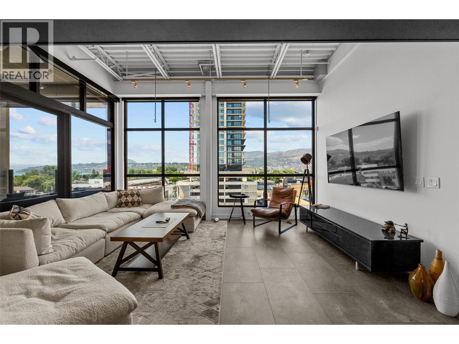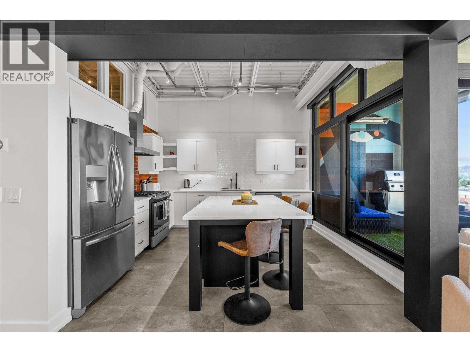Discover Kelowna's most unique and luxurious condo—a fully renovated, lofted industrial-style masterpiece with unparalleled lake and city views. Perched atop a professional building with just five exclusive residences, this property promises an extraordinary living experience. The main floor boasts an expansive open-concept design featuring soaring high ceilings and dramatic floor-to-ceiling windows that flood the space with natural light. The stunning kitchen, equipped with top-of-the-line appliances opens to a heated, covered patio—perfect for year-round alfresco dining. Ascend to the primary retreat, where you'll be captivated by sweeping lake and city vistas. Every inch of this home has been meticulously updated with new flooring, a modern kitchen, state-of-the-art appliances, fresh paint, and elegant baseboards. This pet- and rental-friendly building offers the convenience of two large indoor parking stall. A property of this caliber must be seen to be truly appreciated. Don’t miss the opportunity to own this exceptional downtown loft and experience its unparalleled luxury and uniqueness firsthand. (id:21321)