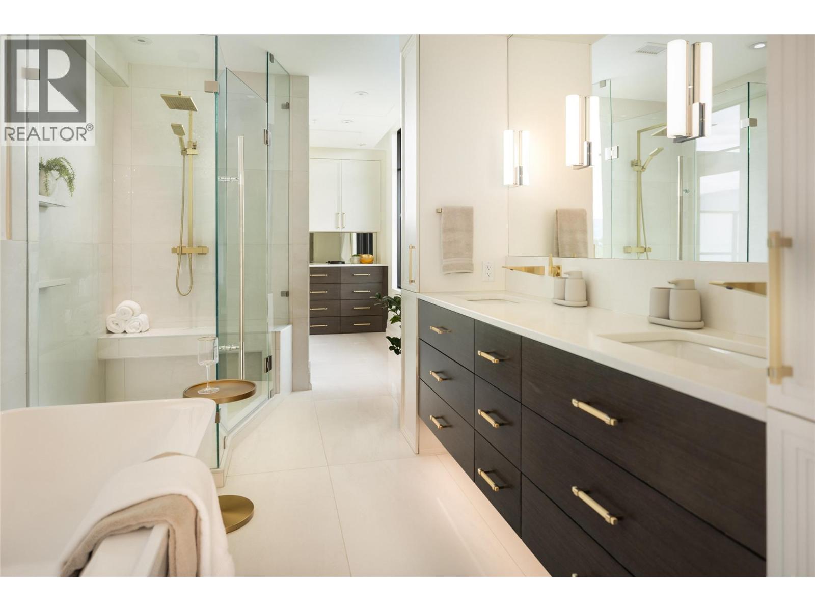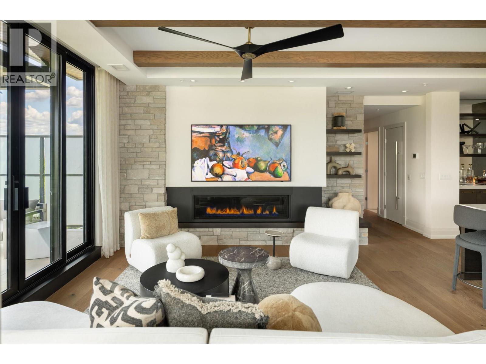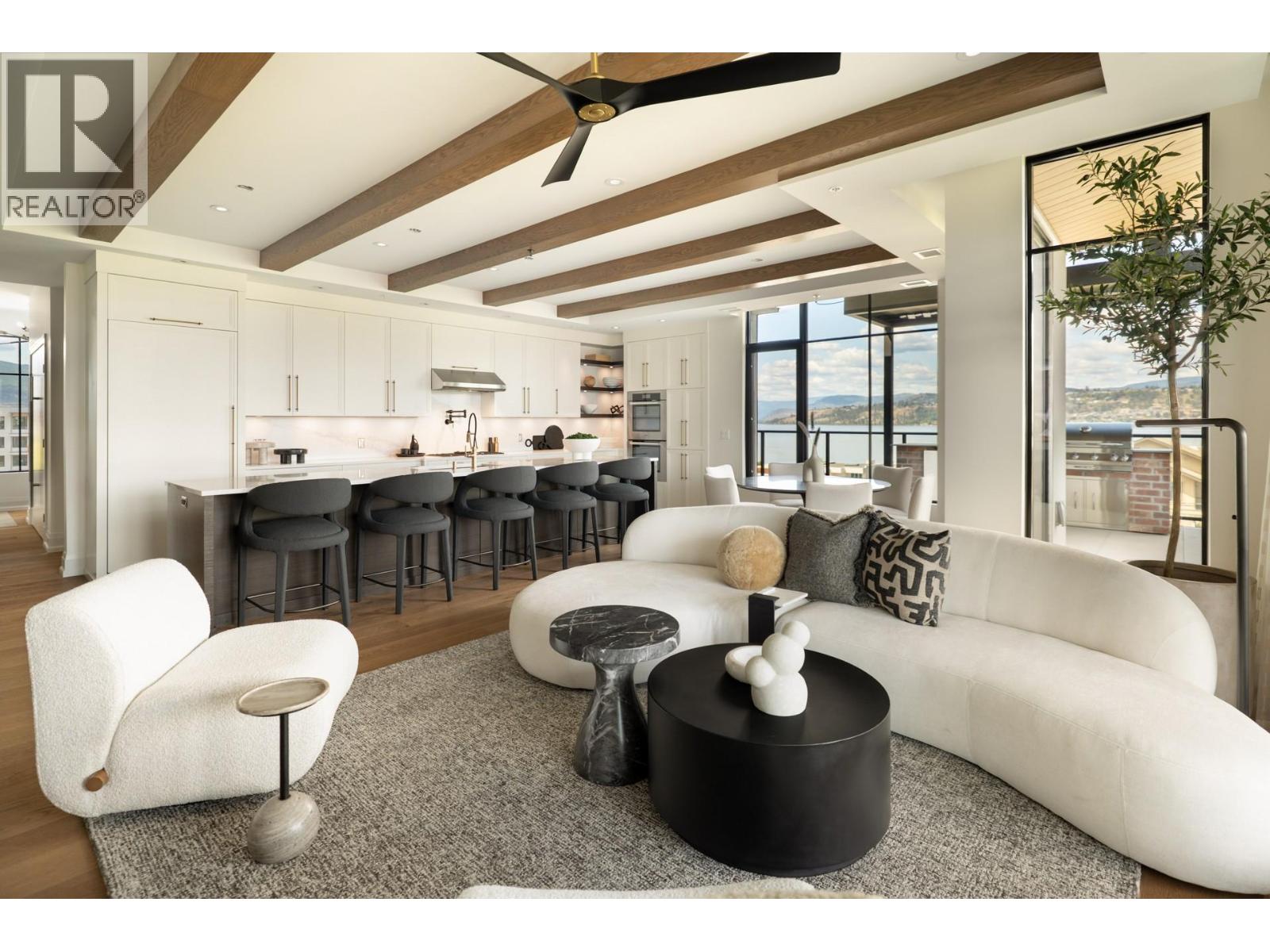 Unit 601 - 450 Parc: Award-Winning Penthouse Living in South Pandosy. Crowning the vibrant Pandosy neighbourhood, this one-of-a-kind penthouse offers over 2,260 sq ft. of interior space & 1,000 plus sq ft. of outdoor living. Designed for those who value elegance & ease, the 3-bedroom, 4-bath residence blends contemporary luxury w/panoramic views of Okanagan Lake, the city, & surrounding mountains. Part of an award-winning development recognized with 4 Gold Awards, including Best Condominium Community in B.C., 450 Parc is celebrated for exceptional design, craftsmanship, & livability. Soaring 10-foot ceilings, wide-plank oak floors, & exposed beams create a upscale ambiance. The chef’s kitchen features a Miele fridge, four Sub-Zero freezer drawers, double Miele wall ovens, quartz counters, & a generous island—perfect for entertaining. A glass-enclosed wine room is ready for customization & a wet bar complete the space. The primary suite is a true retreat with dual walk-in closets, a spa-like ensuite, & access to the terrace, where a saltwater hot tub is coming soon. Two additional bedrooms with private ensuites, a powder room, & full laundry round out the layout. Enjoy outdoor living with a built-in kitchen, Jackson Grills BBQ, fire table, & automated louvred pergolas. Smart tech includes Control4 automation, motorized blinds, designer lighting & EV-ready parking. Private and set in one of Kelowna’s most walkable areas, this penthouse elevates luxury living. (id:21321)