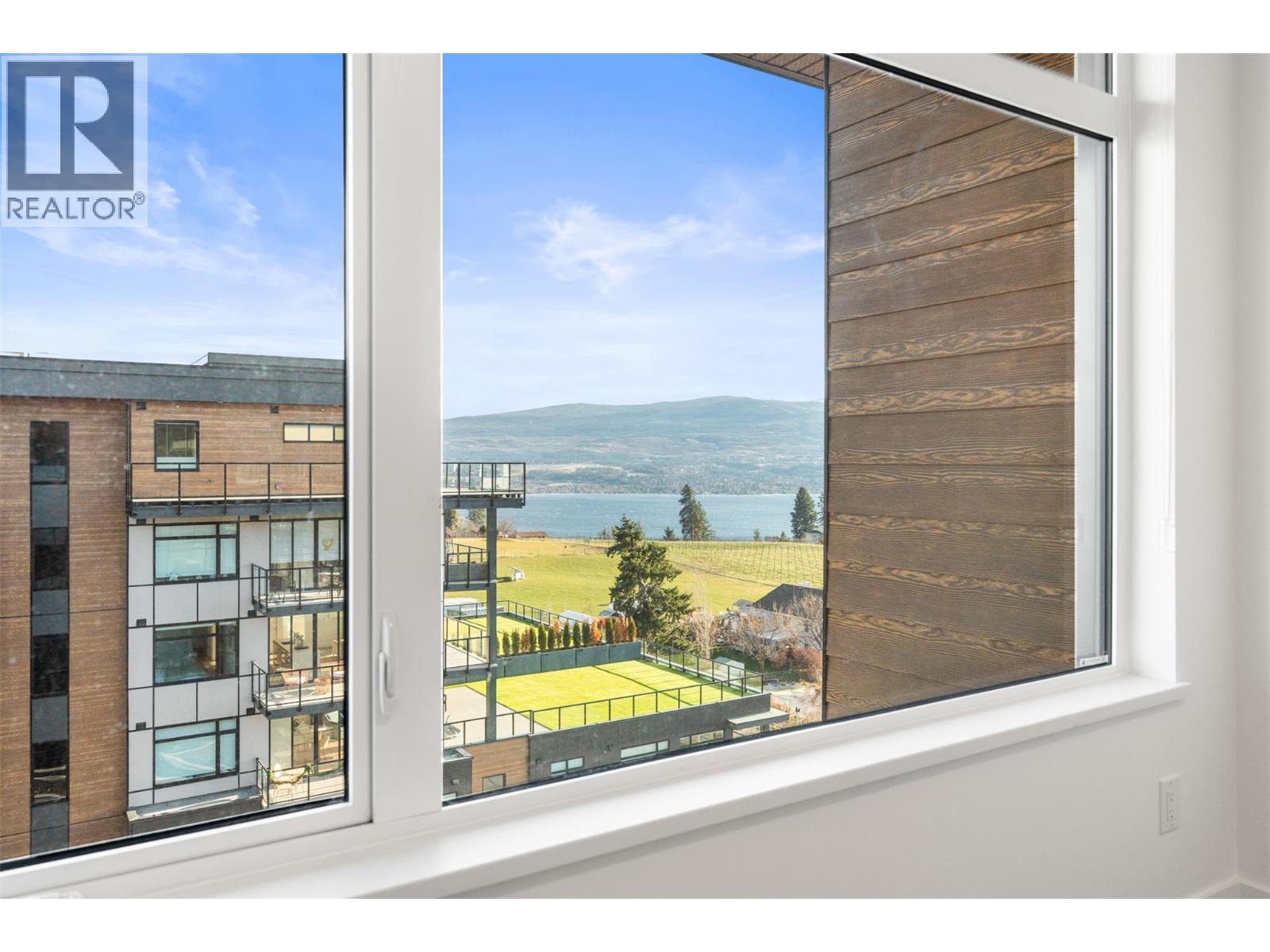 Experience elevated living in this brand-new 2 bedroom + den, 2 bathroom corner residence, where thoughtful architecture meets breathtaking surroundings. Wrapped in an expansive glass deck, the home captures sweeping views across the lake, vineyards, and mountains, while floor-to-ceiling windows bathe the interior in natural light. At the heart of the home is a stunning chef-inspired kitchen, anchored by an oversized quartz island perfect for entertaining. Premium finishes include a gas cooktop, built-in wine fridge & pantry wall, microwave, custom drawer organizers, imported Italian cabinetry, and sleek luxury vinyl plank flooring that flows seamlessly through the space. The smart layout places the bedrooms on opposite sides of the home, offering enhanced privacy for owners and guests alike. Wake up to unforgettable vistas in the primary retreat, featuring a walk-through closet and a serene, spa-style ensuite with heated tile flooring. Designed with comfort and convenience in mind, this home also includes a spacious deck, one secure parking stall + storage locker, and welcomes up to 2 pets. Residents enjoy a resort lifestyle with access to an onsite greenhouse, outdoor pool + hot tub, fitness centre, dog wash, community gardens, secure parcel delivery, and the advanced Butterfly entry system. Ideally located, this home is just steps from a brand-new community centre, schools, bistro, market, & sports courts & only minutes to beaches, boat launches, and celebrated wineries. (id:21321)