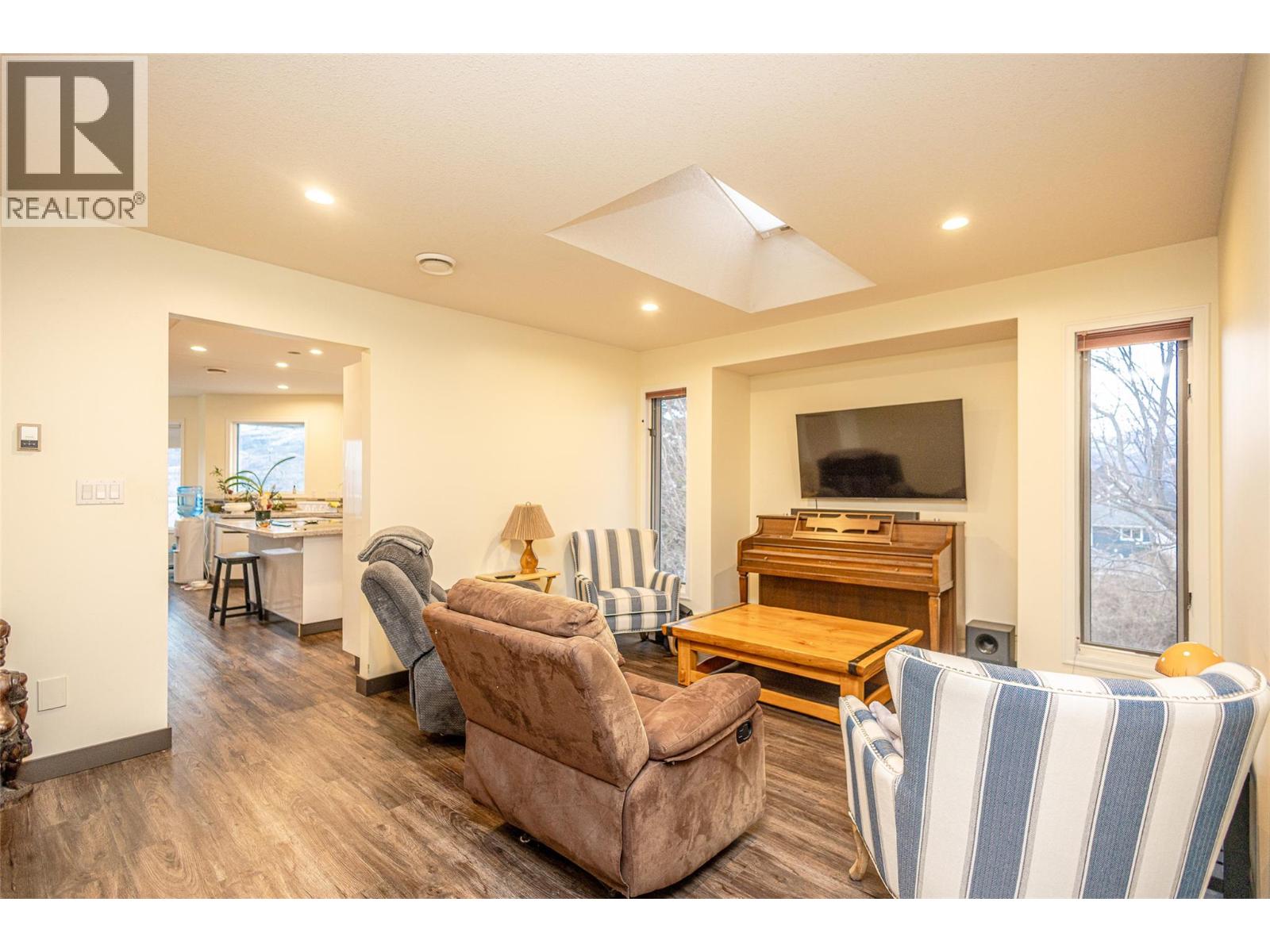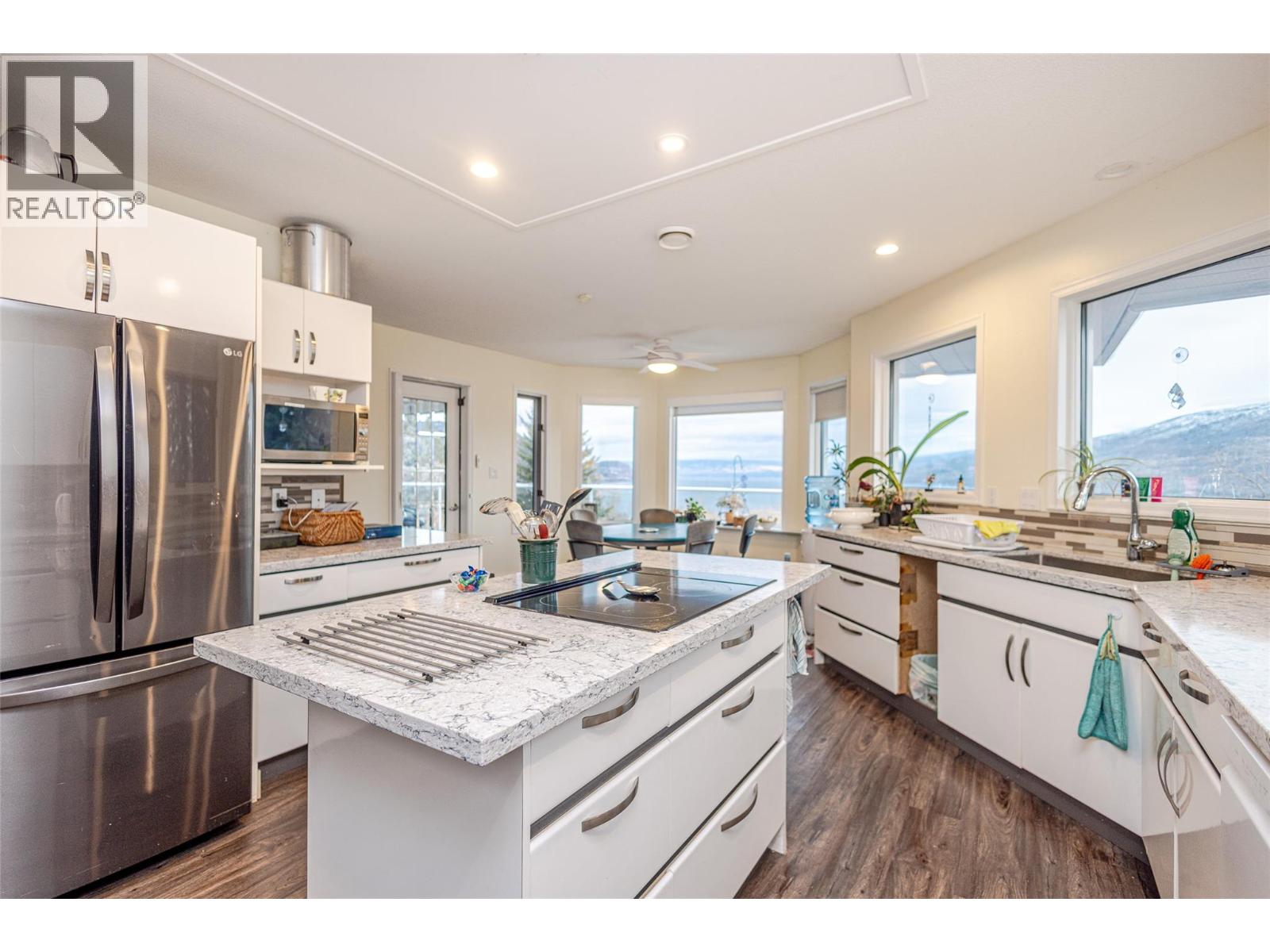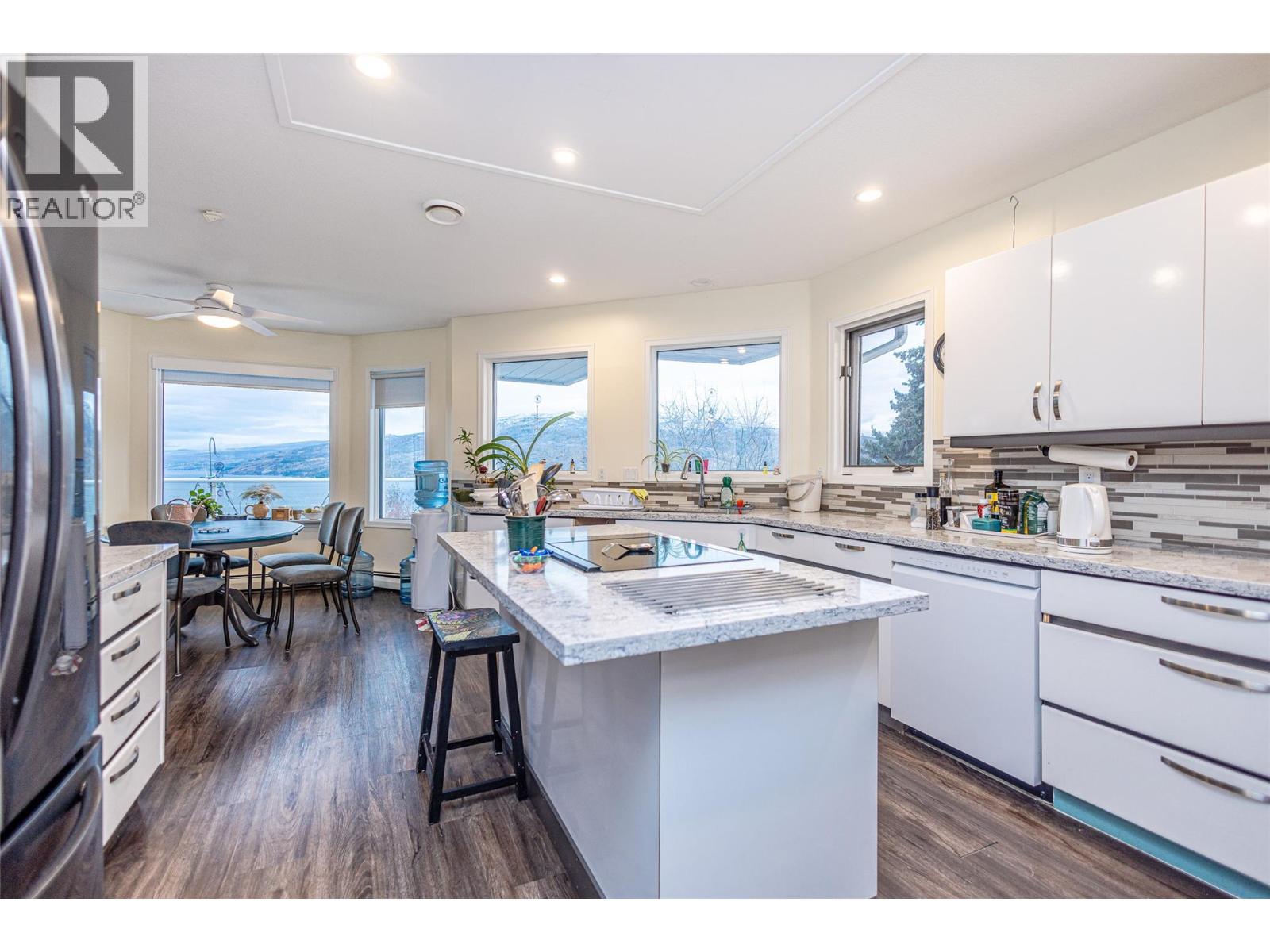 WELCOME TO 6036 BEATRICE PEACHLAND, This well-maintained multi-level home offers a flexible layout, abundant natural light, and breathtaking lake and mountain views. The fully finished first floor provides excellent versatility, featuring a spacious family room with durable flooring and a cozy fireplace—perfect for relaxed living or entertaining. Large windows create a bright, open feel throughout, while a generous bedroom and full bathroom offer privacy for guests or extended family. A dedicated laundry area, ample storage, and a thoughtful layout enhance the functionality of this level. Upstairs, the second floor is designed to showcase the stunning views while offering comfortable, open living spaces. The main living area is filled with natural light and flows seamlessly into the dining space and well-appointed kitchen, complete with ample cabinetry, generous counter space, and a central island ideal for gatherings. Multiple well-sized bedrooms include a primary suite with ensuite and tranquil outlooks. Step outside onto the expansive deck to enjoy panoramic lake and mountain views—perfect for morning coffee, sunset evenings, and entertaining. With its adaptable layout, scenic setting, and inviting atmosphere, this home offers exceptional value and lifestyle appeal. (id:21321)