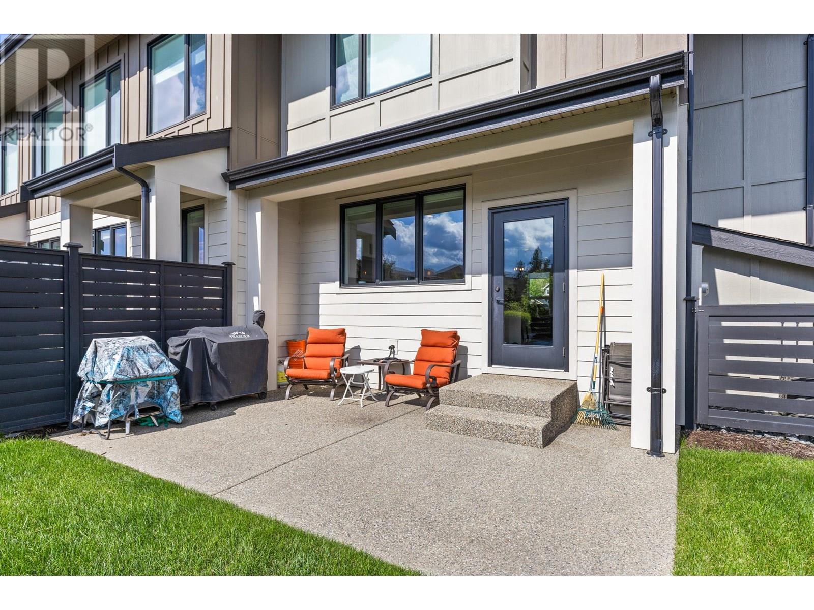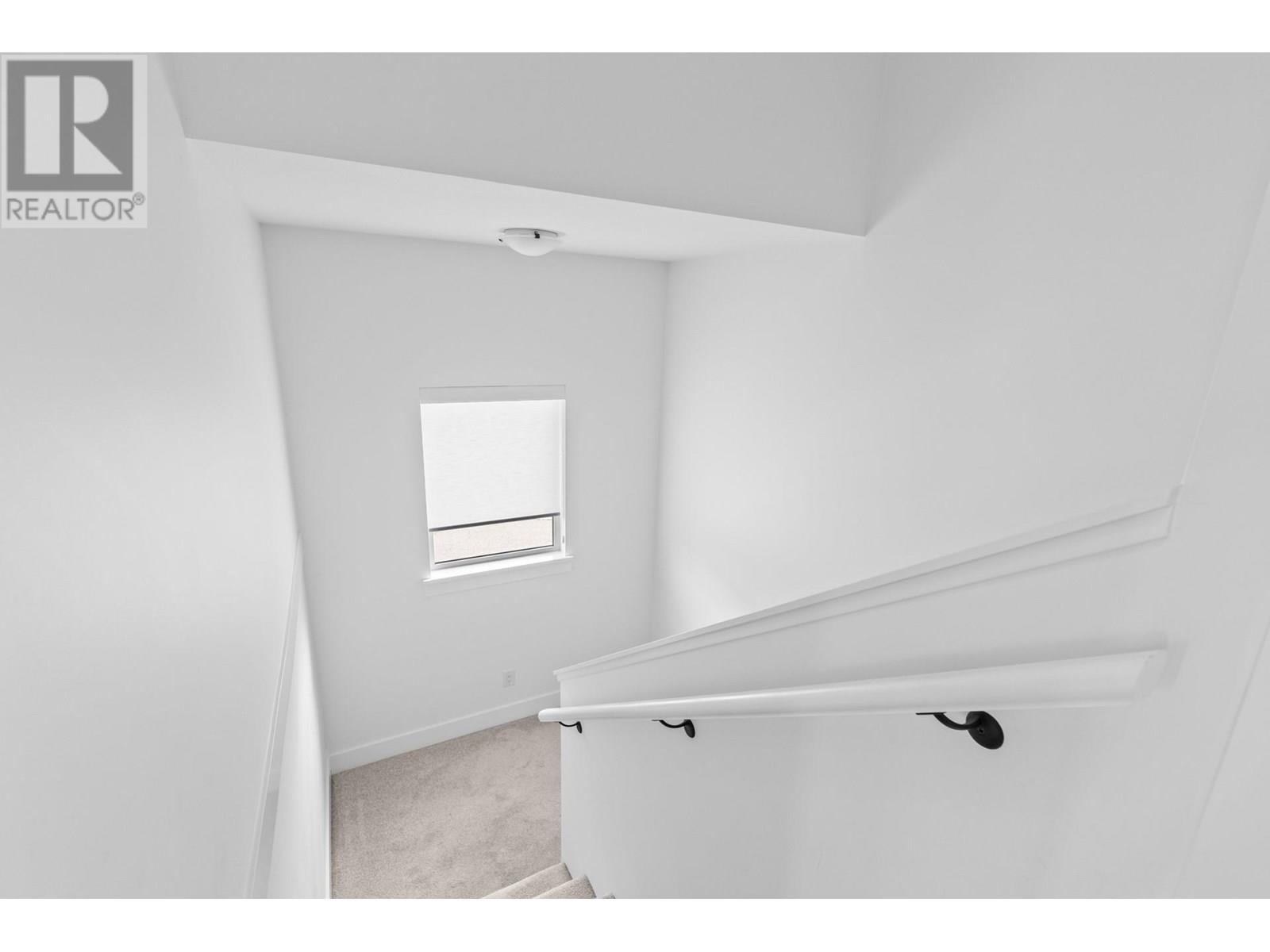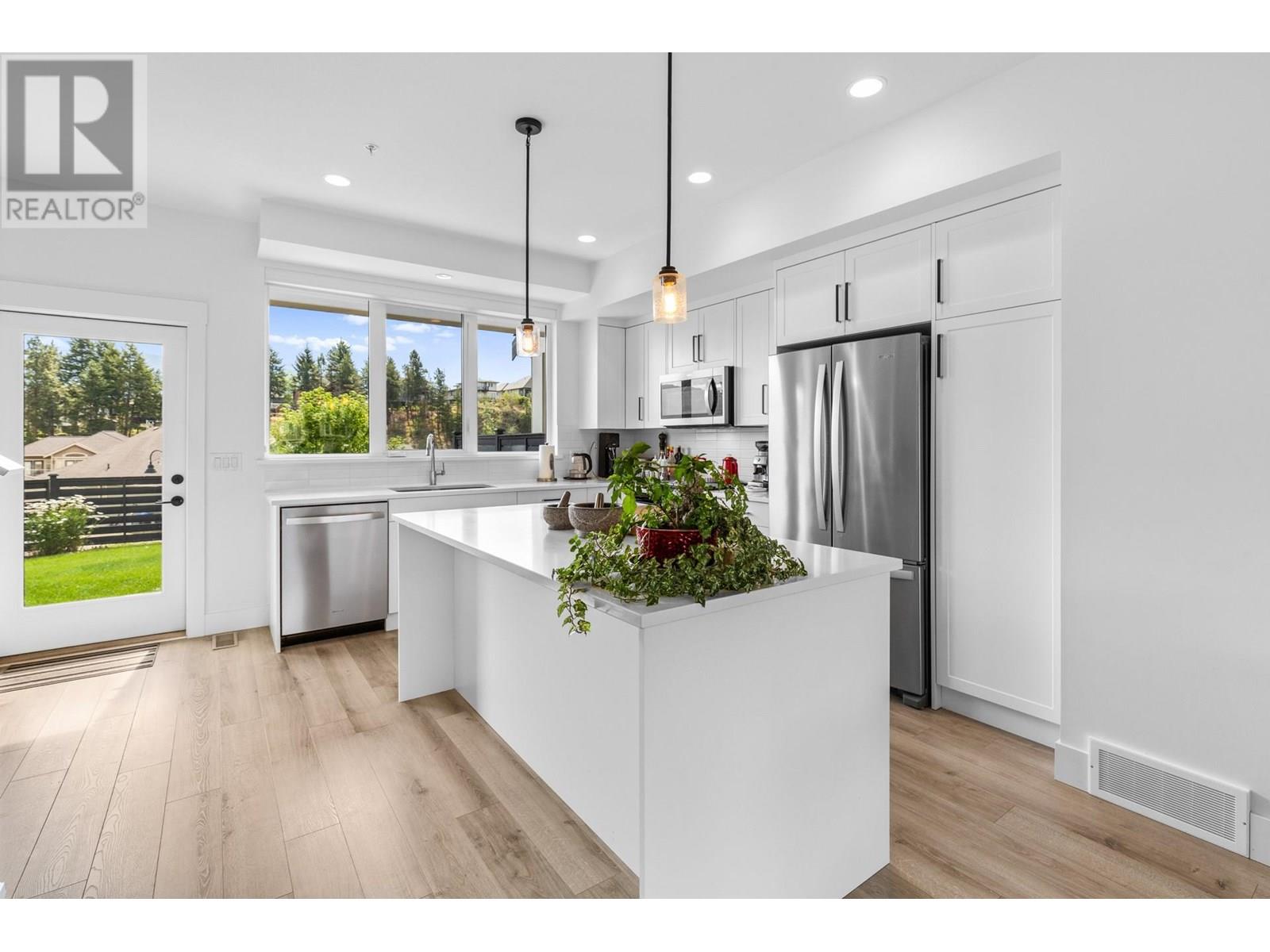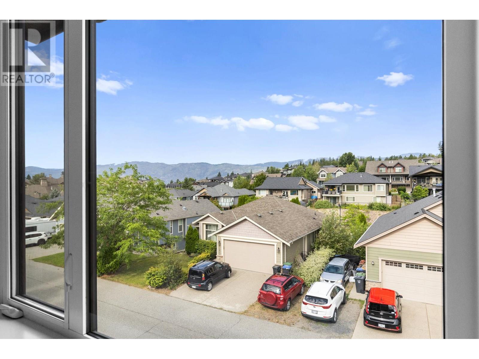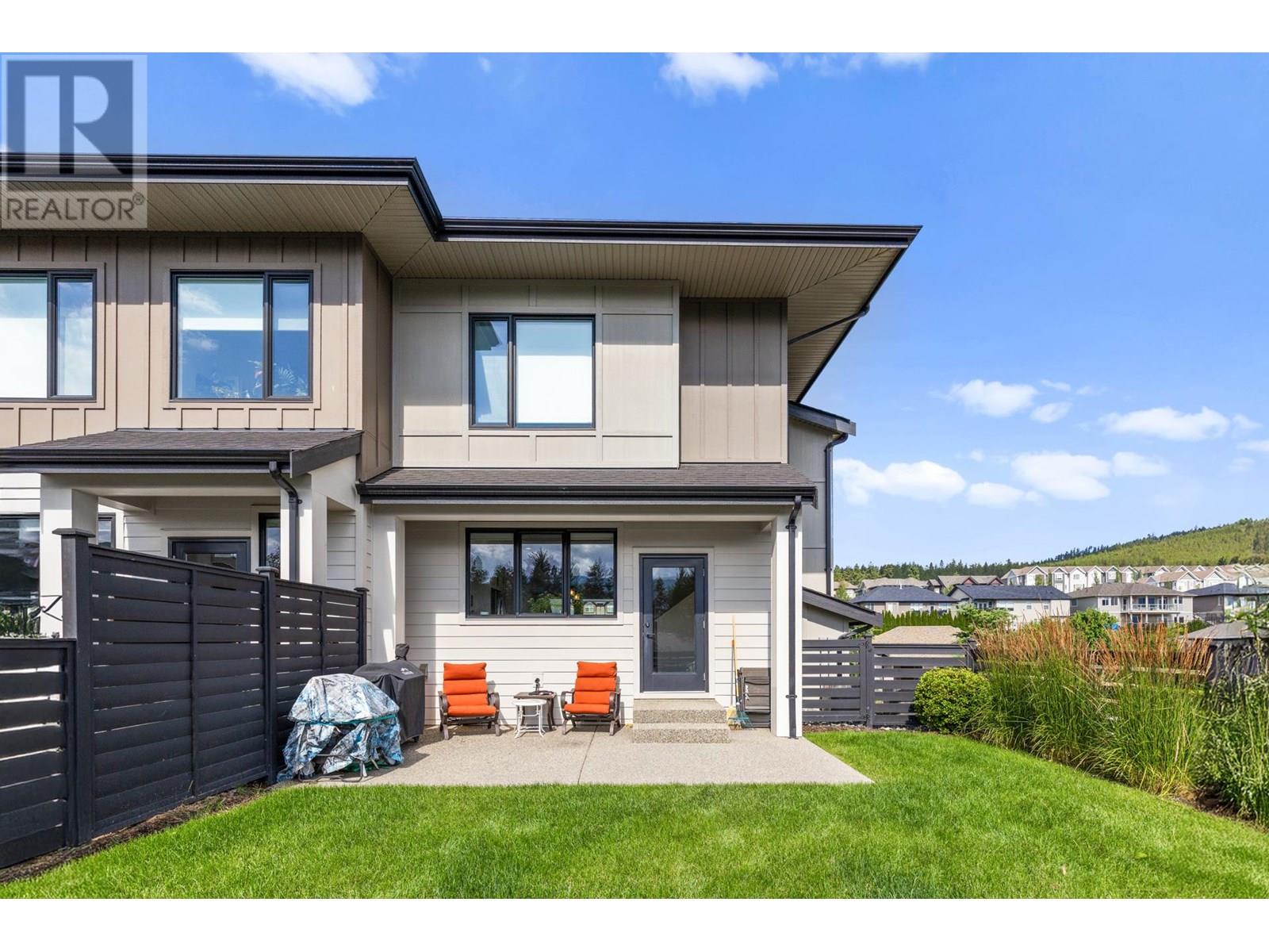 Bright & Modern End Unit in Rockridge at The Lakes. A vibrant and family/pet friendly townhome community in the heart of Lake Country. This stylish 3-bedroom + den/flex, 3-bathroom end unit offers the perfect blend of space, functionality, and comfort. Flooded with natural light, the main floor showcases a modern open-concept design with large windows throughout. The kitchen is a true highlight, featuring quartz countertops, a gas range, sit-up island, and cozy eating nook. The layout flows seamlessly into a spacious dining area and bright living room—perfect for everyday living and entertaining. Step out from the kitchen to your private, elevated backyard oasis with panoramic Eastern Mountain views. With no units directly behind, you’ll enjoy added privacy along with a gas hookup, power, and water connection. Upstairs you’ll find three well-appointed bedrooms, including a generous primary suite with a 4-piece ensuite. The laundry is conveniently located on this level as well. The lower level adds valuable flexibility with a den/flex room – perfect for a home office, gym, or guest space. Additional features include a double car garage, a full-length 26 ft driveway that easily accommodates most vehicles, and close proximity to visitor parking—making hosting friends and family a breeze. This home truly has it all—modern comfort, unbeatable functionality, and a fantastic location. (id:21321)